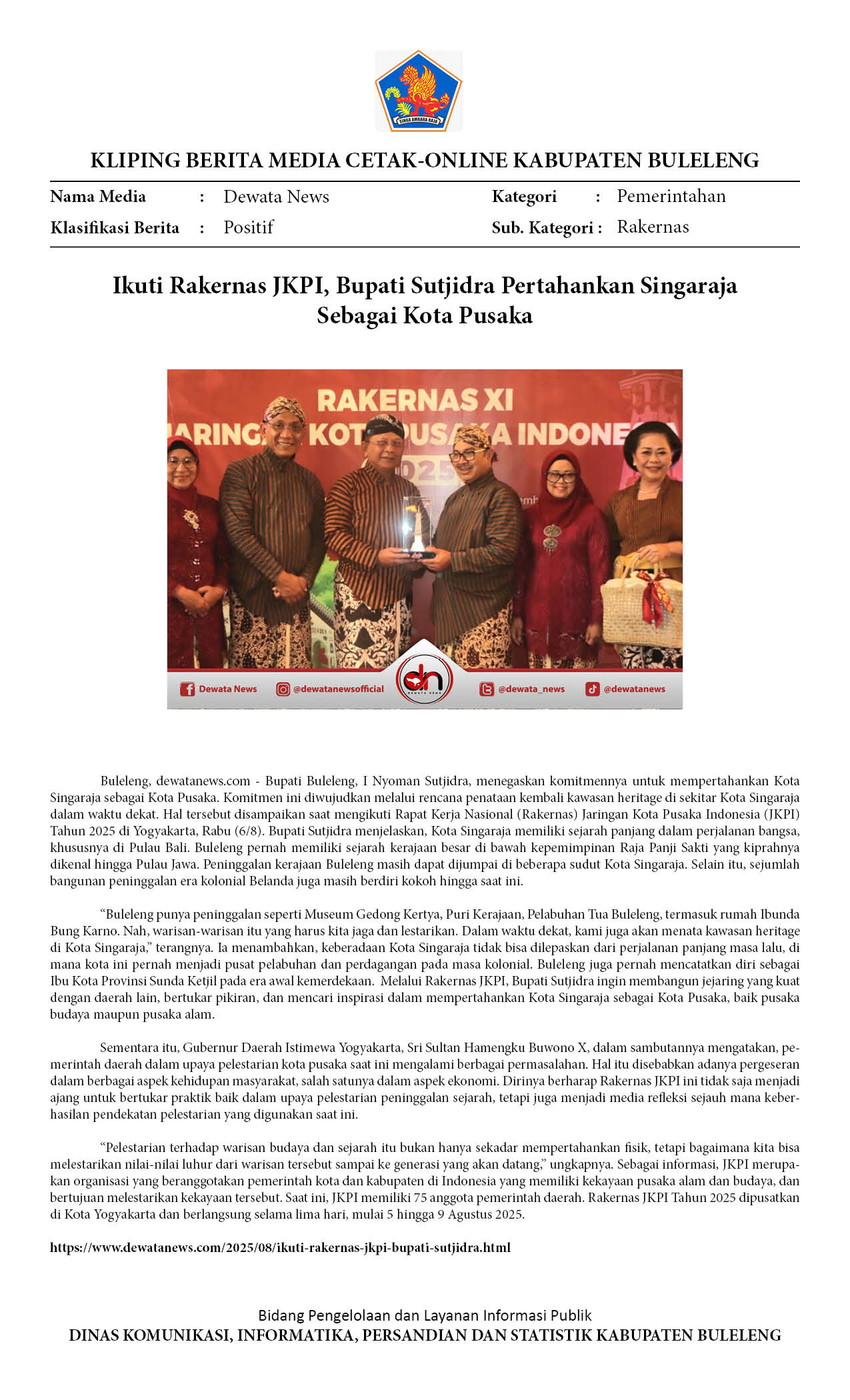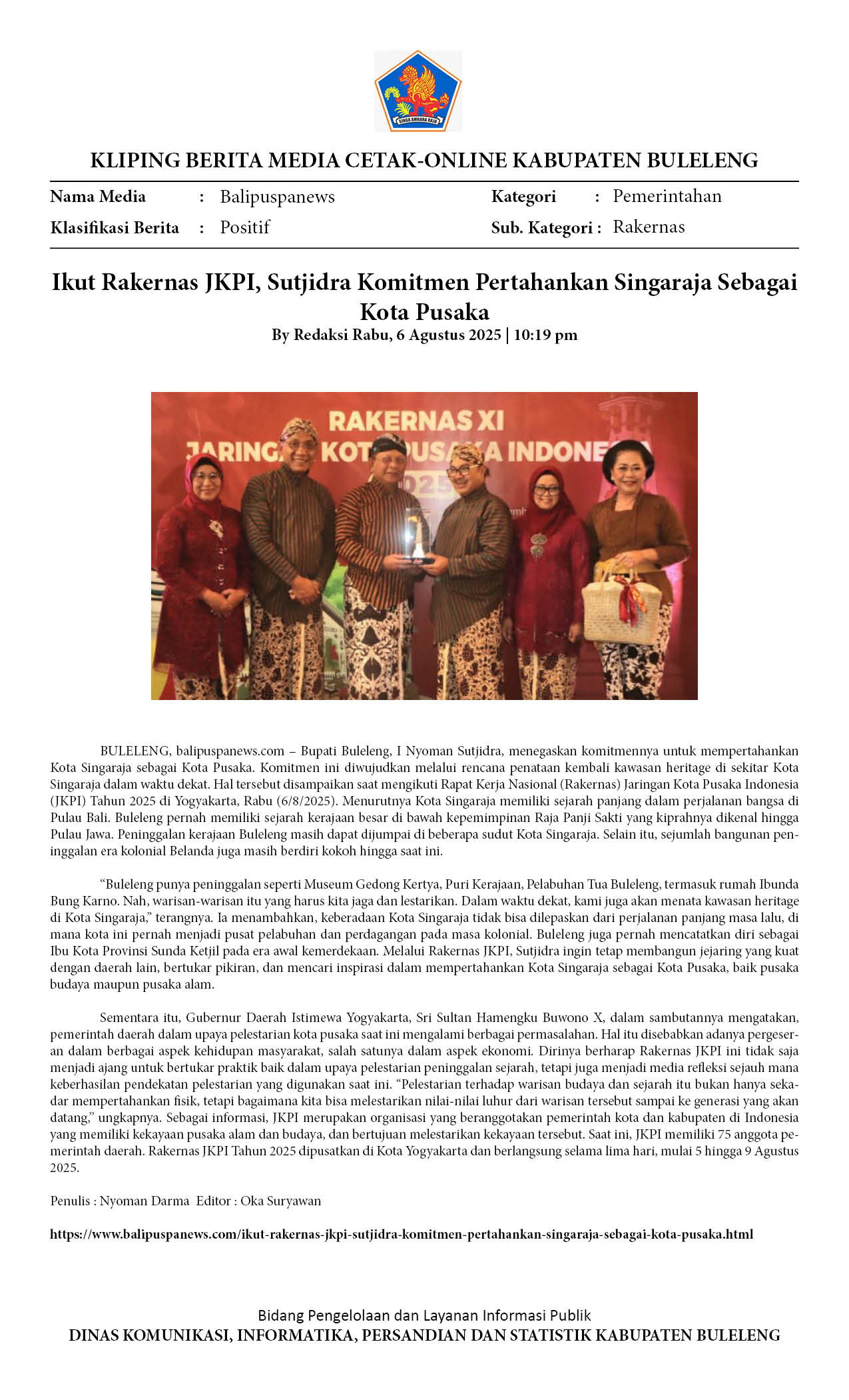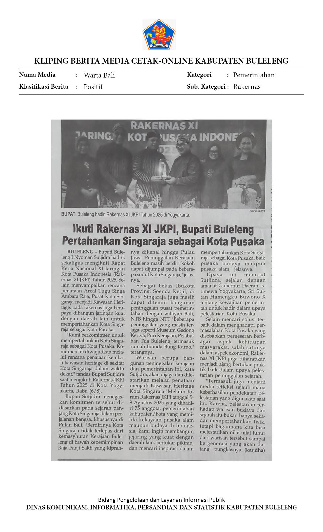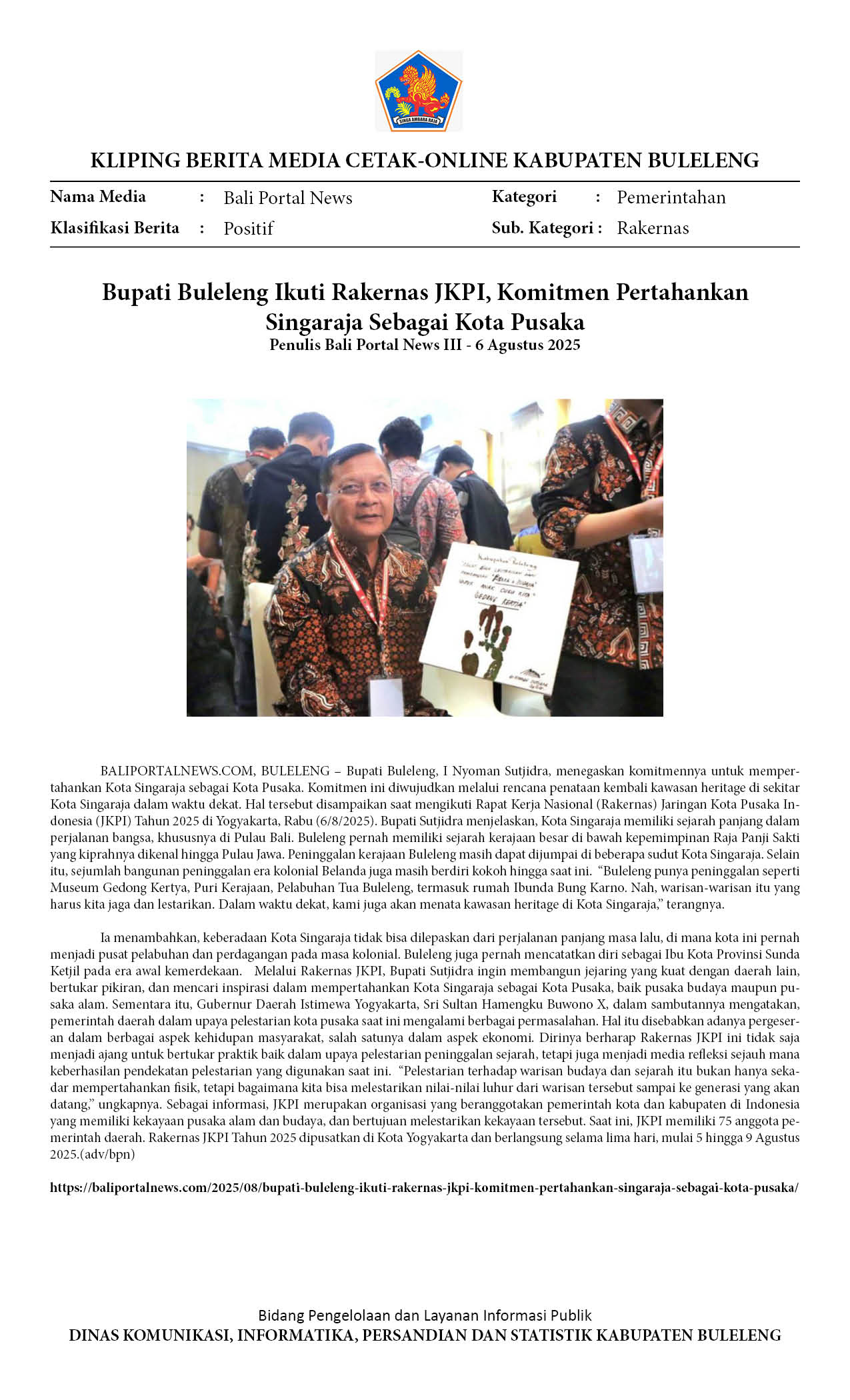 BUPATI BULELENG IKUTI RAKERNAS JKPI, KOMITMEN PERTAHANKAN SINGARAJA SEBAGAI KOTA PUSAKA