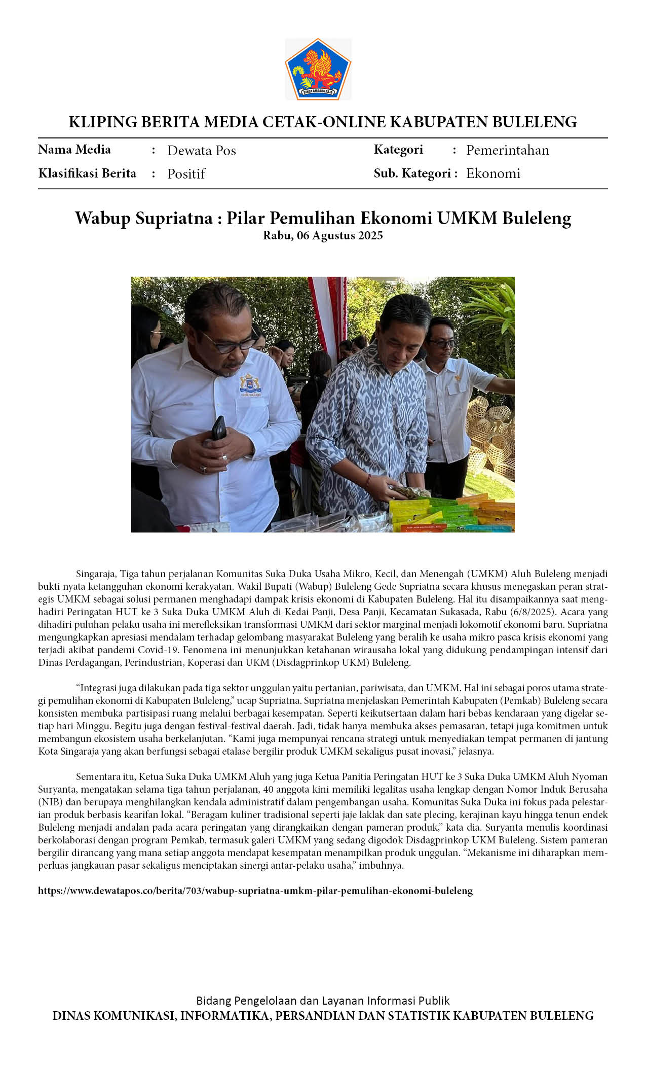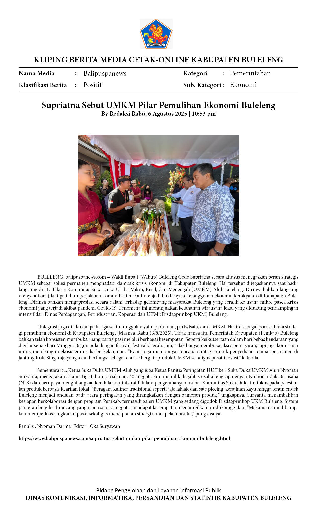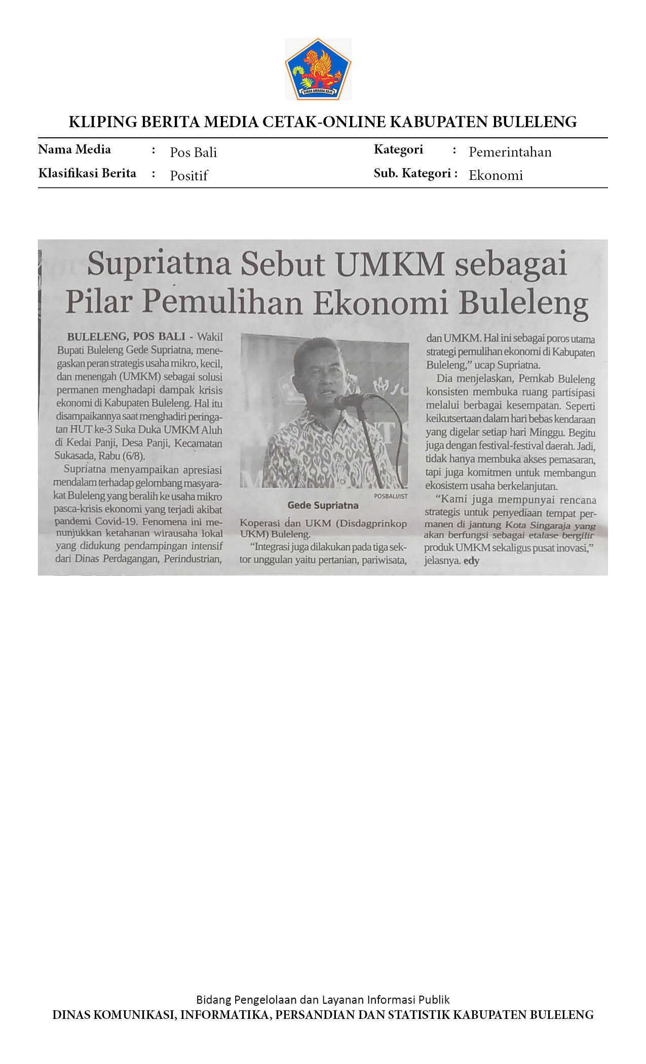 WABUP SUPRIATNA: UMKM PILAR PEMULIHAN EKONOMI BULELENG