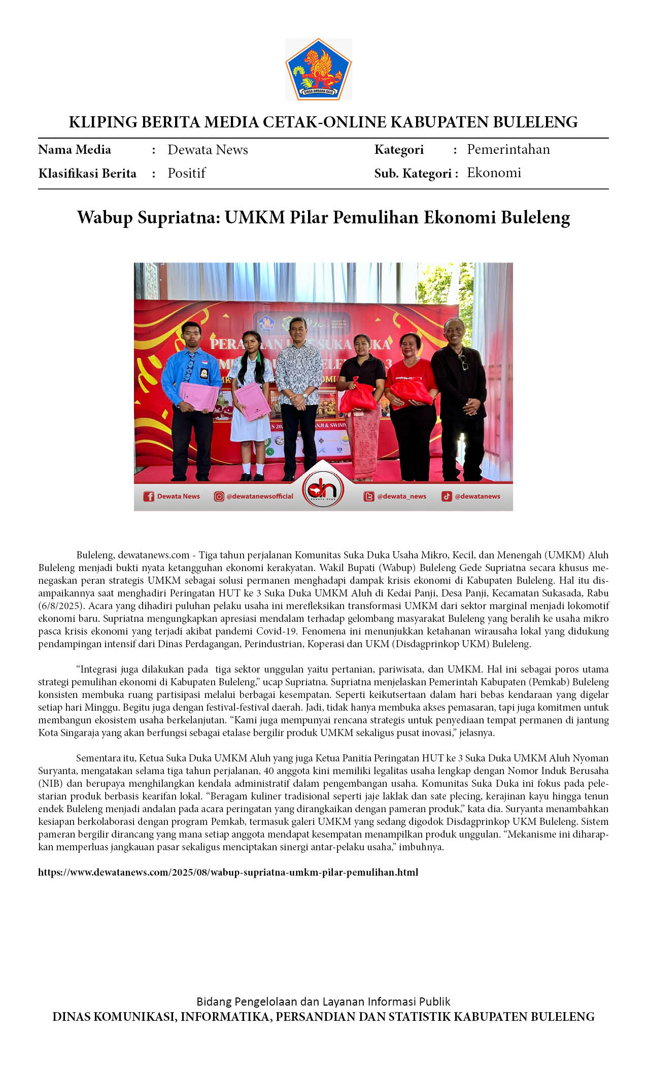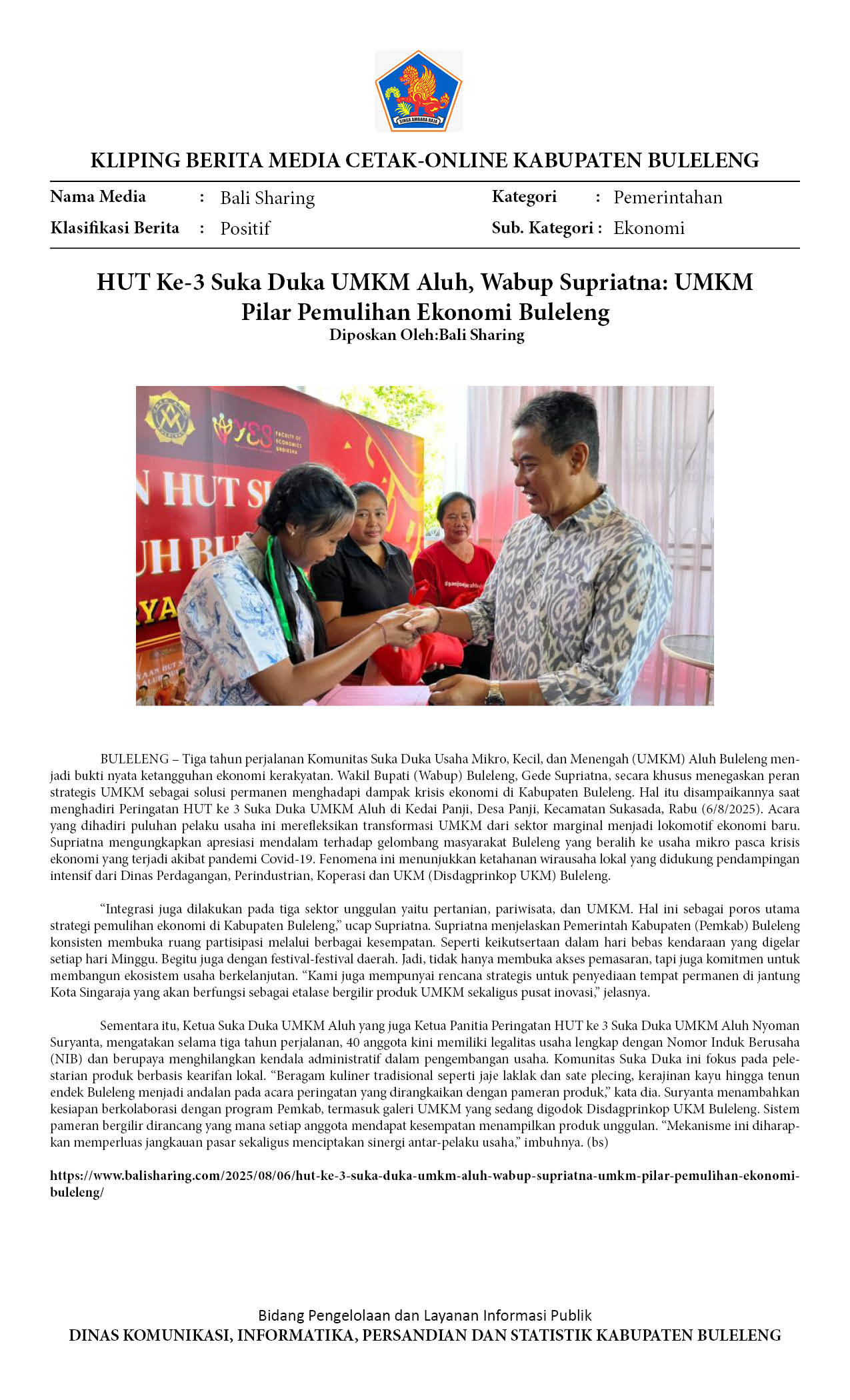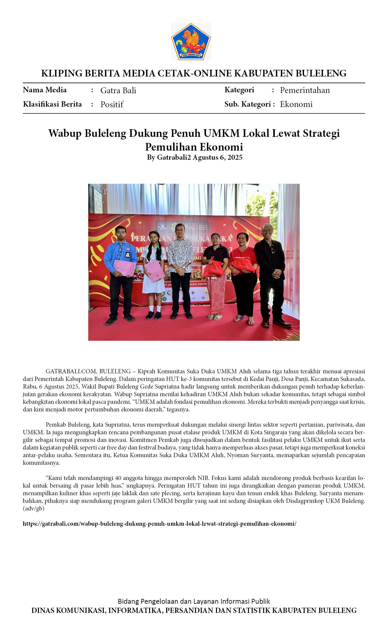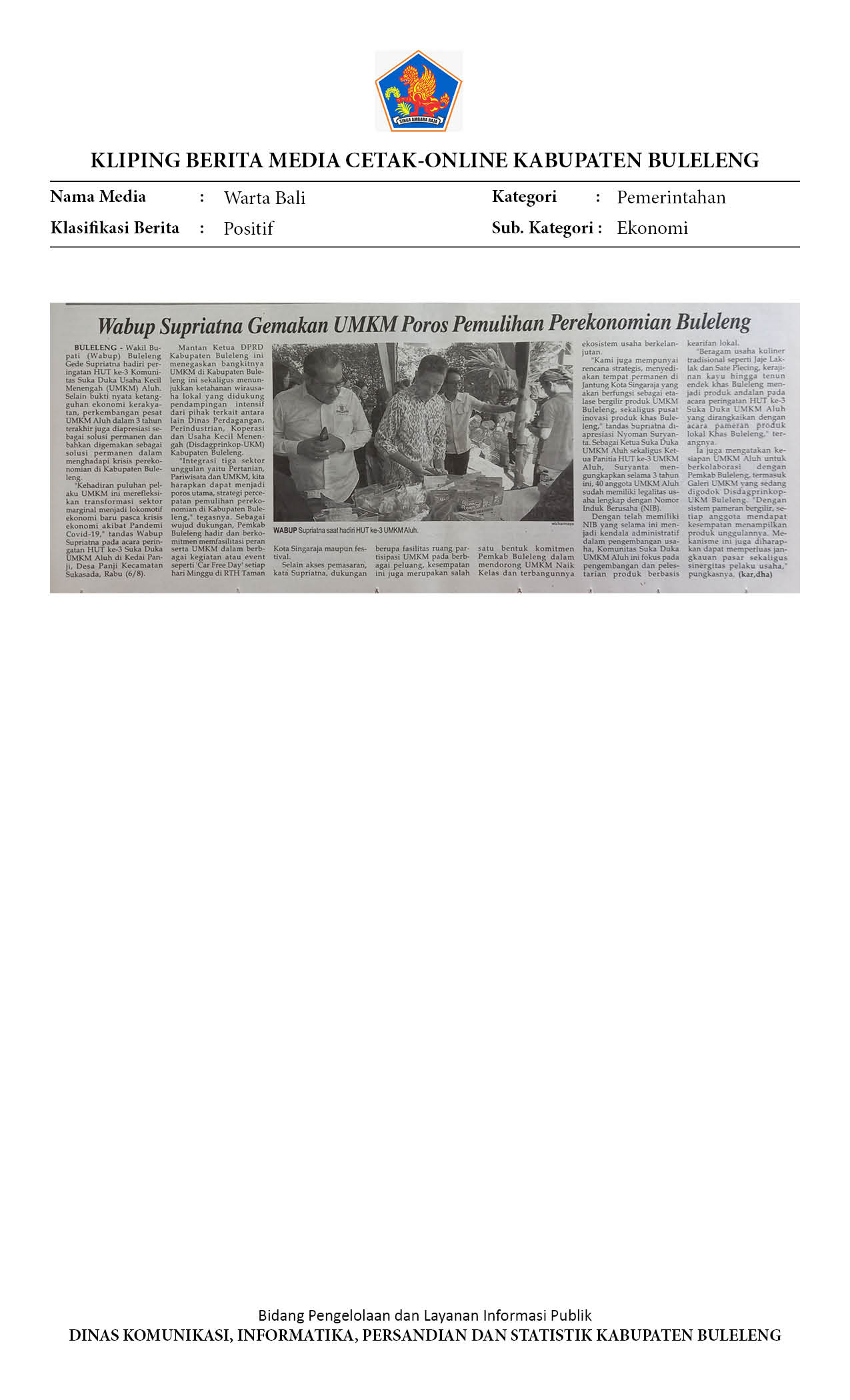 WABUP SUPRIATNA: UMKM PILAR PEMULIHAN EKONOMI BULELENG