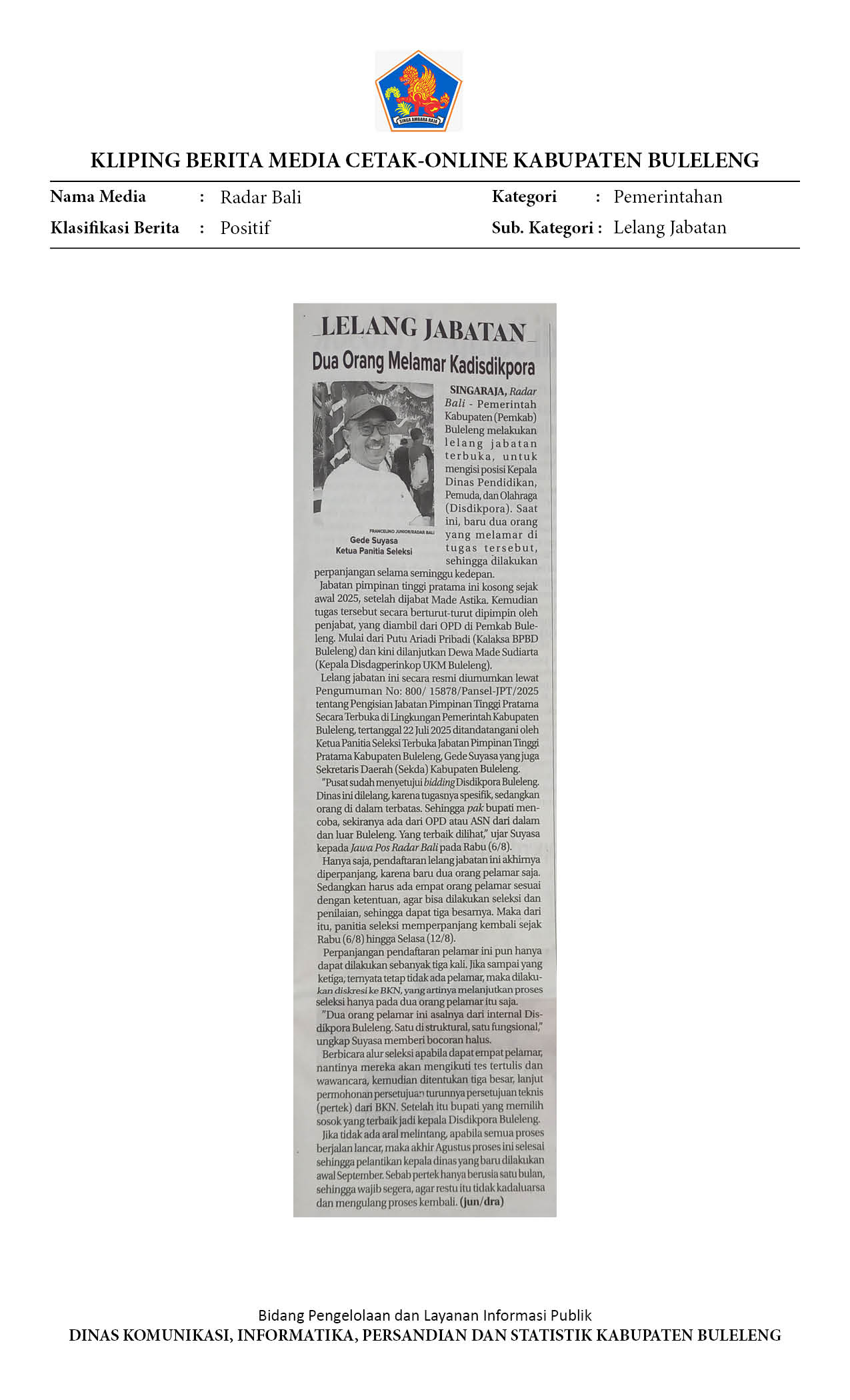 SELEKSI TERBUKA KADISDIKPORA BULELENG