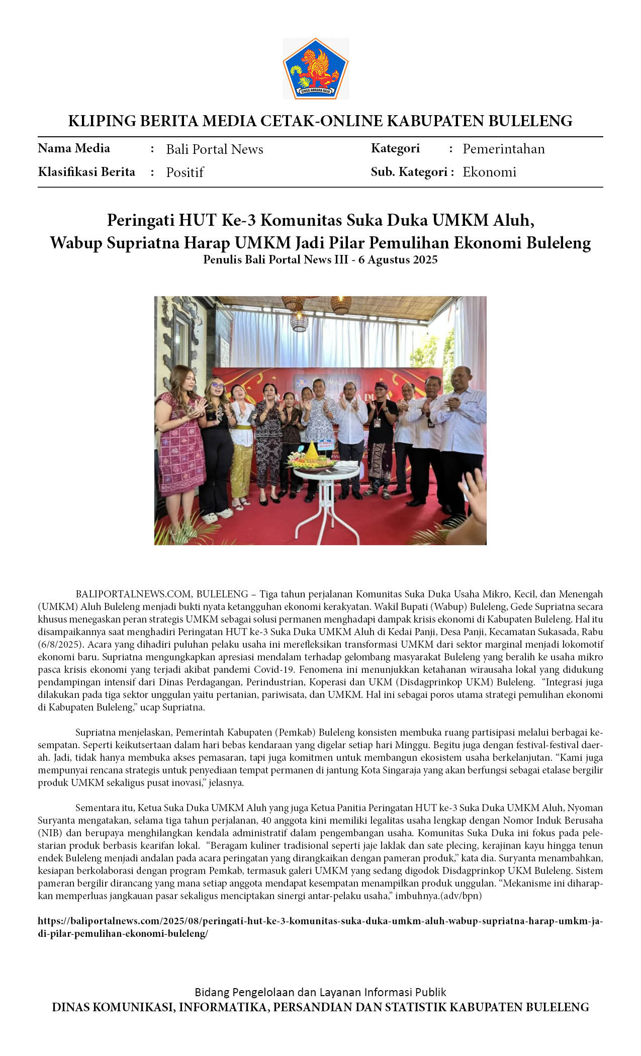 PERINGATI HUT KE-3 KOMUNITAS SUKA DUKA UMKM ALUH, WABUP SUPRIATNA HARAP UMKM JADI PILAR PEMULIHAN EKONOMI BULELENG