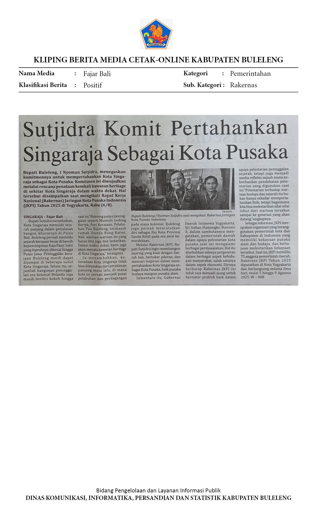 SUTJIDRA KOMIT PERTAHANKAN SINGARAJA SEBAGAI KOTA PUSAKA