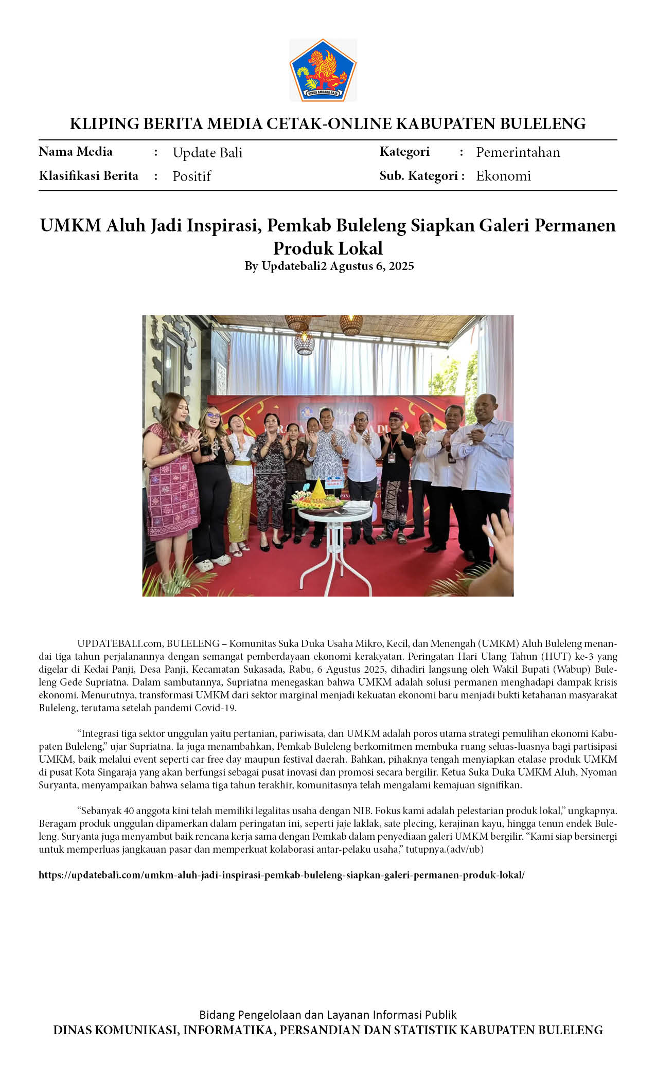 UMKM ALUH JADI INSPIRASI, PEMKAB BULELENG SIAPKAN GALERI PERMANEN PRODUK LOKAL