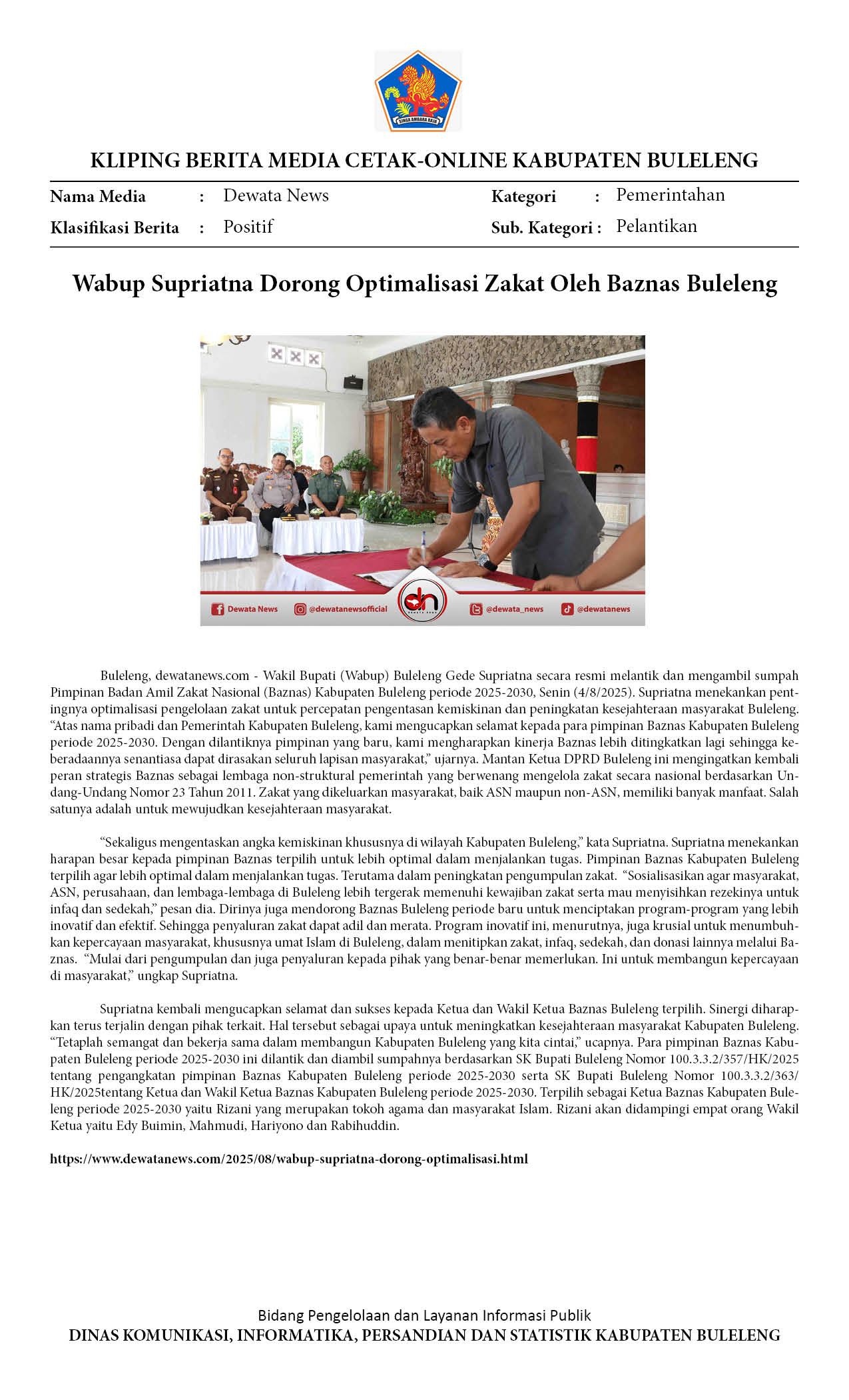 Kliping Kategori Pemerintahan Edisi 07 Agustus 2025