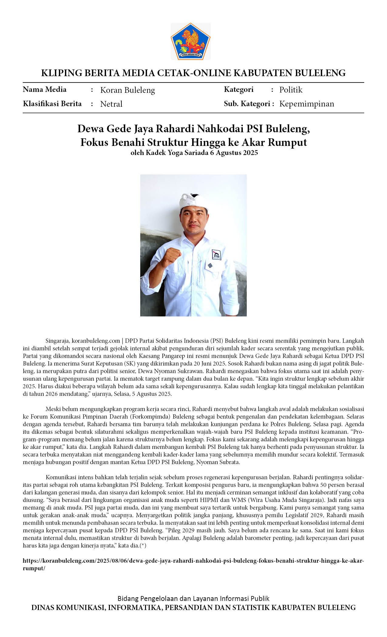 DEWA GEDE JAYA RAHARDI NAHKODAI PSI BULELENG, FOKUS BENAHI STRUKTUR HINGGA KE AKAR RUMPUT
