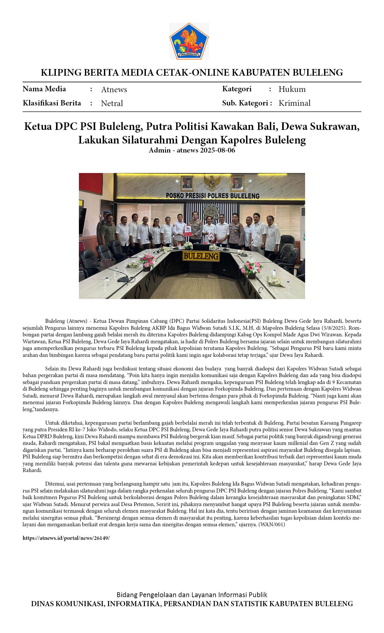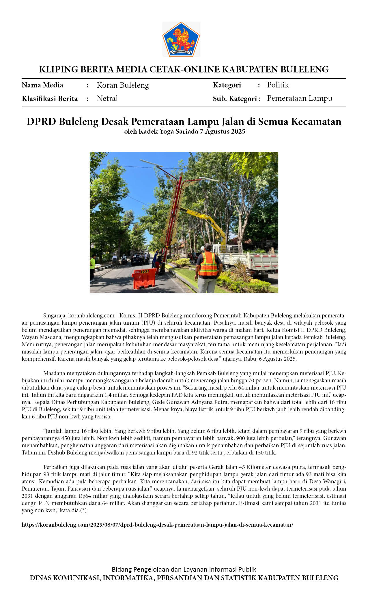 Kliping Kategori Politik Edisi 07 Agustus 2025