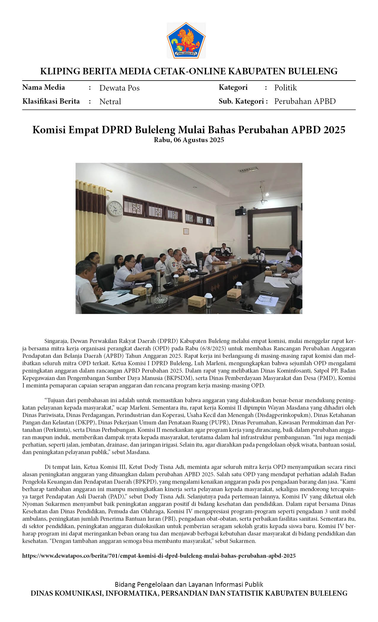 KOMISI EMPAT DPRD BULELENG MULAI BAHAS PERUBAHAN APBD 2025