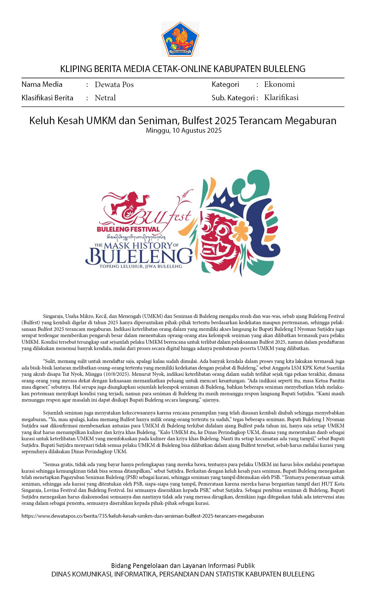 KELUH KESAH UMKM DAN SENIMAN, BULFEST 2025 TERANCAM MEGABURAN