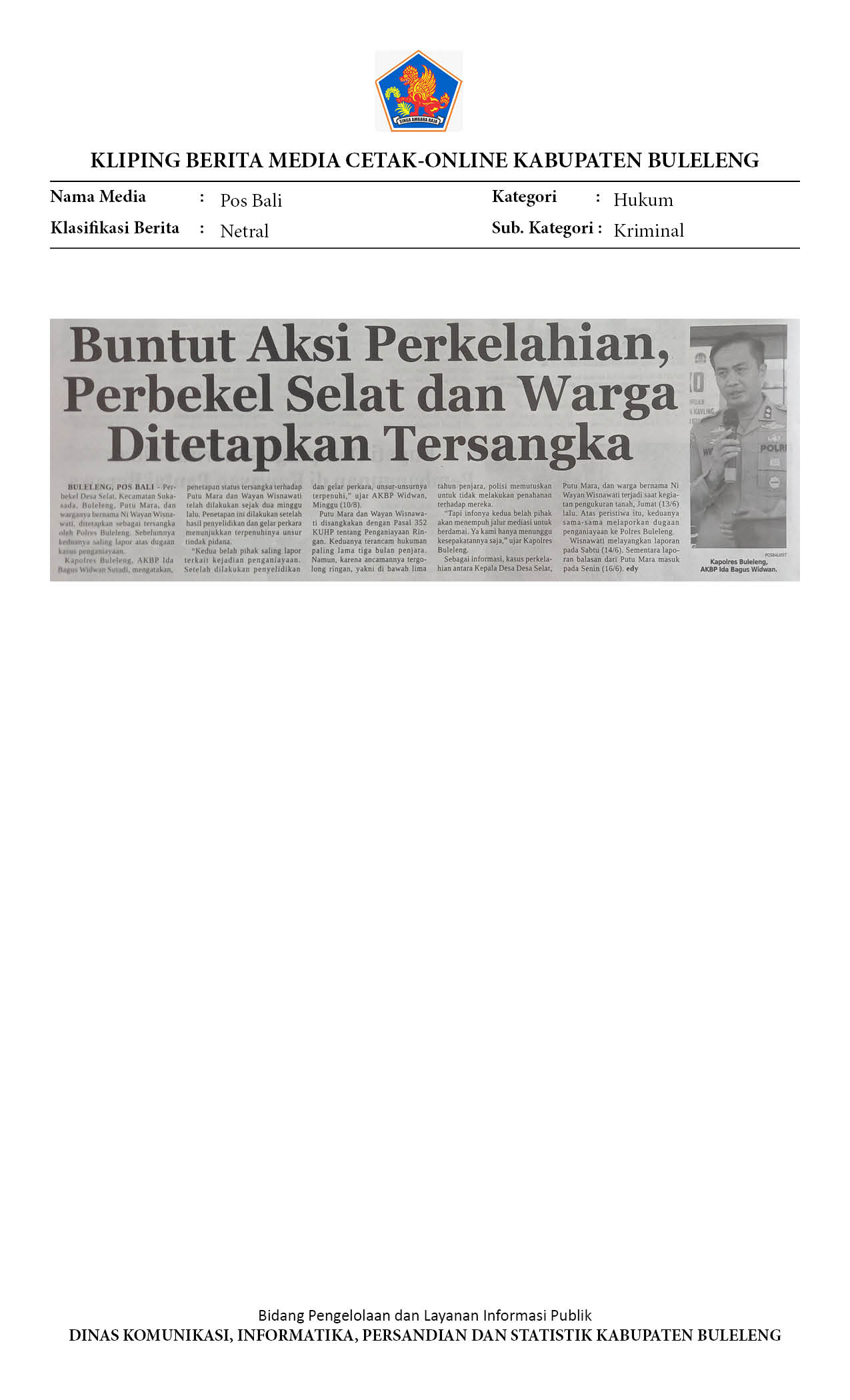 BUNTUT AKSI PERKELAHIAN, PERBEKEL SELAT DAN WARGA DITETAPKAN TERSANGKA