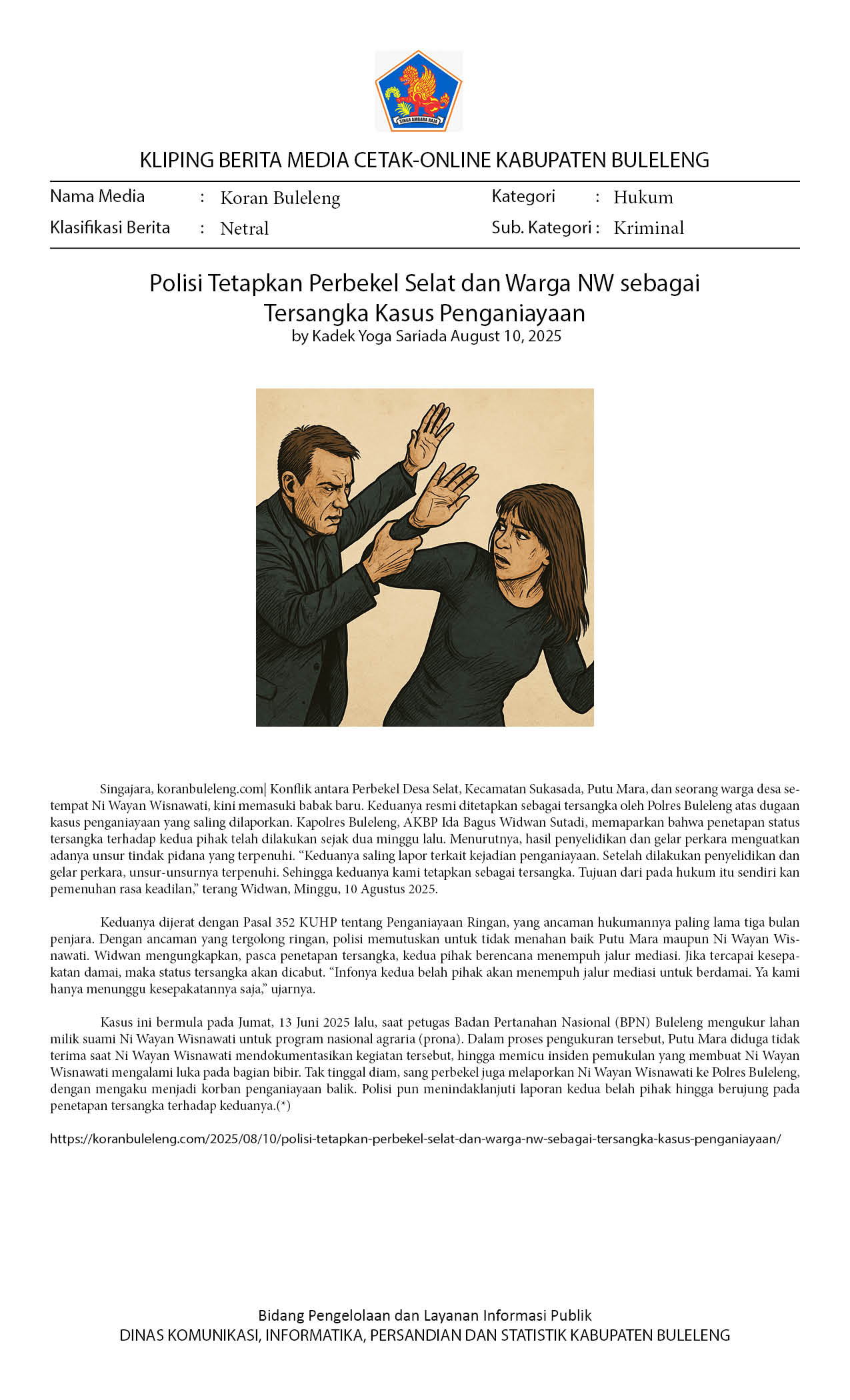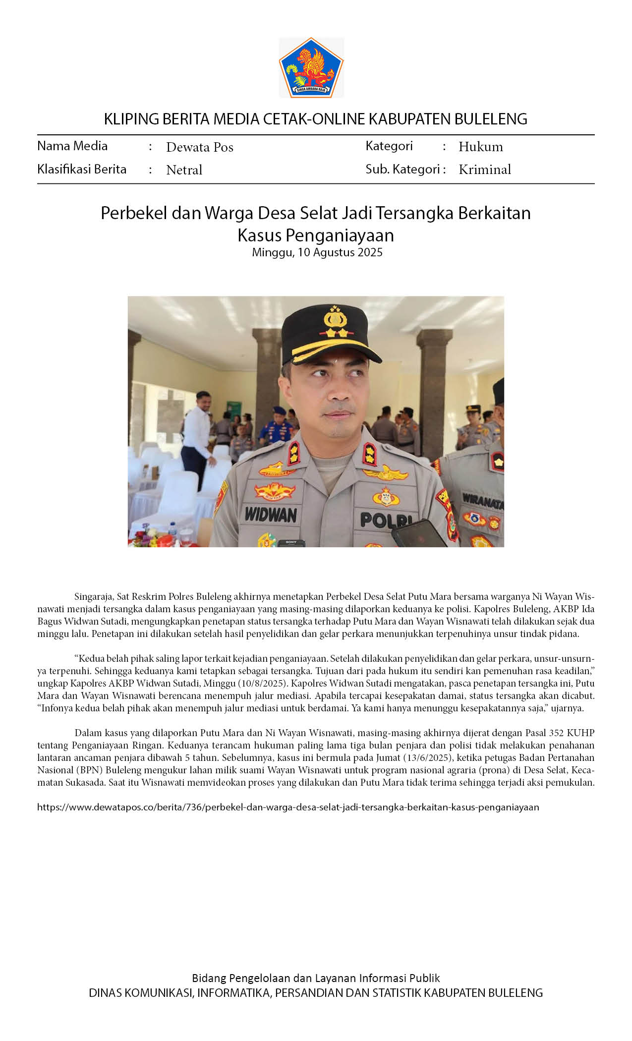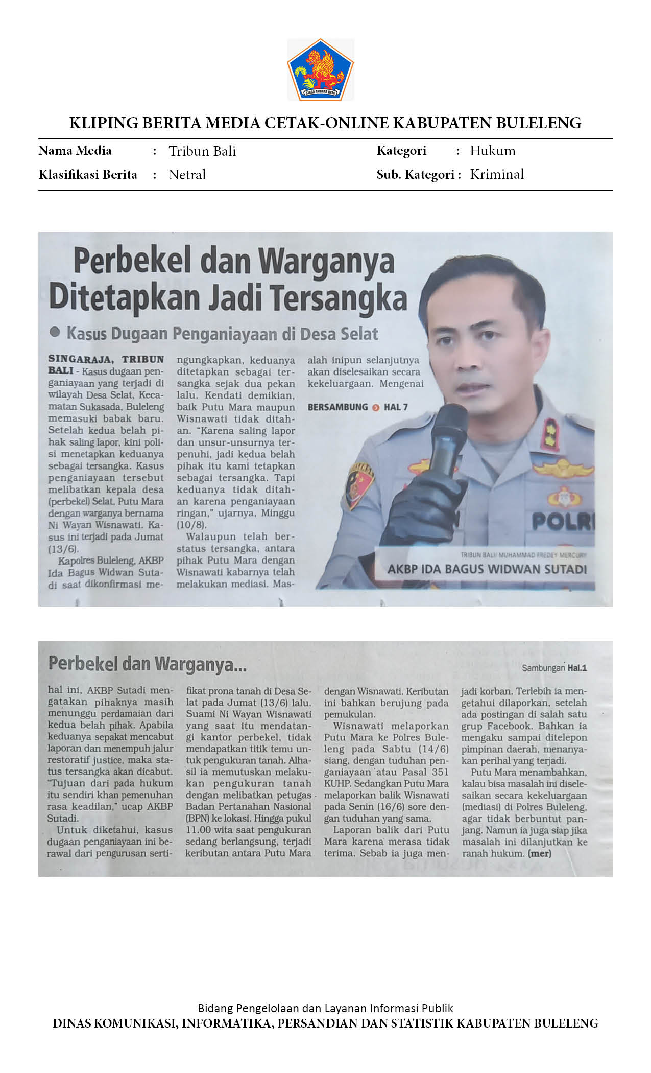 POLISI TETAPKAN PERBEKEL SELAT DAN WARGA NW SEBAGAI TERSANGKA KASUS PENGANIAYAAN