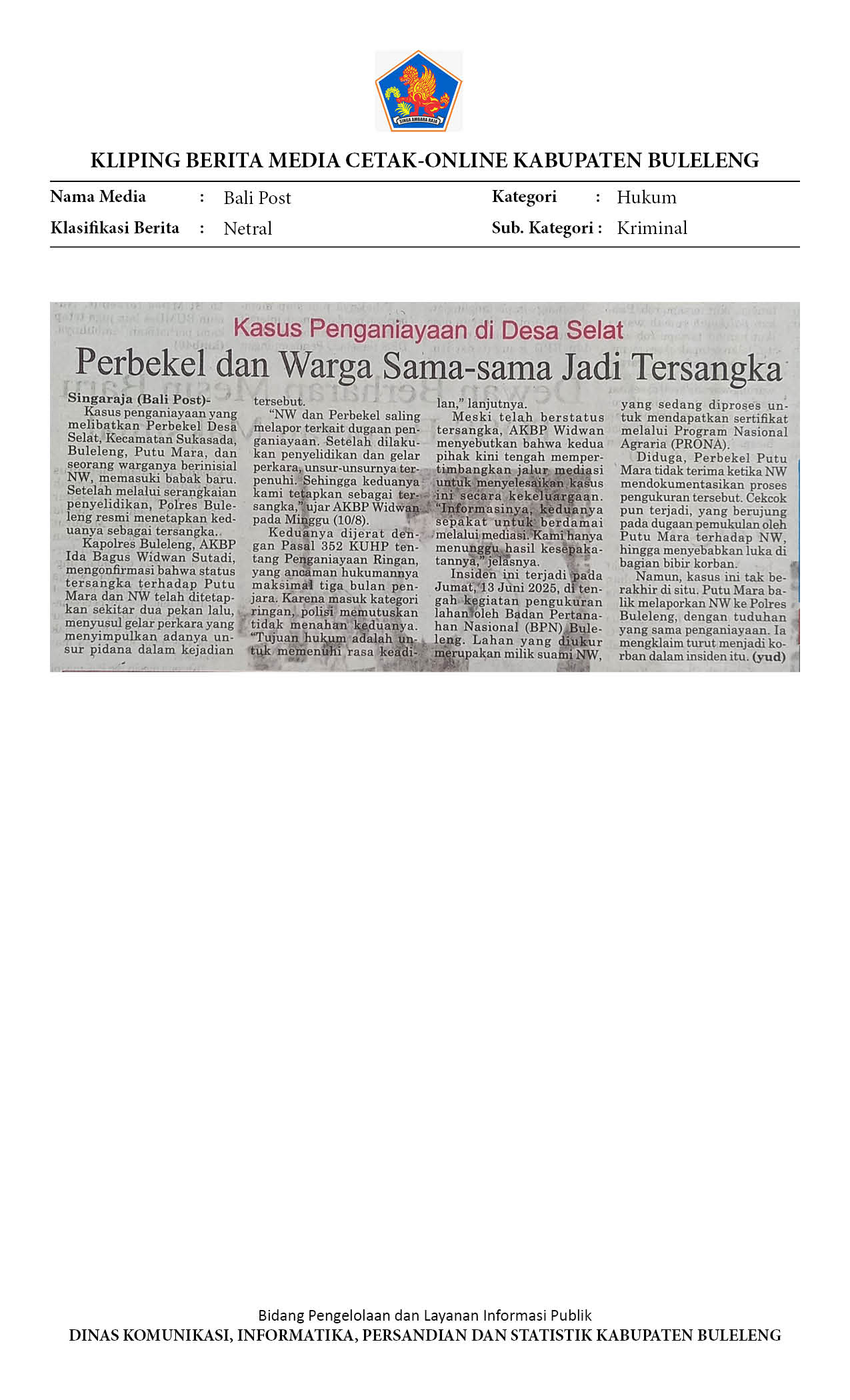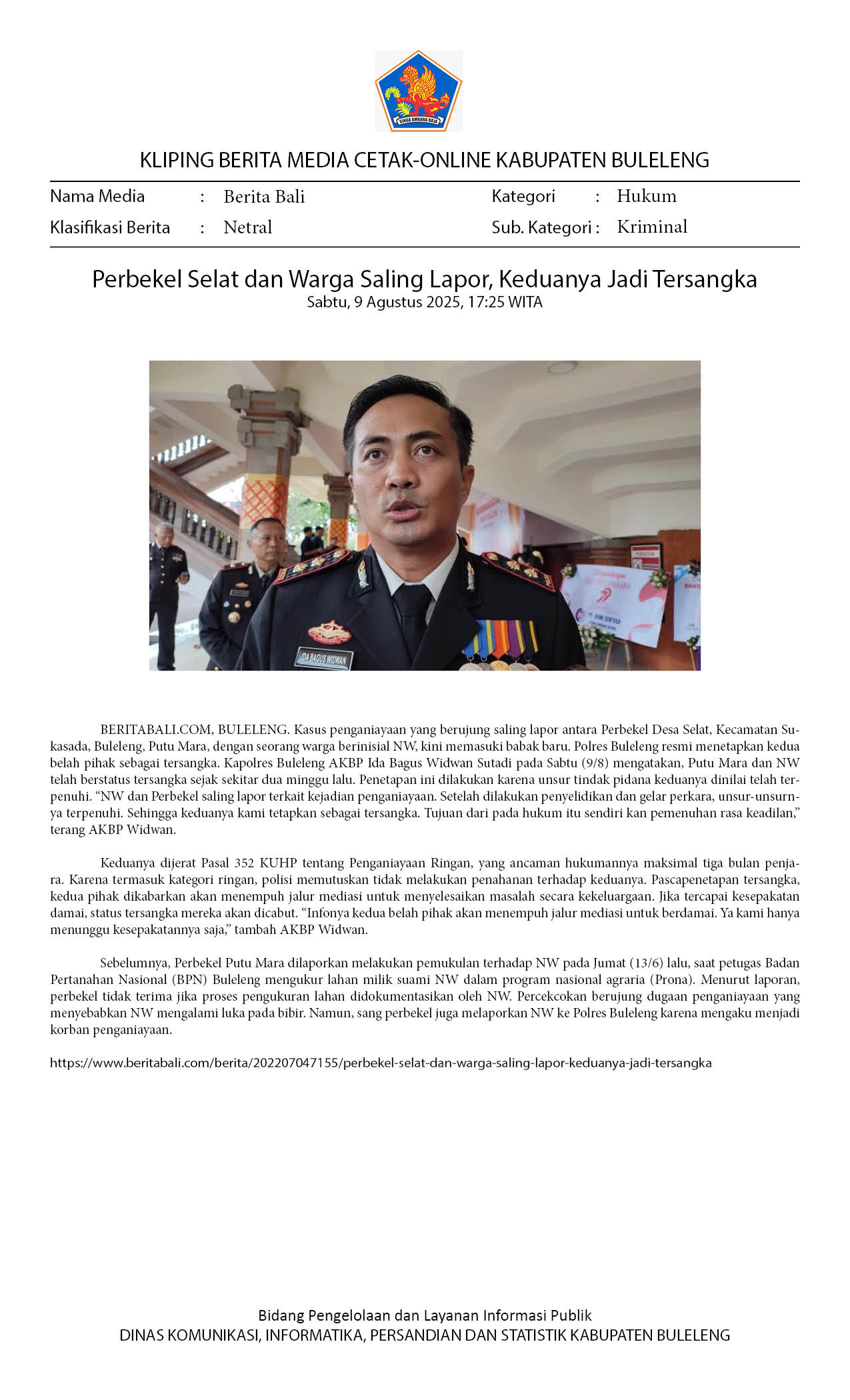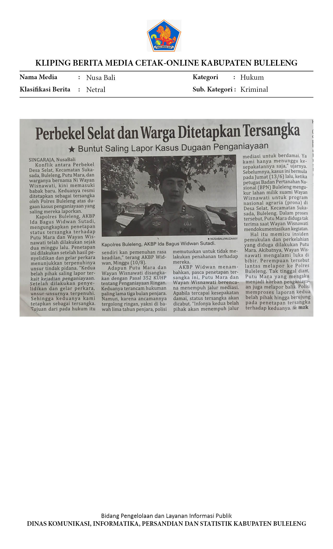 PERBEKEL SELAT DAN WARGA SALING LAPOR, KEDUANYA JADI TERSANGKA