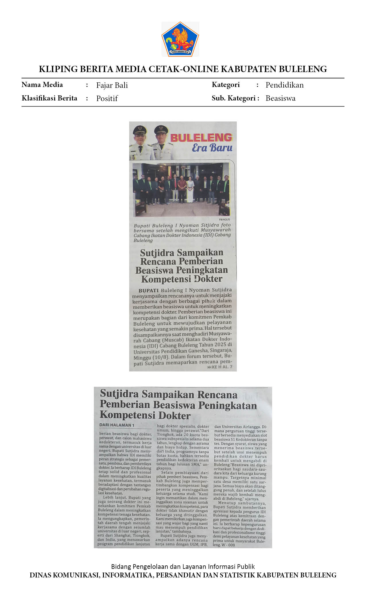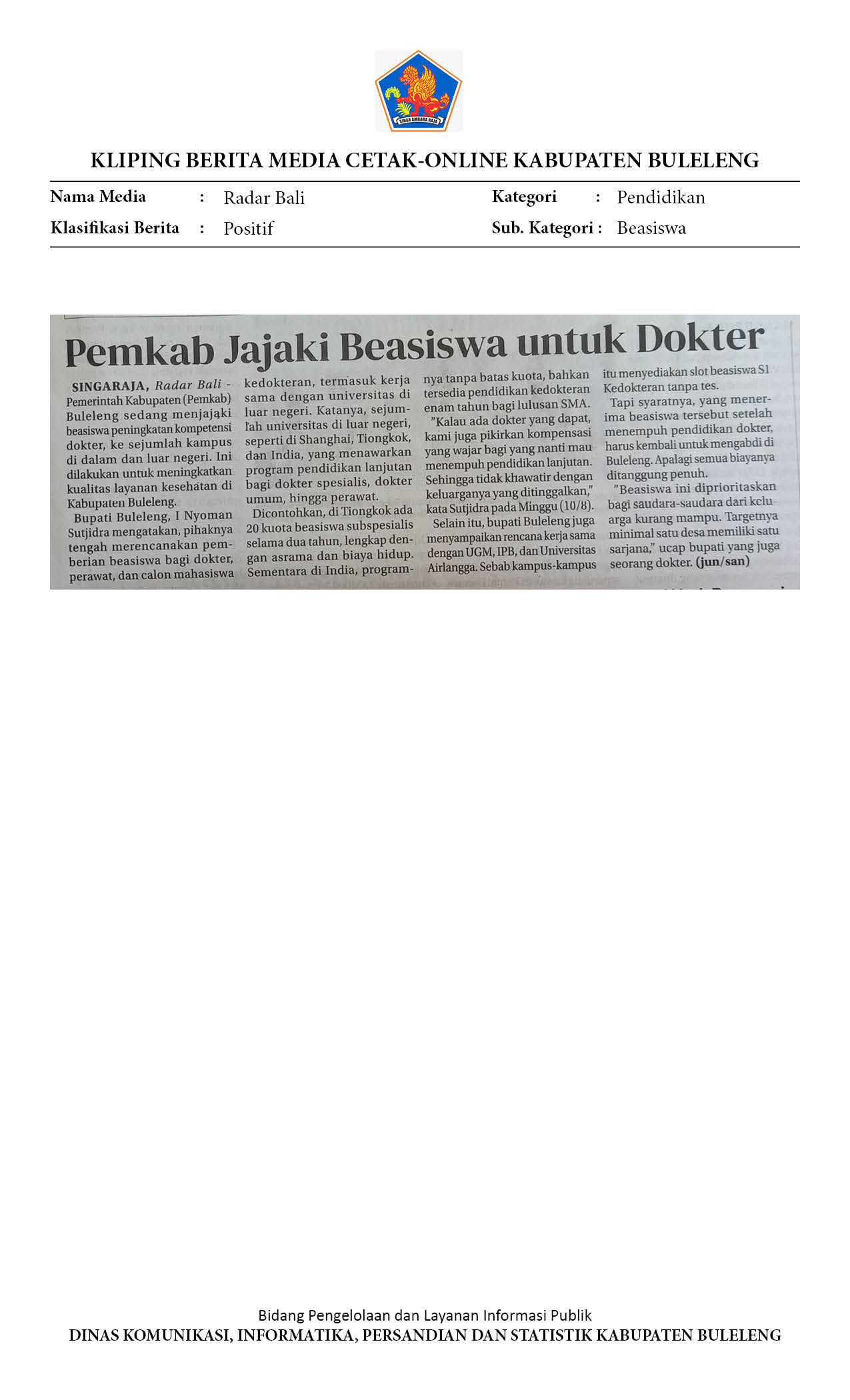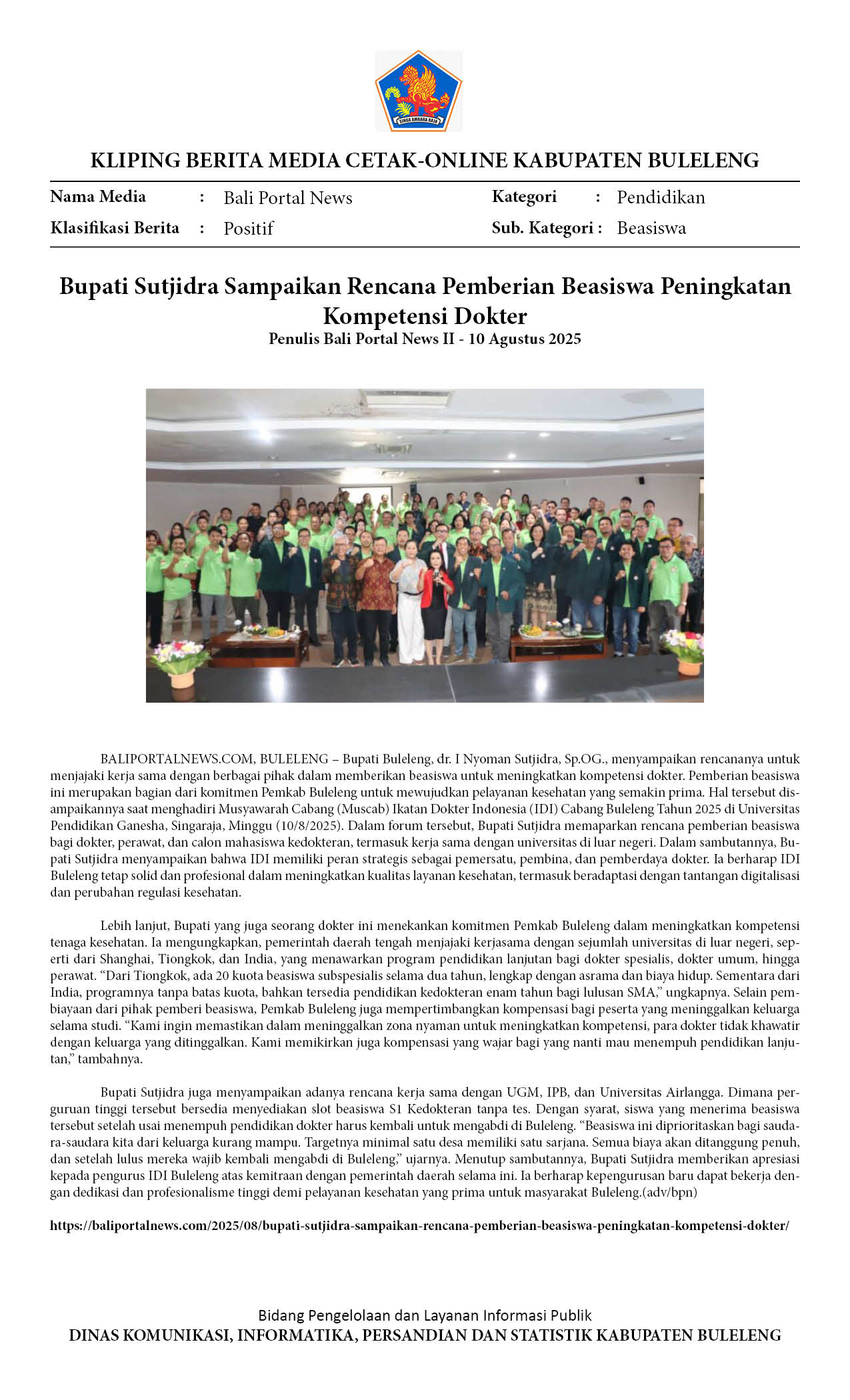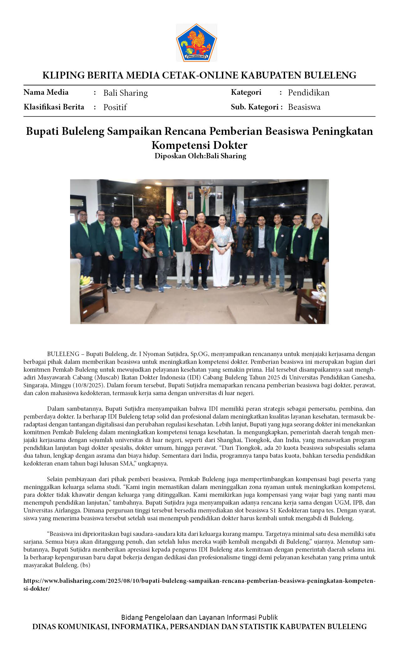 BUPATI BULELENG SAMPAIKAN RENCANA PEMBERIAN BEASISWA PENINGKATAN KOMPETENSI DOKTER