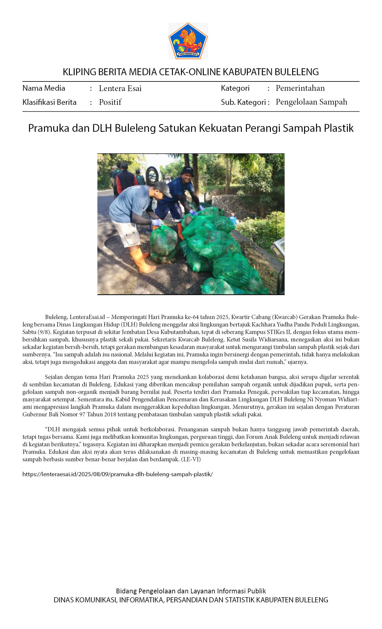 PRAMUKA DAN DLH BULELENG SATUKAN KEKUATAN PERANGI SAMPAH PLASTIK
