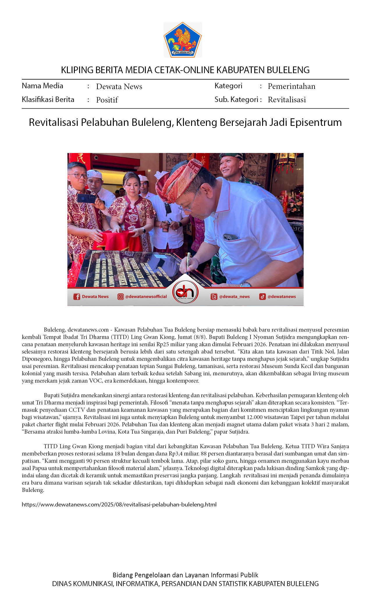 REVITALISASI PELABUHAN BULELENG, KLENTENG BERSEJARAH JADI EPISENTRUM