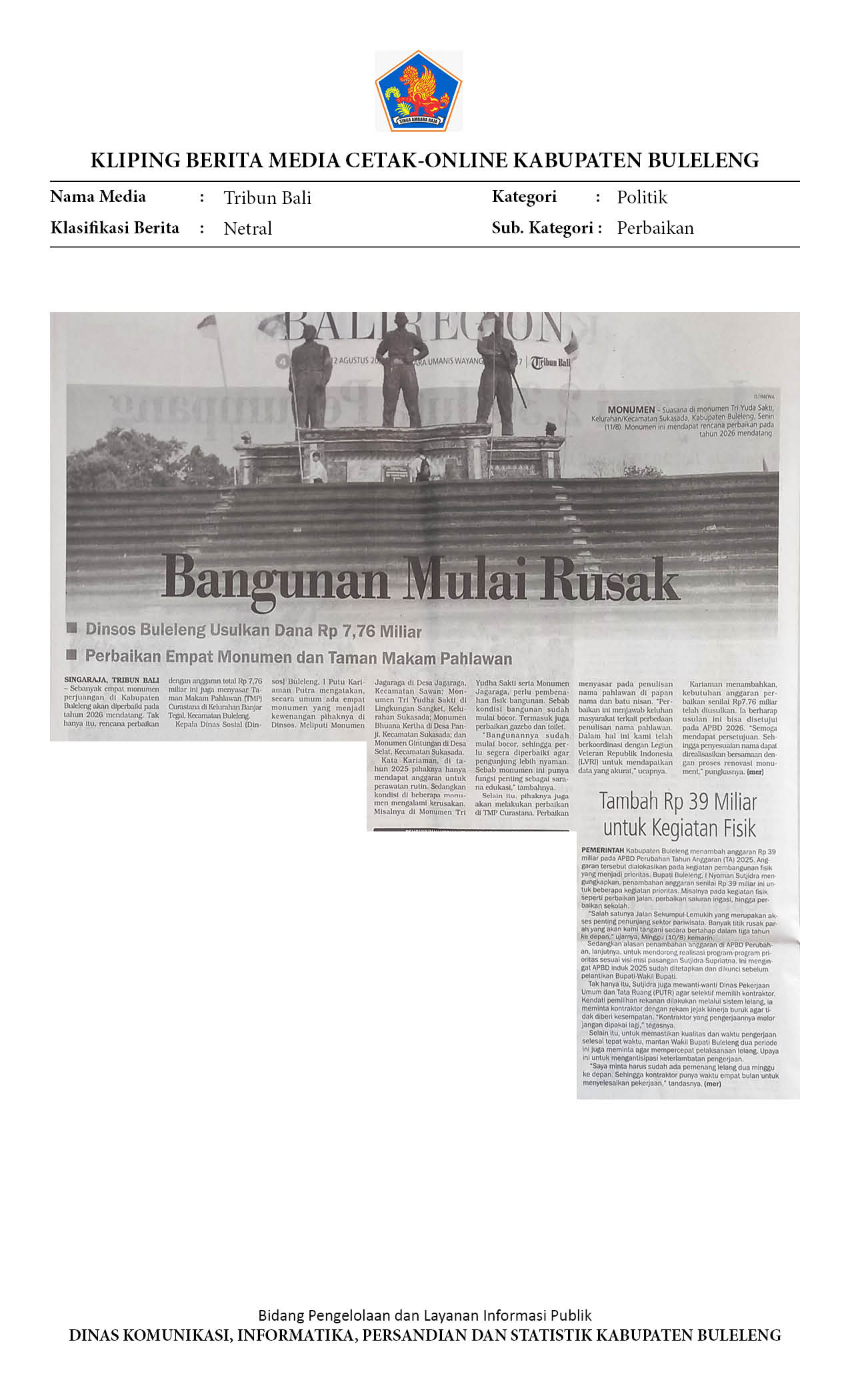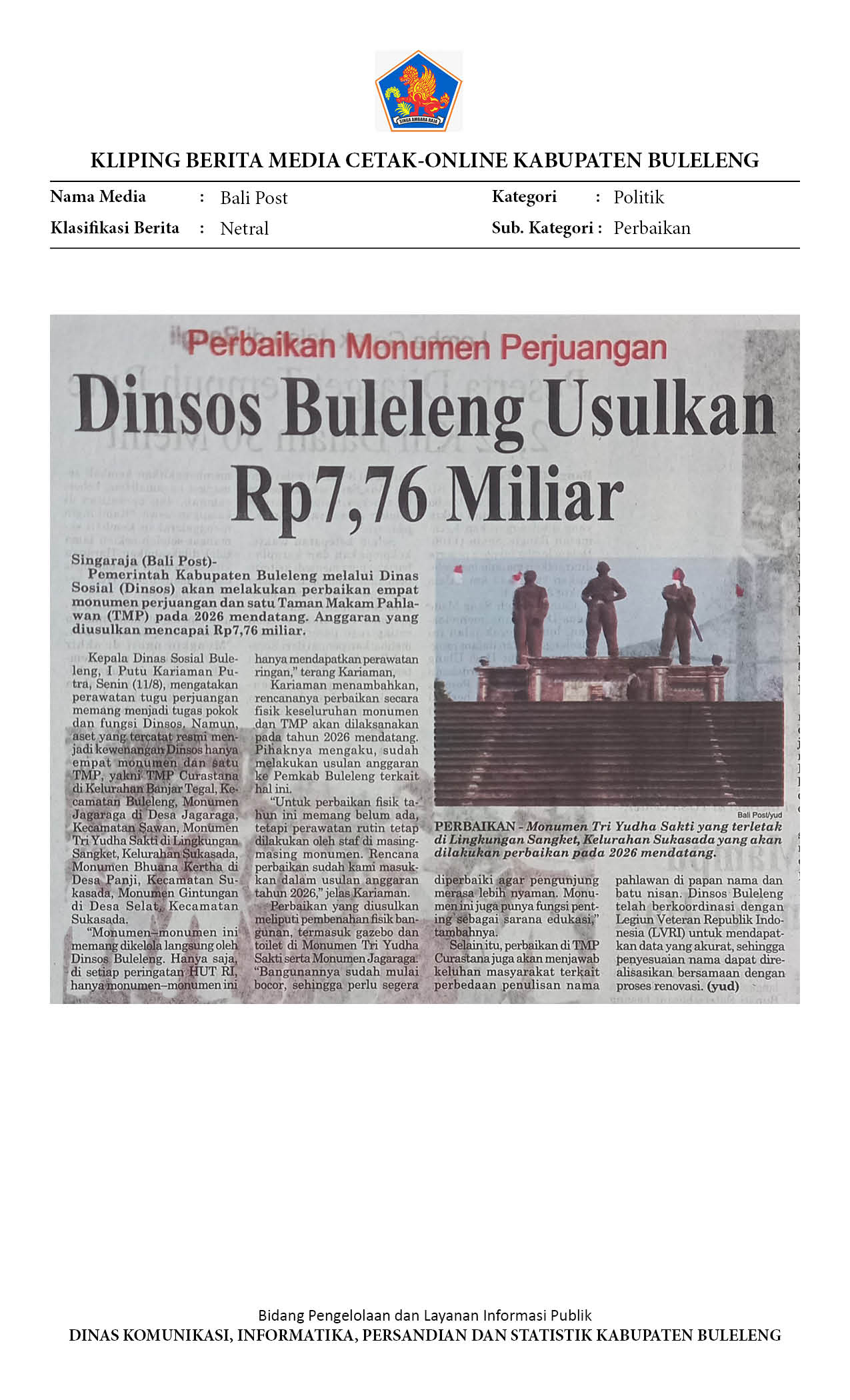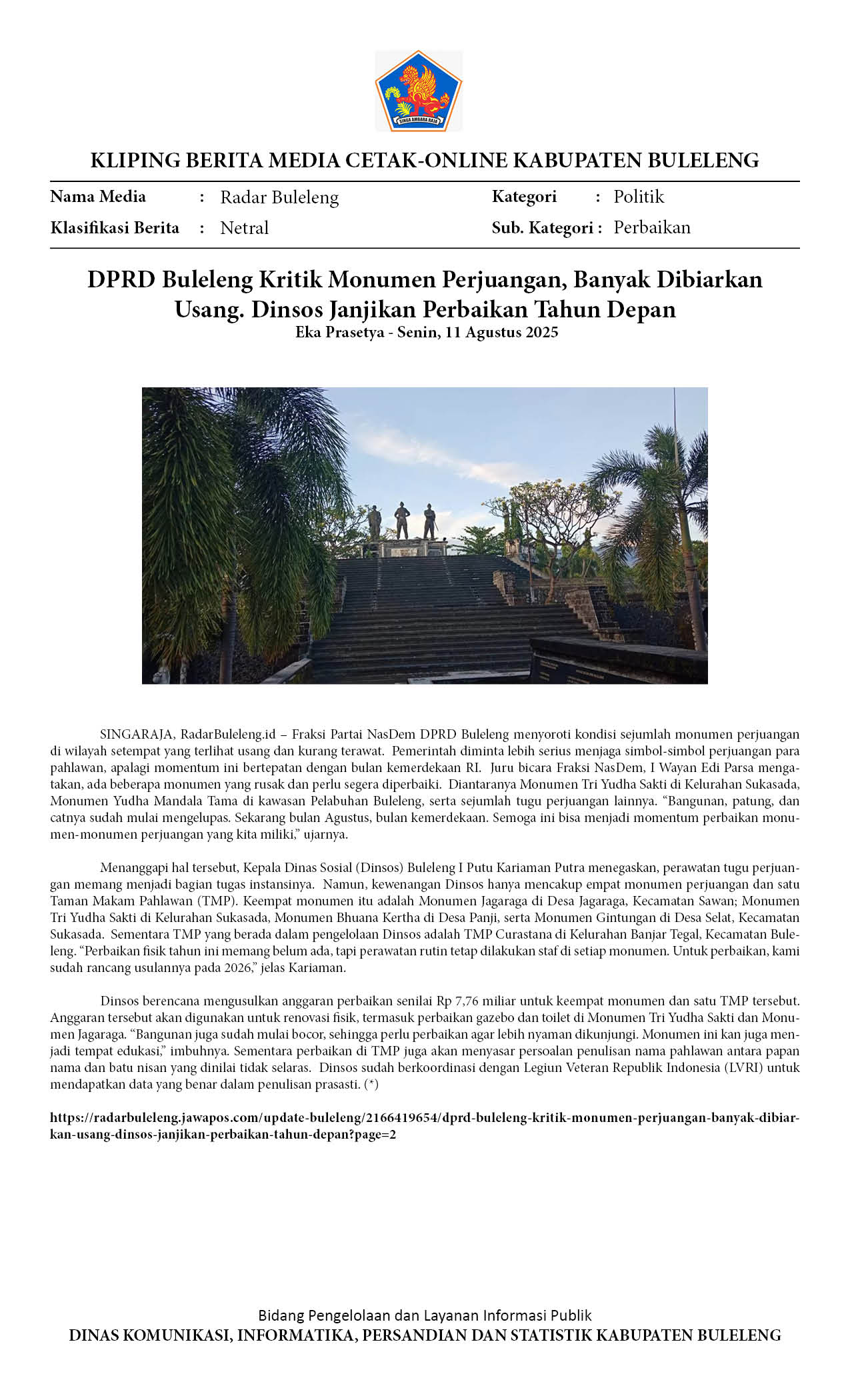 DPRD BULELENG KRITIK MONUMEN PERJUANGAN, BANYAK DIBIARKAN USANG. DINSOS JANJIKAN PERBAIKAN TAHUN DEPAN