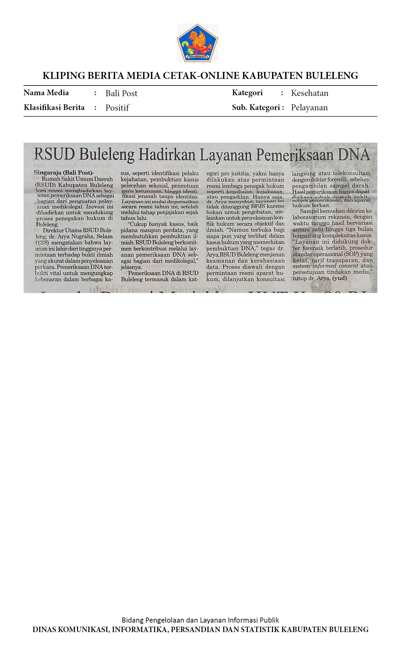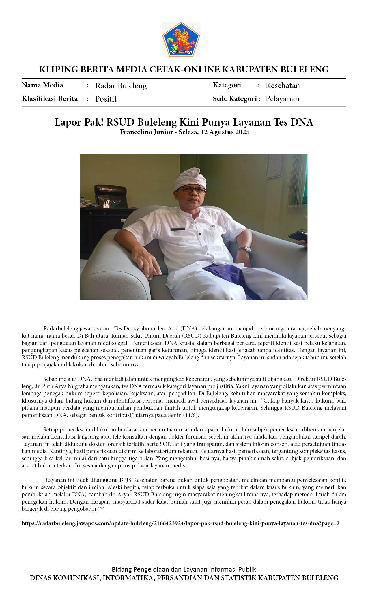 LAPOR PAK! RSUD BULELENG KINI PUNYA LAYANAN TES DNA