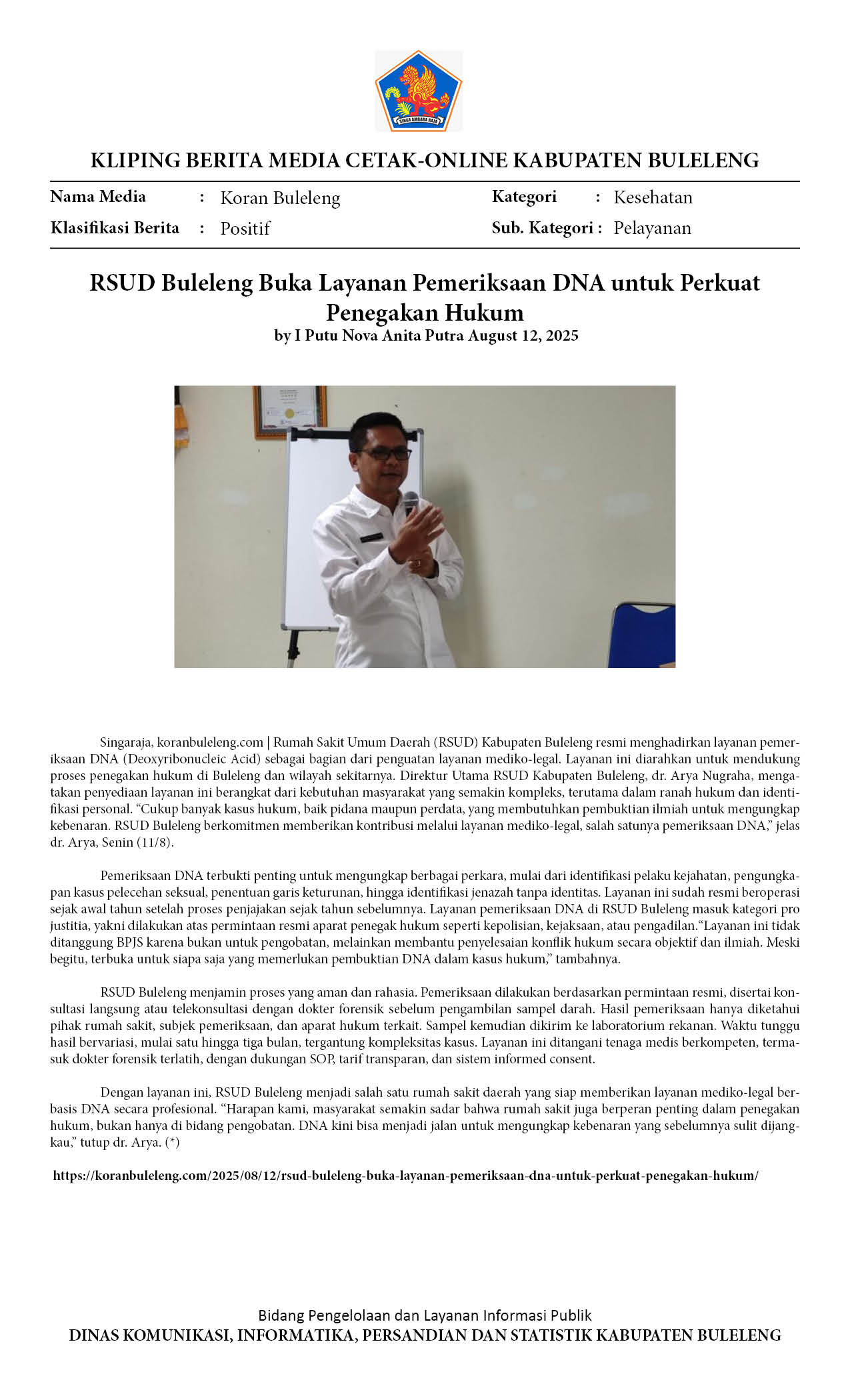 RSUD BULELENG BUKA LAYANAN PEMERIKSAAN DNA UNTUK PERKUAT PENEGAKAN HUKUM