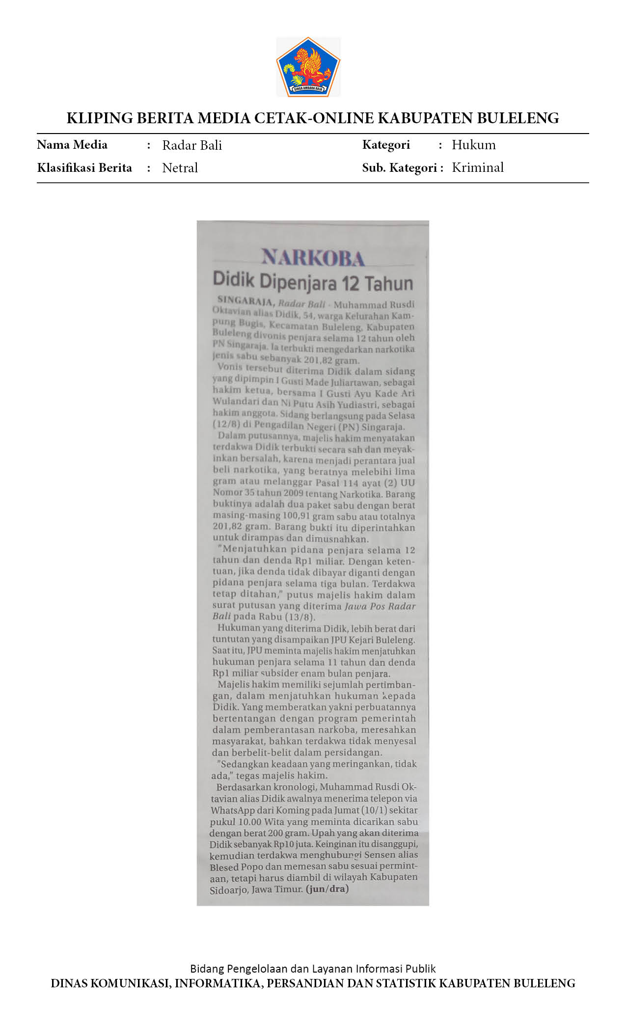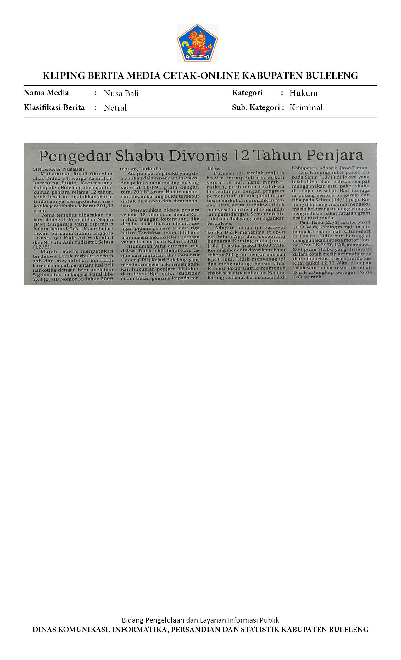 PENGEDAR SHABU DIVONIS 12 TAHUN PENJARA