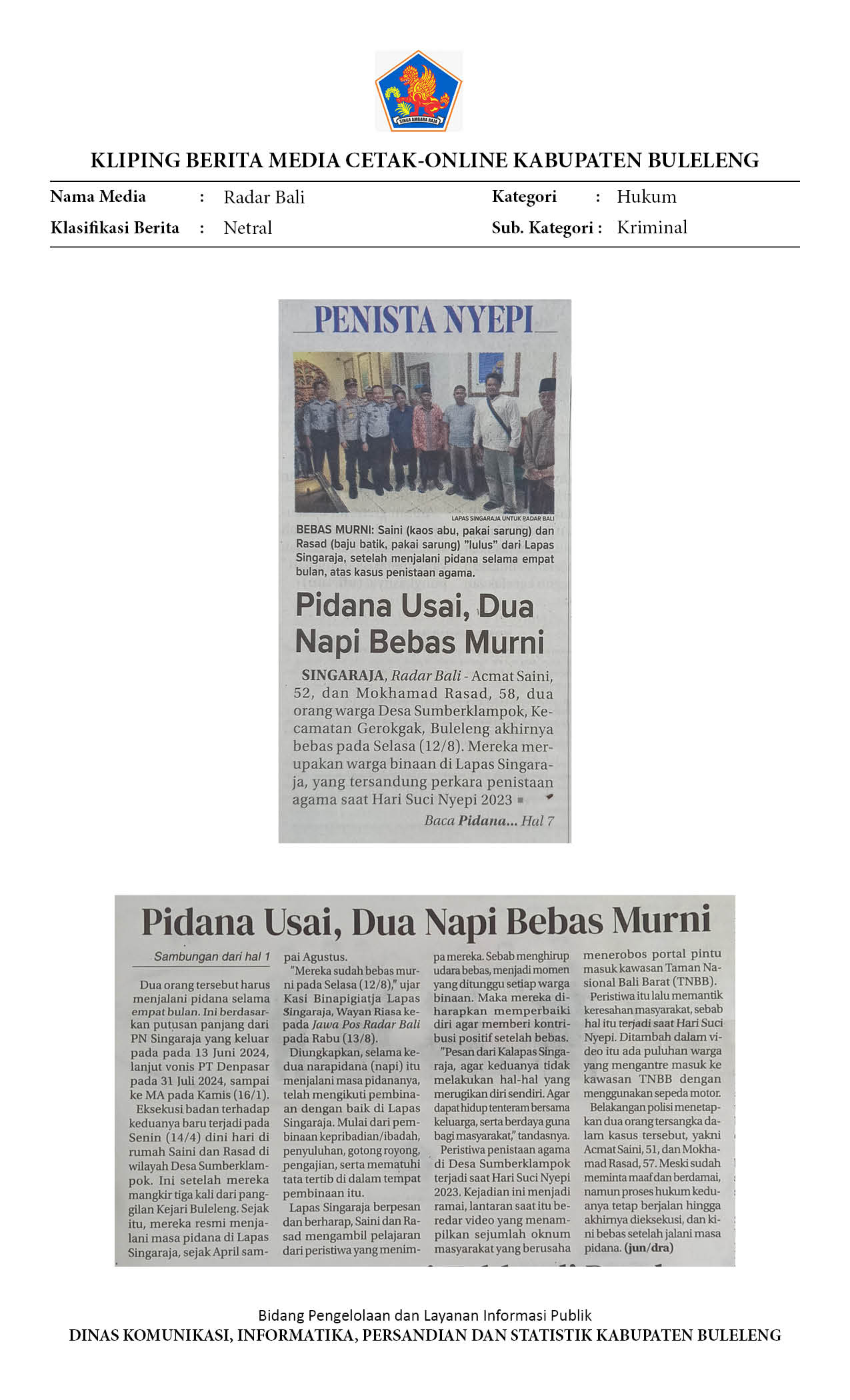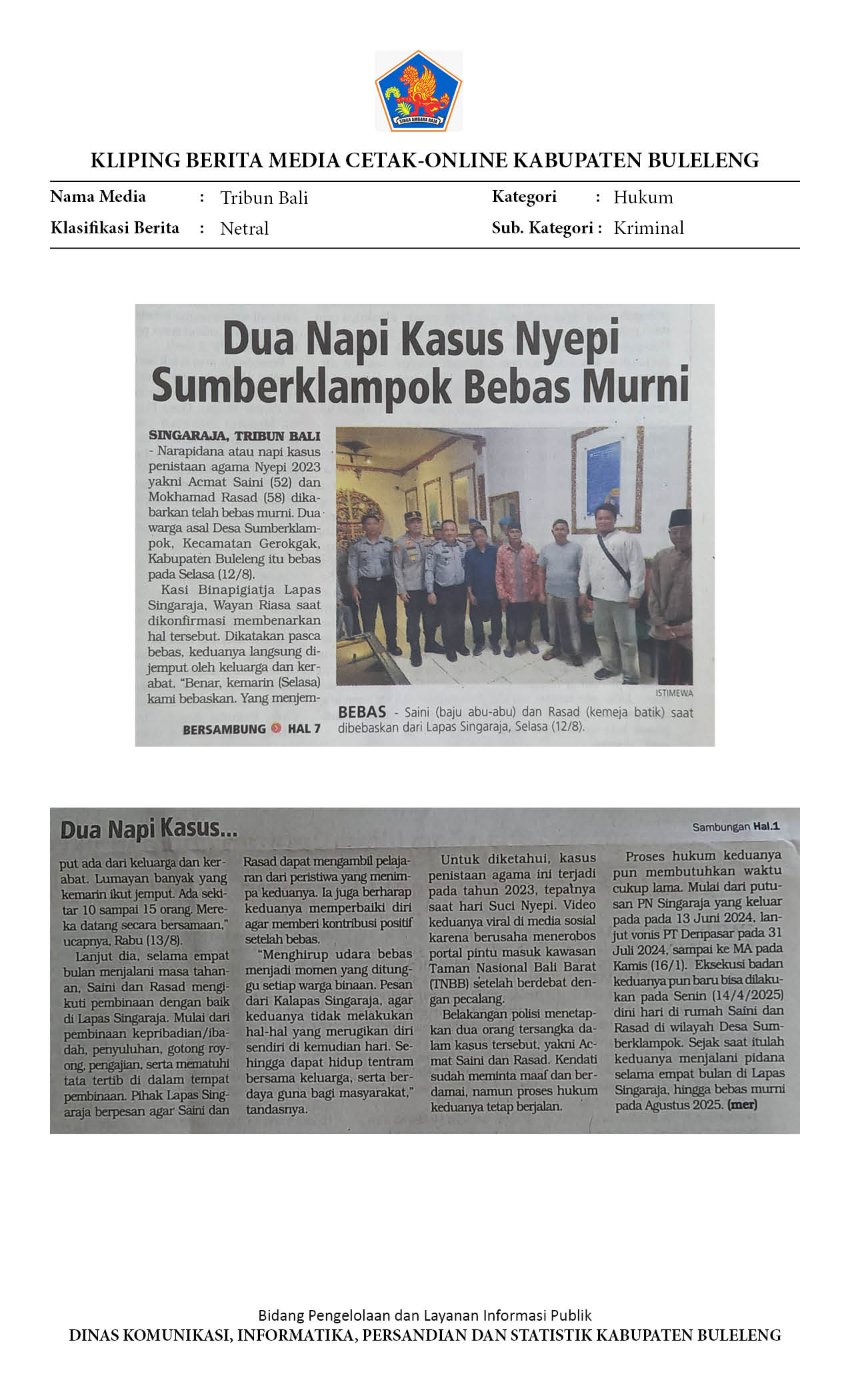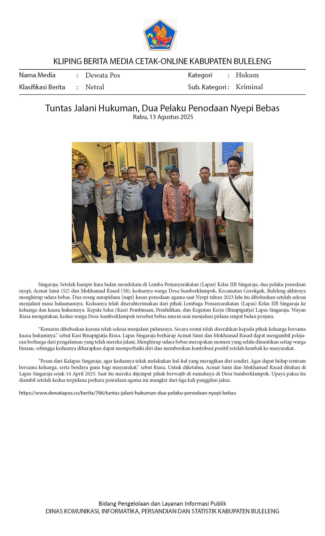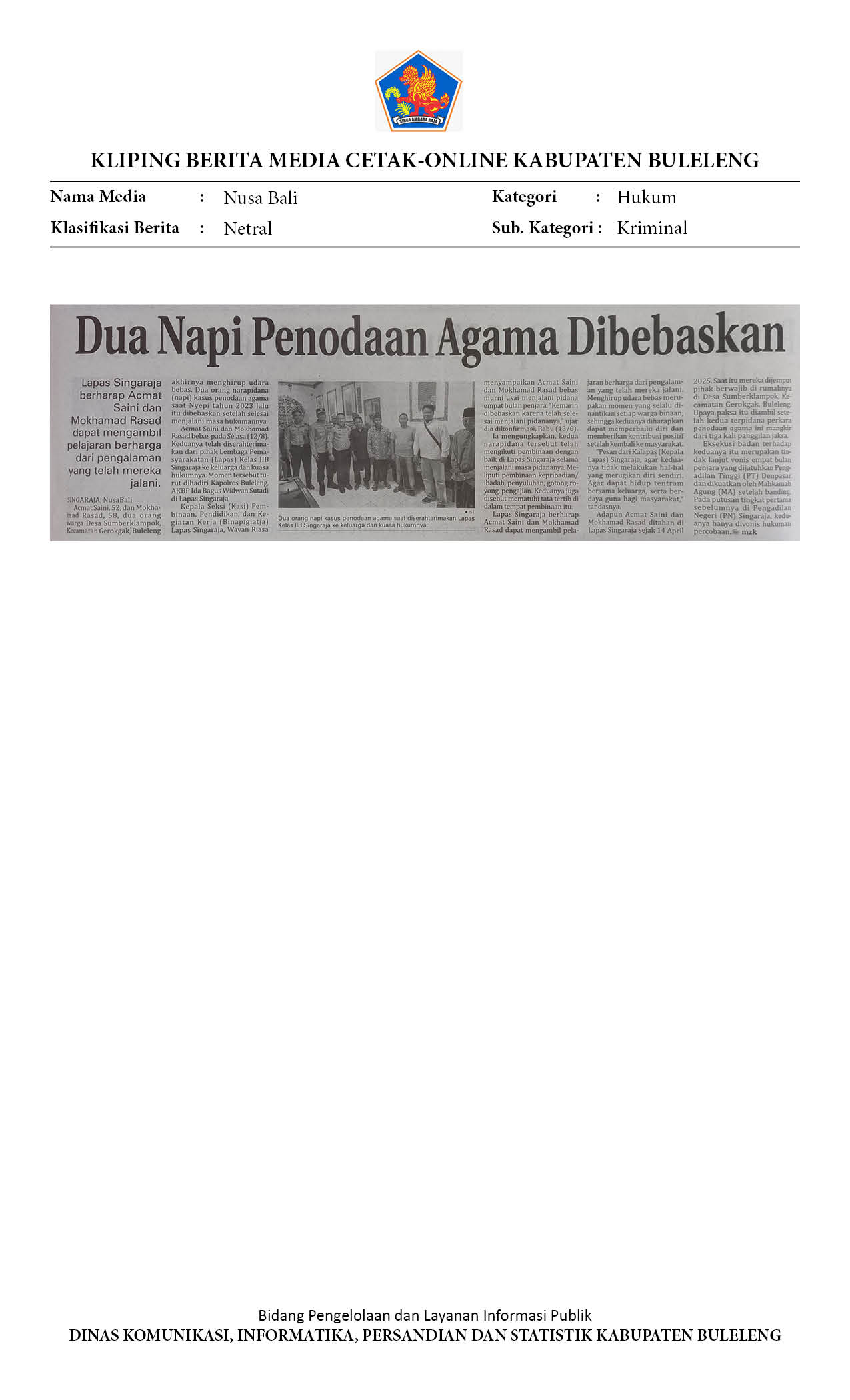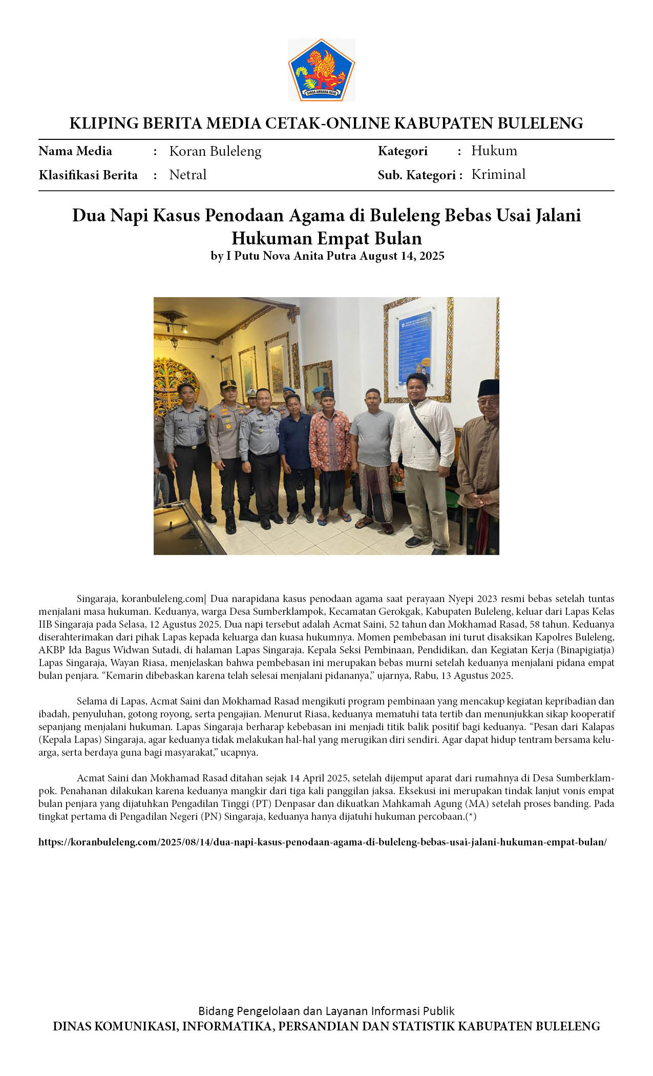 DUA NAPI KASUS PENODAAN AGAMA DI BULELENG BEBAS USAI JALANI HUKUMAN EMPAT BULAN
