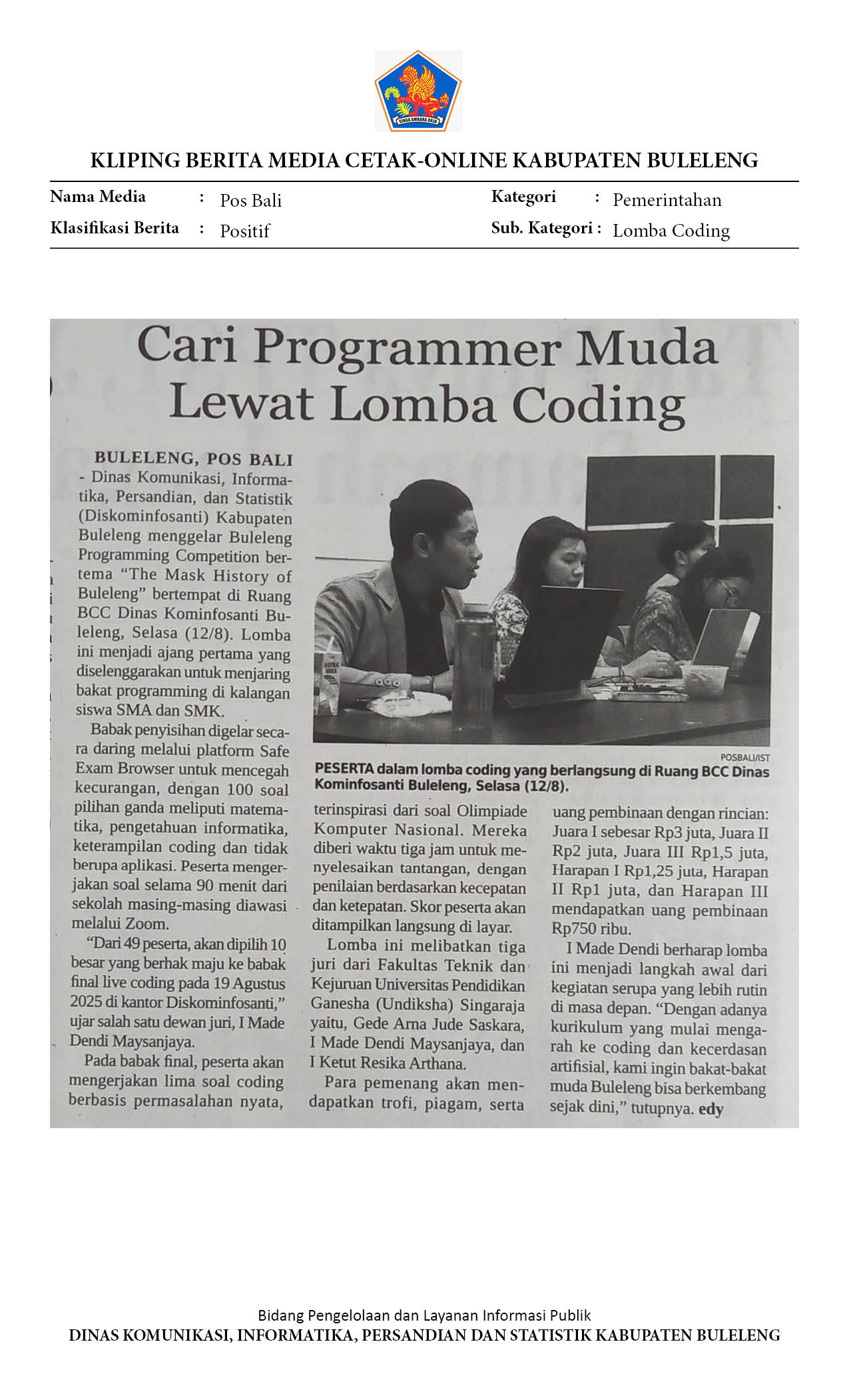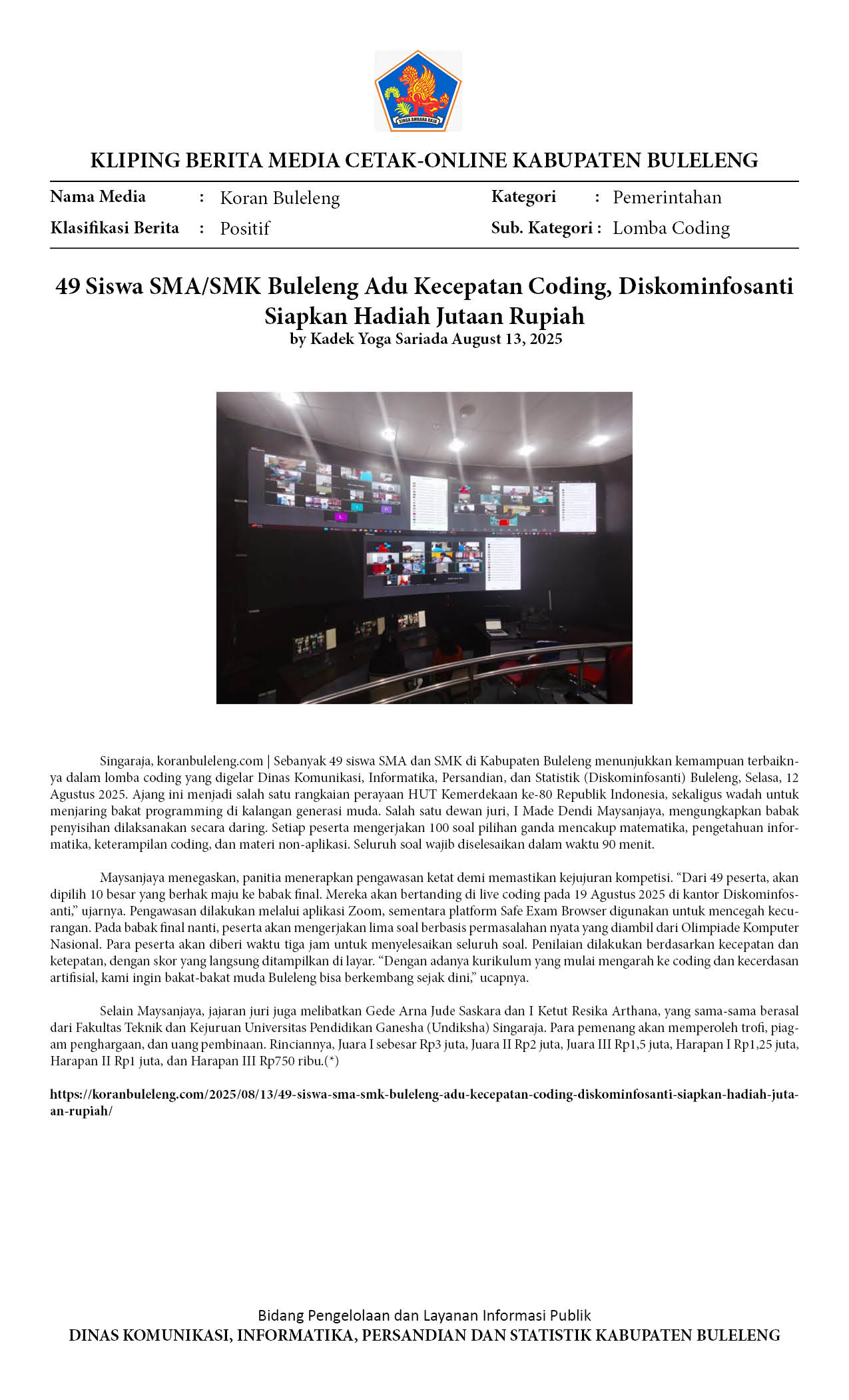 49 SISWA SMA/SMK BULELENG ADU KECEPATAN CODING, DISKOMINFOSANTI SIAPKAN HADIAH JUTAAN RUPIAH
