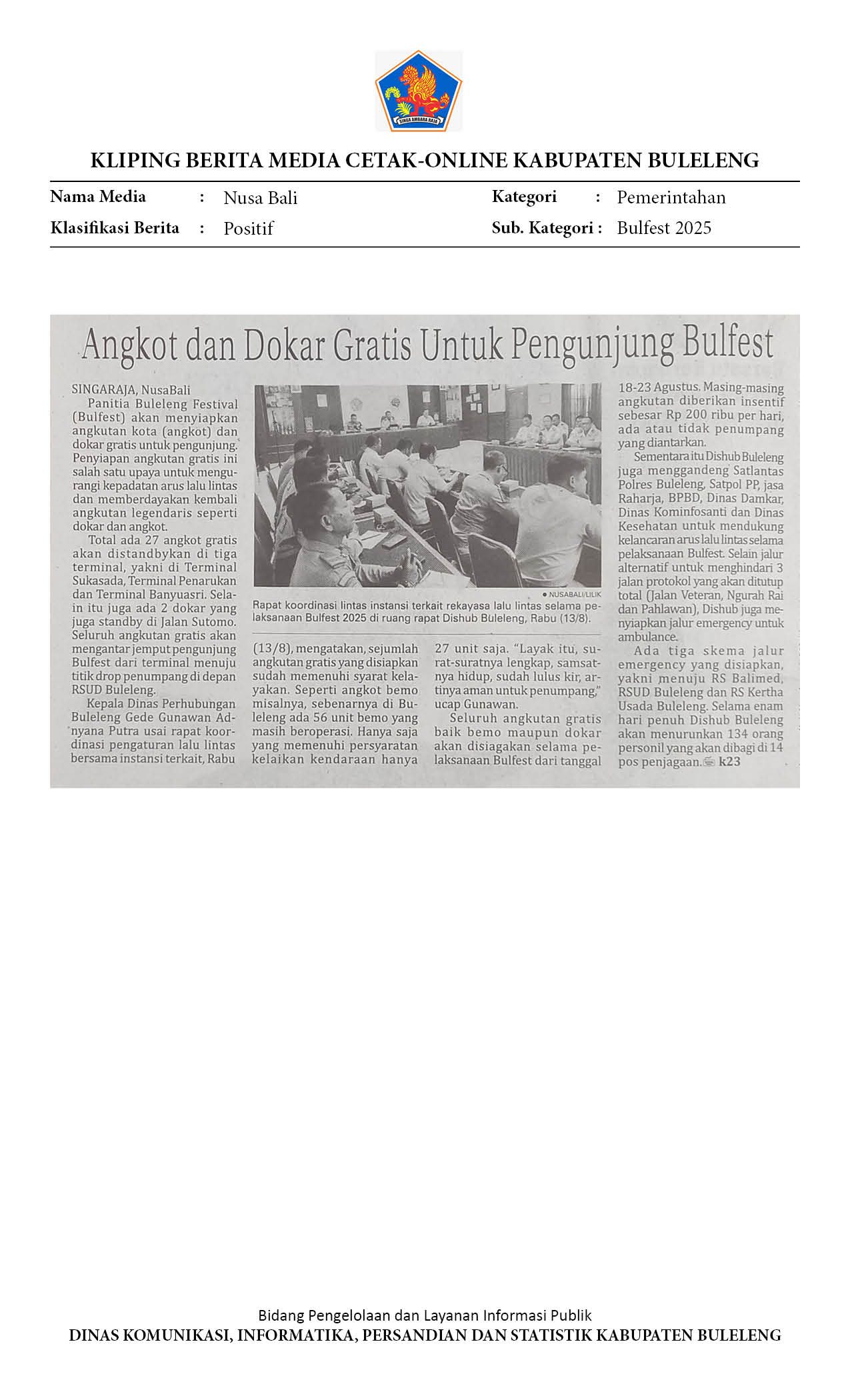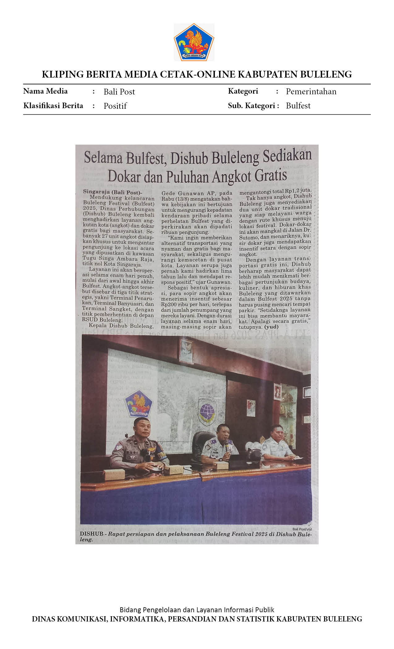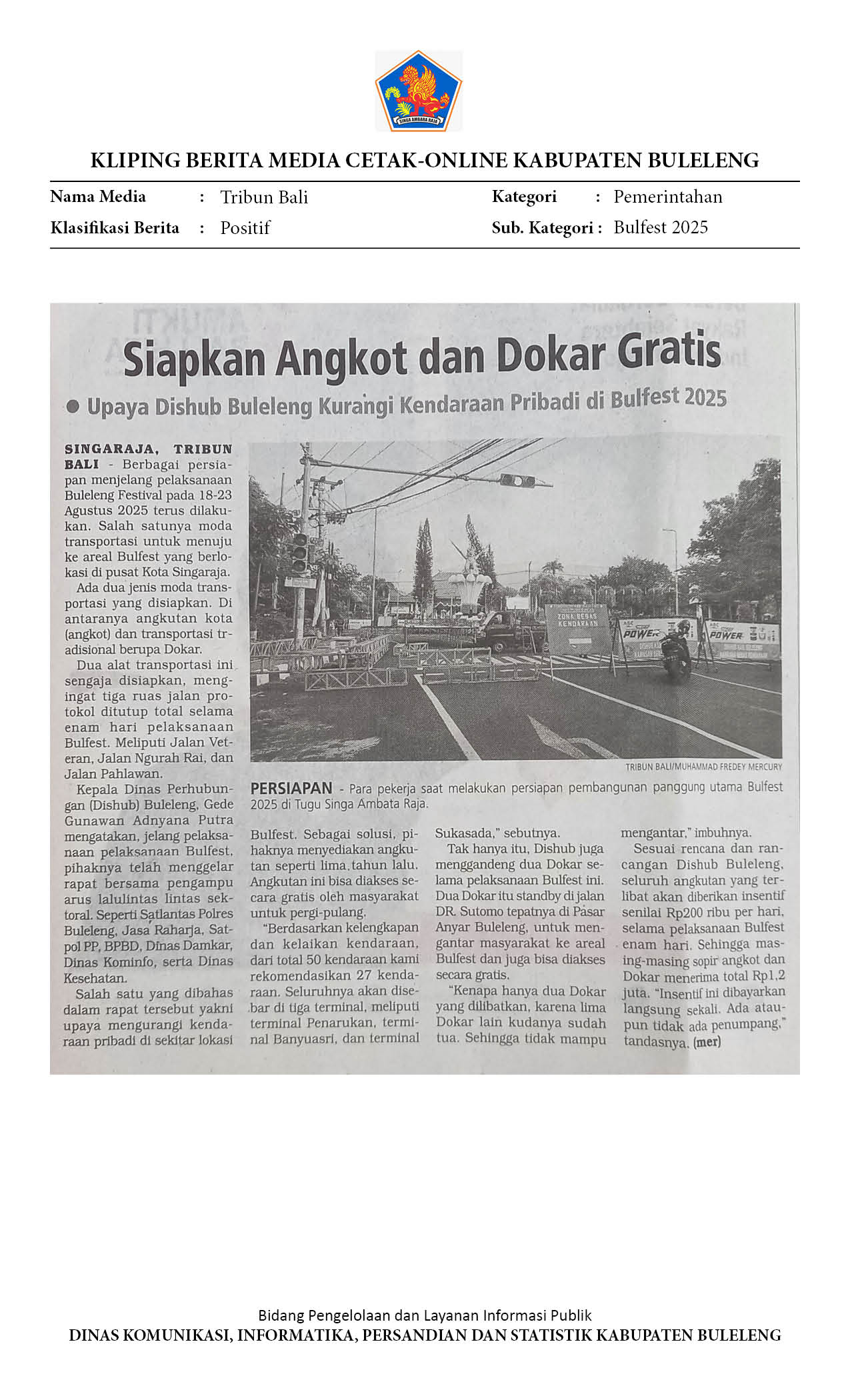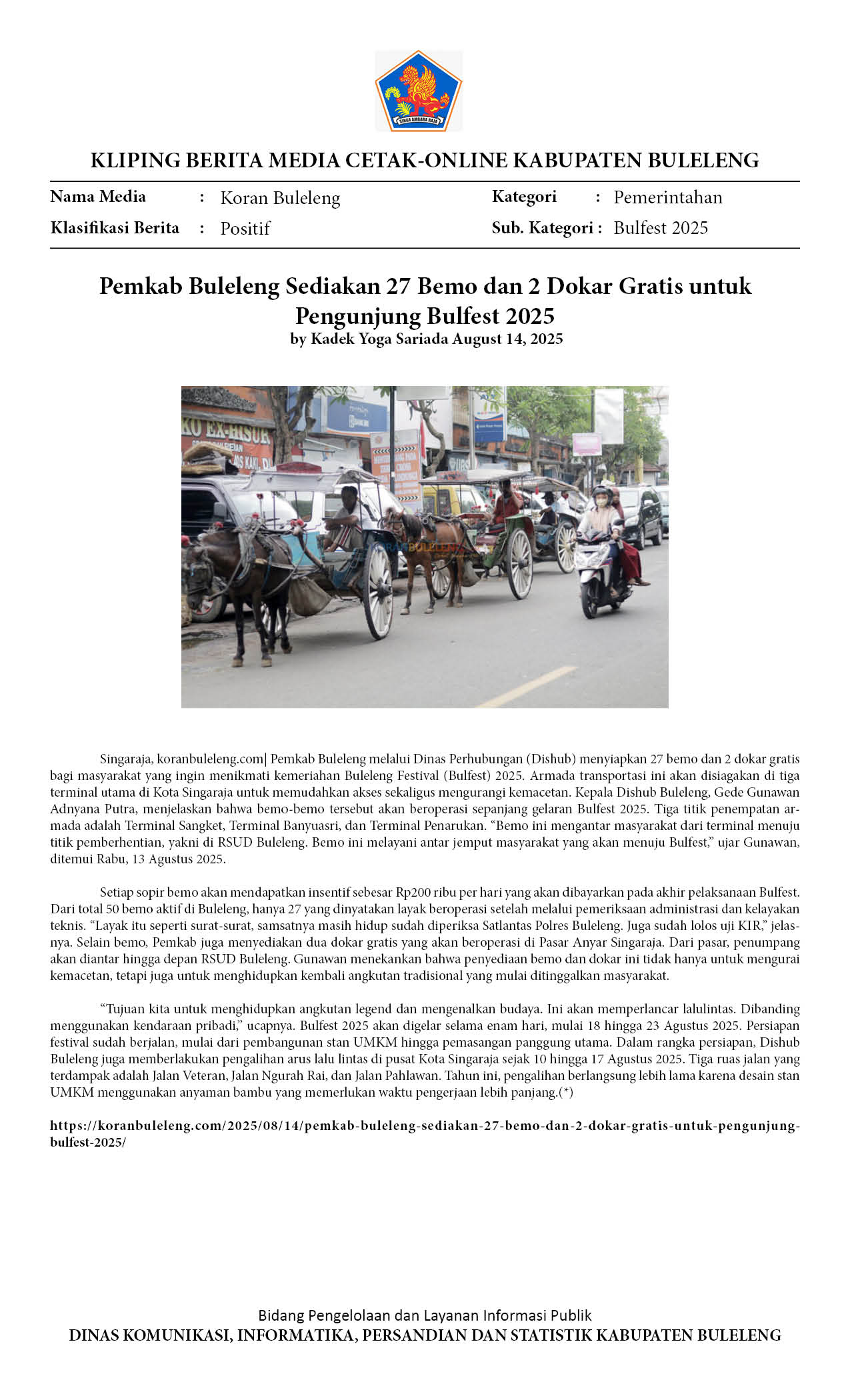 PEMKAB BULELENG SEDIAKAN 27 BEMO DAN 2 DOKAR GRATIS UNTUK PENGUNJUNG BULFEST 2025