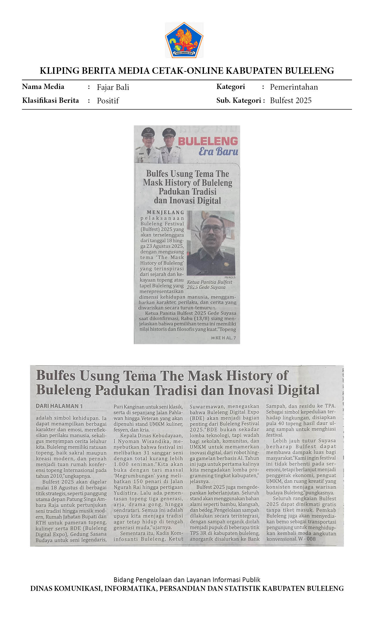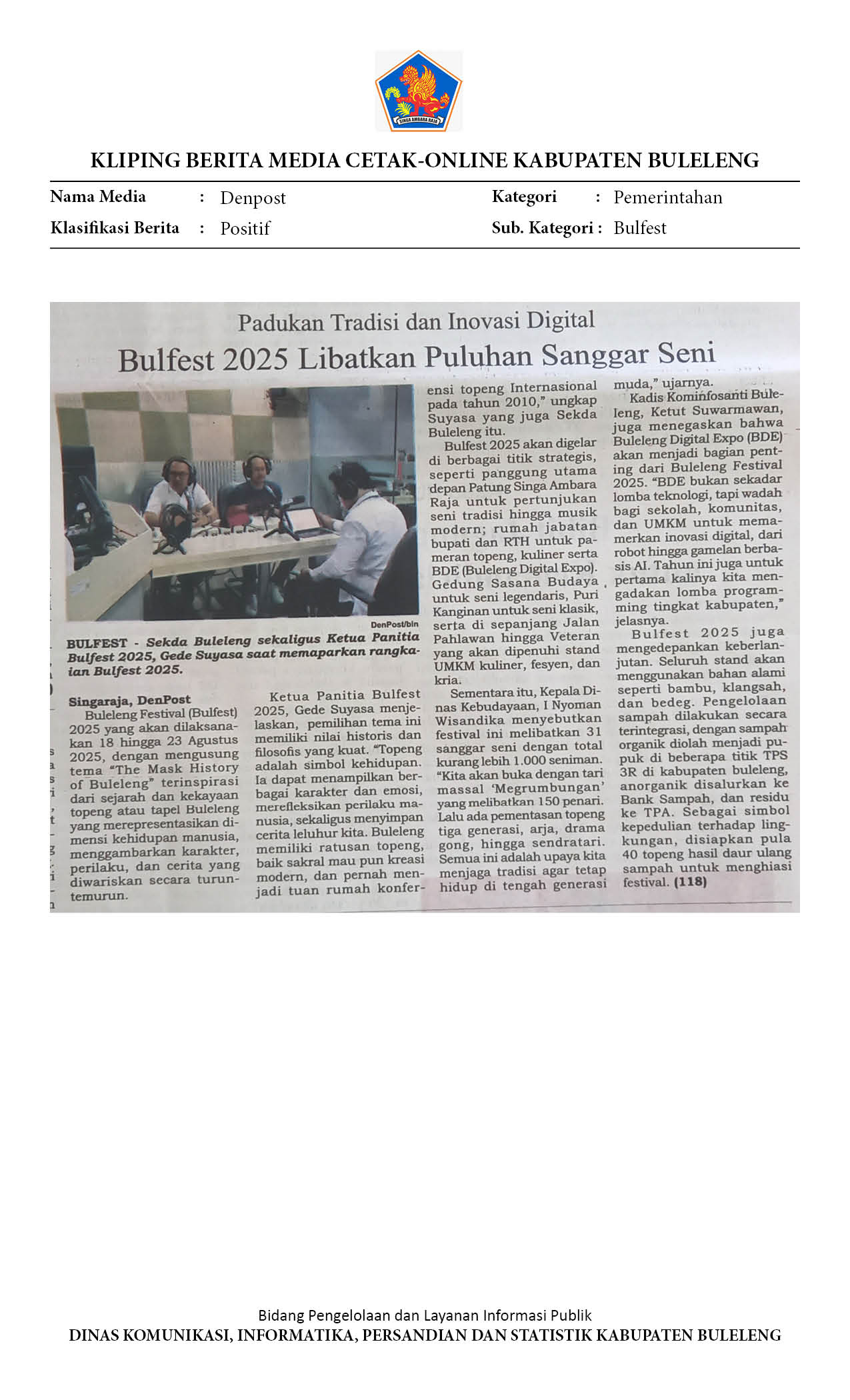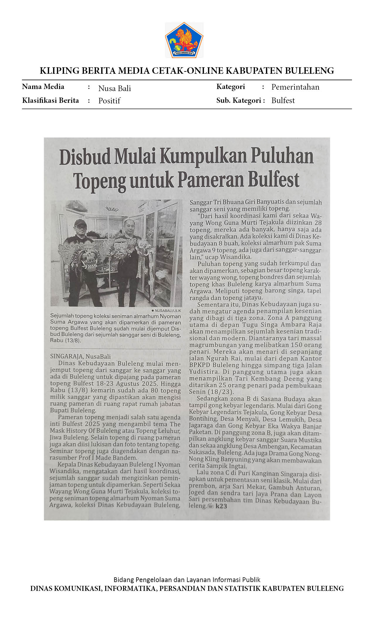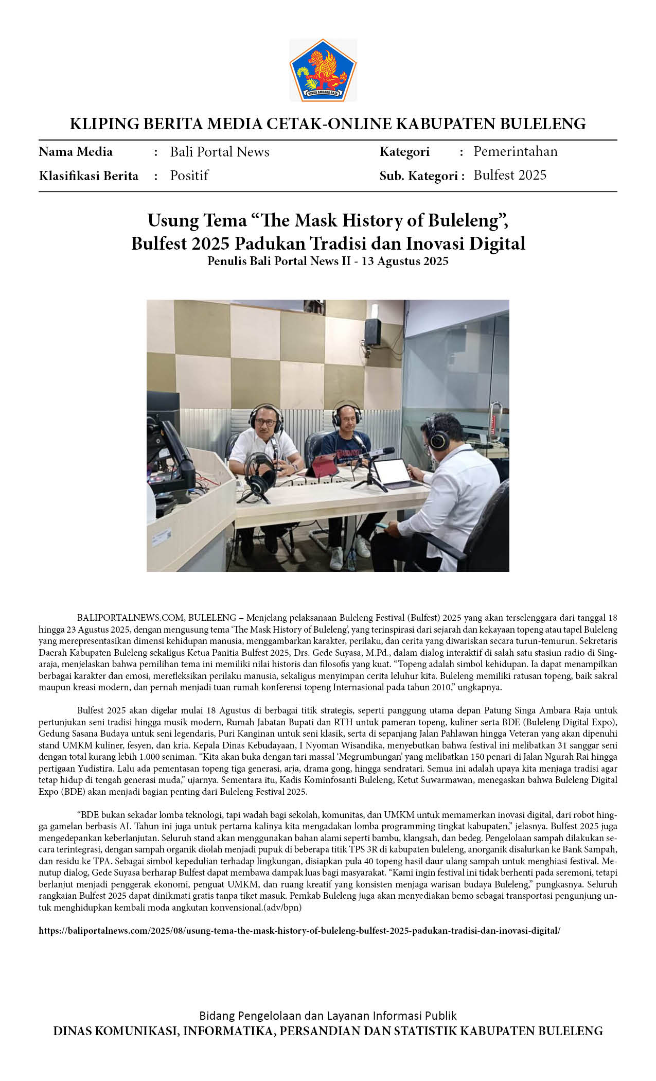 BULELENG FESTIVAL 2025 SIAP MERIAHKAN AGUSTUS, ANGKAT WARISAN TOPENG KE ERA DIGITAL
