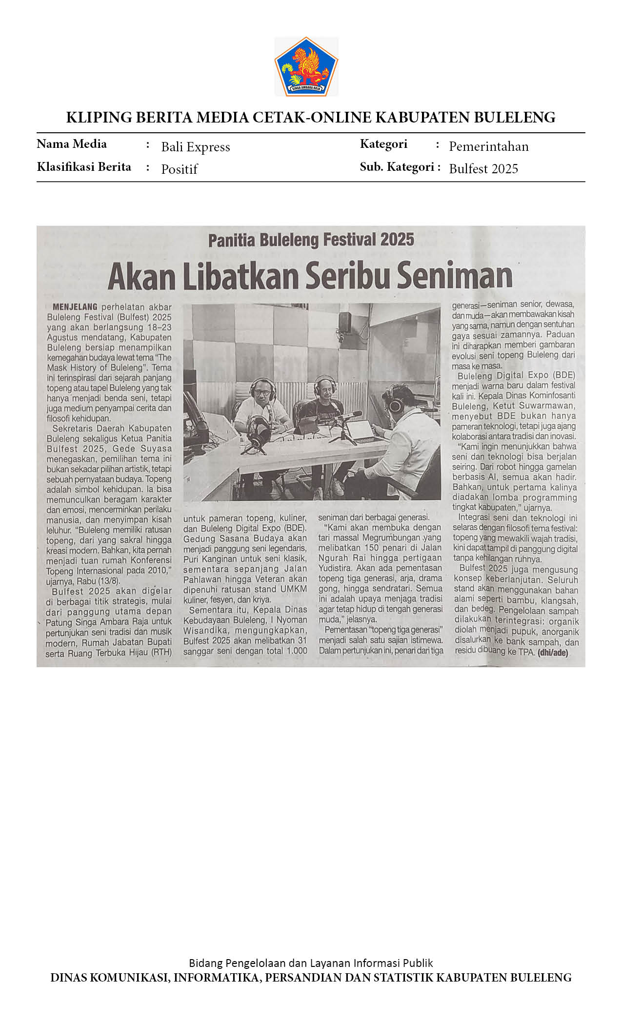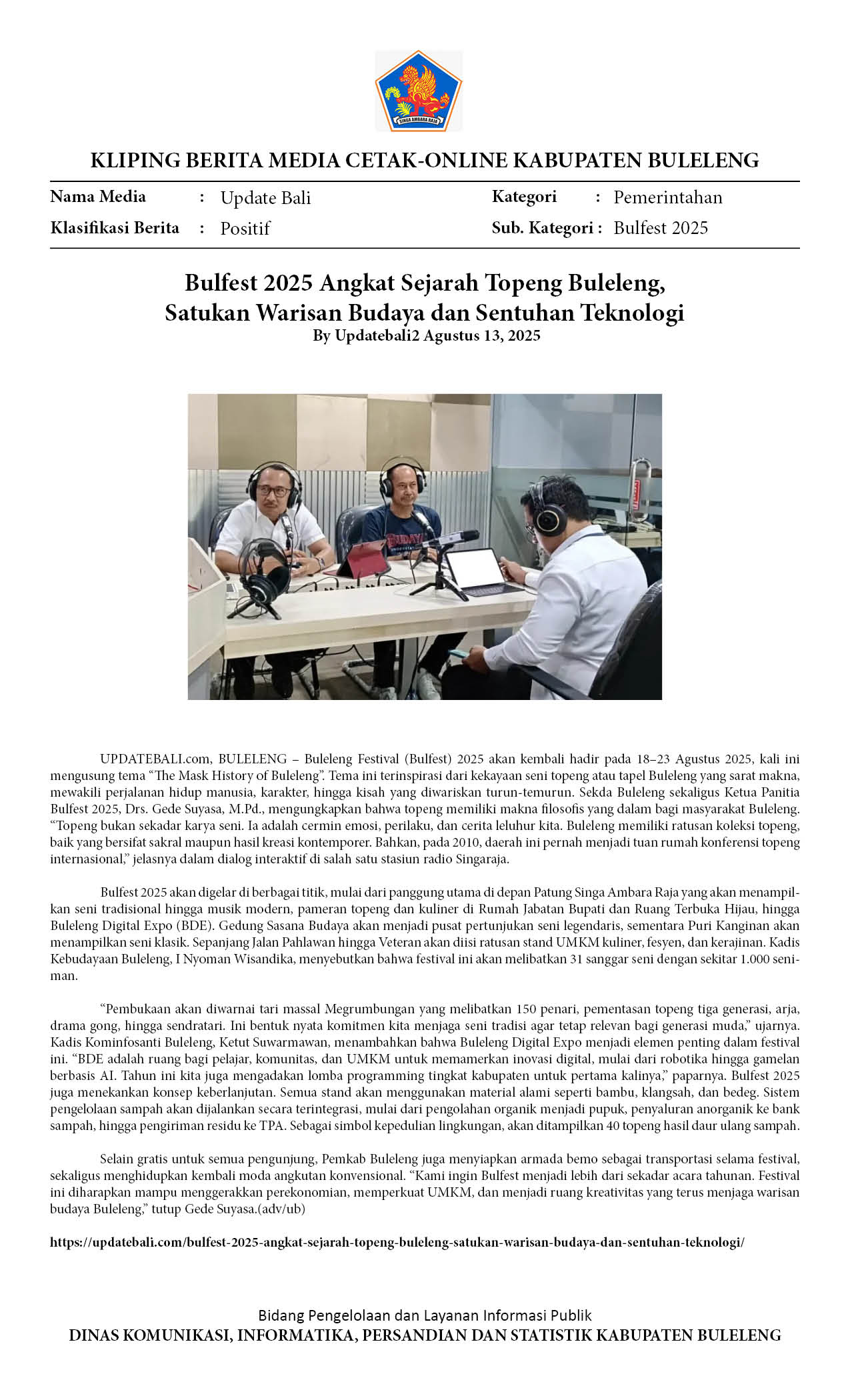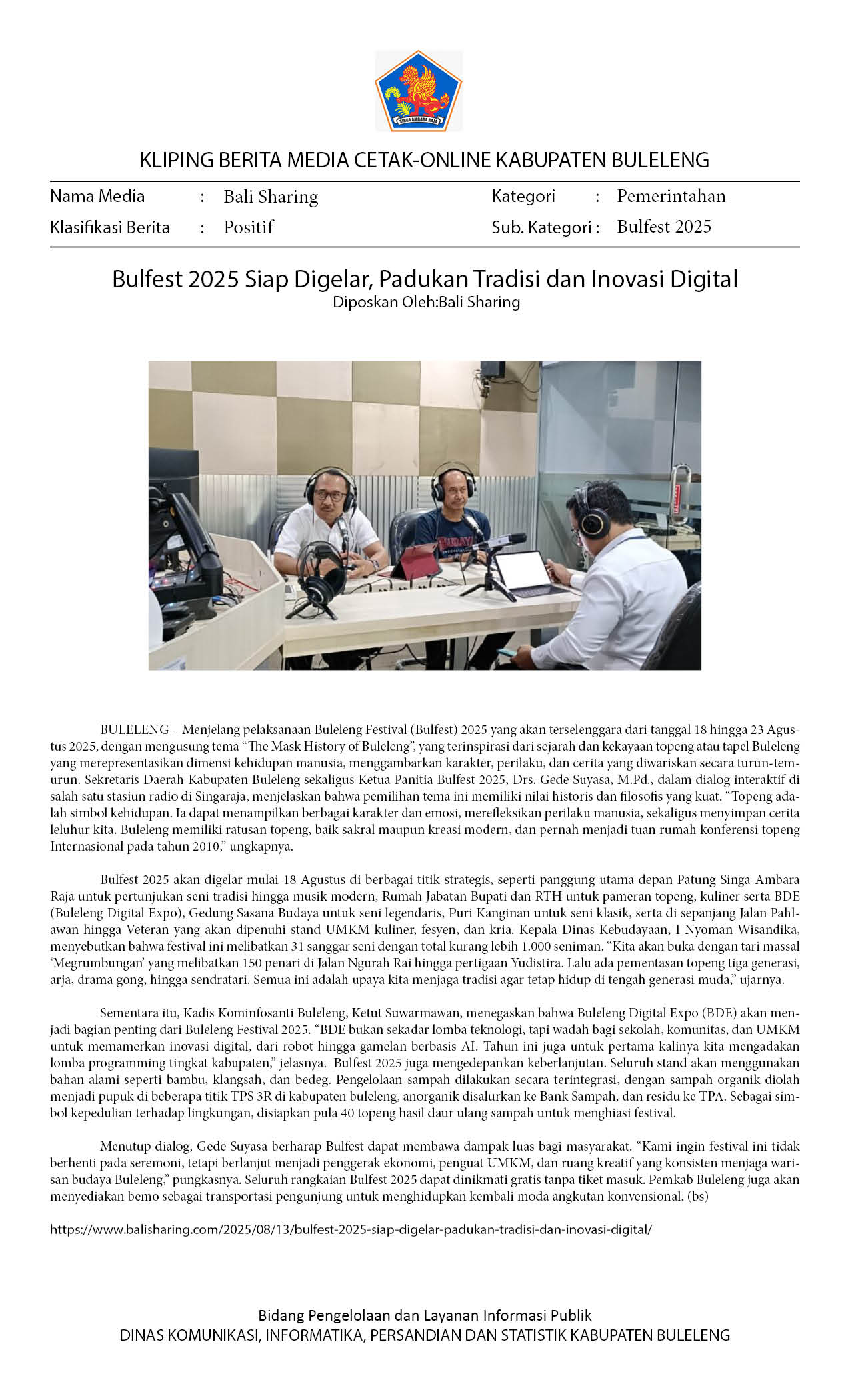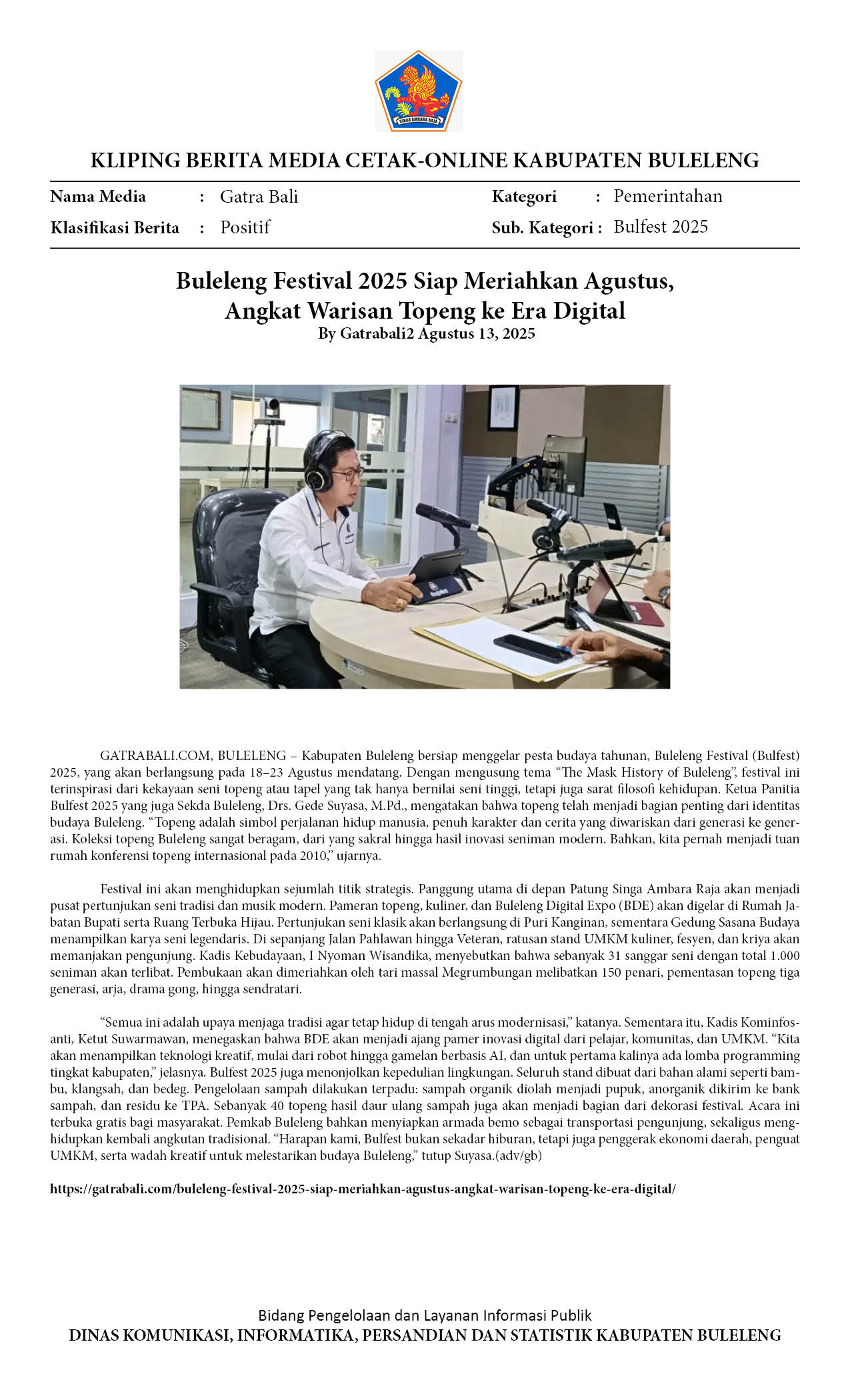 BULELENG FESTIVAL 2025 SIAP MERIAHKAN AGUSTUS, ANGKAT WARISAN TOPENG KE ERA DIGITAL