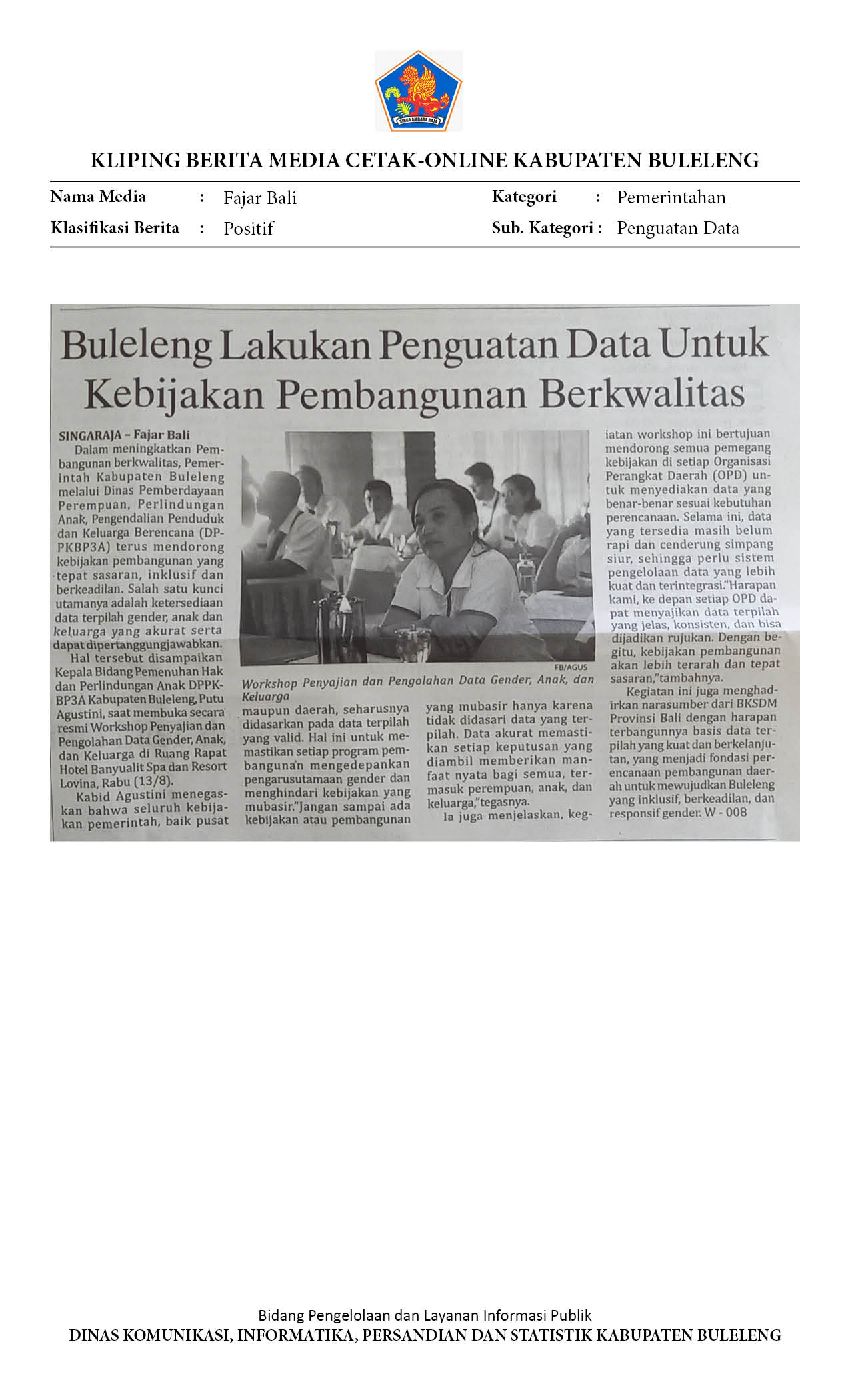 BULELENG LAKUKAN PENGUATAN DATA UNTUK KEBIJAKAN PEMBANGUNAN BERKUALITAS