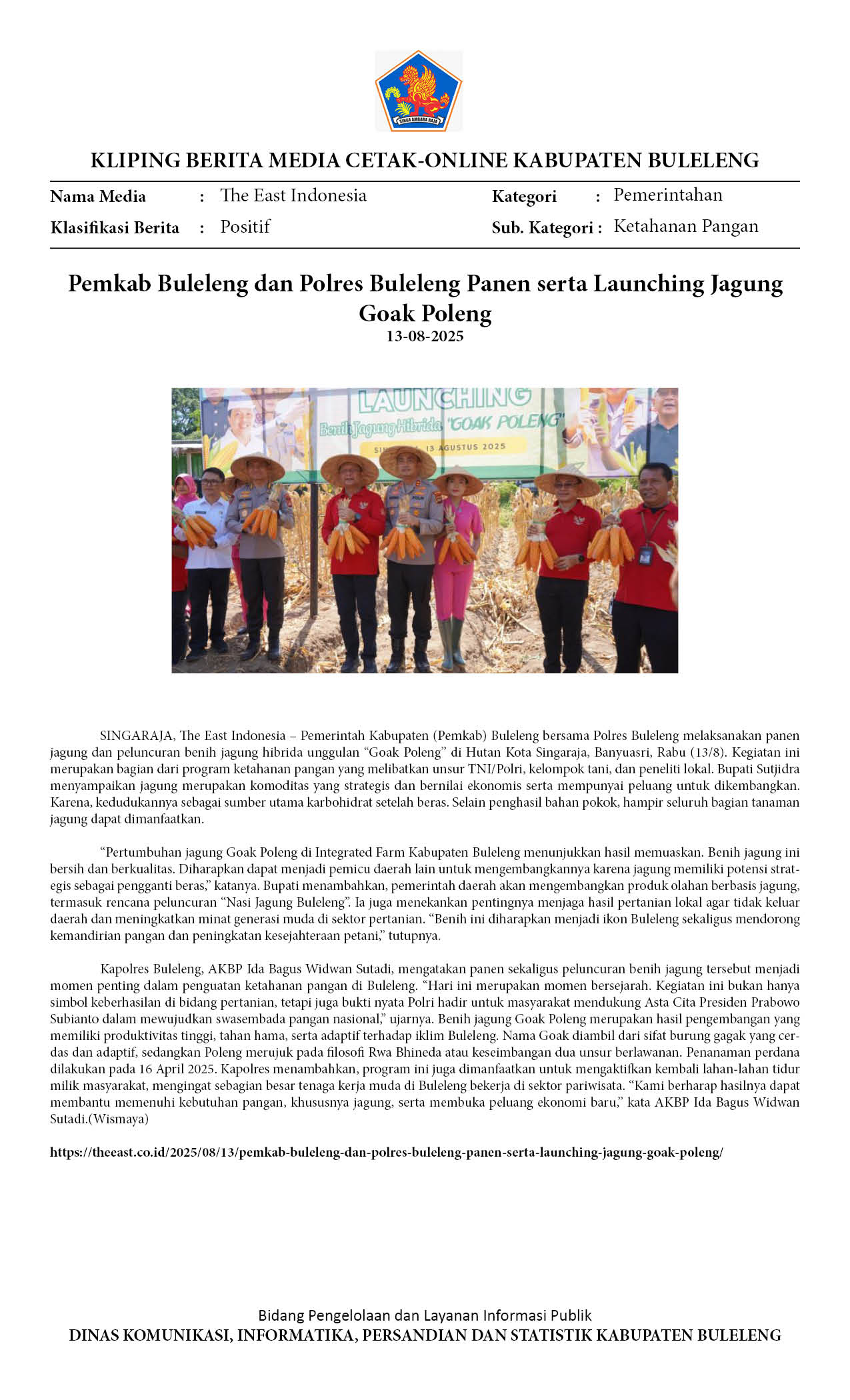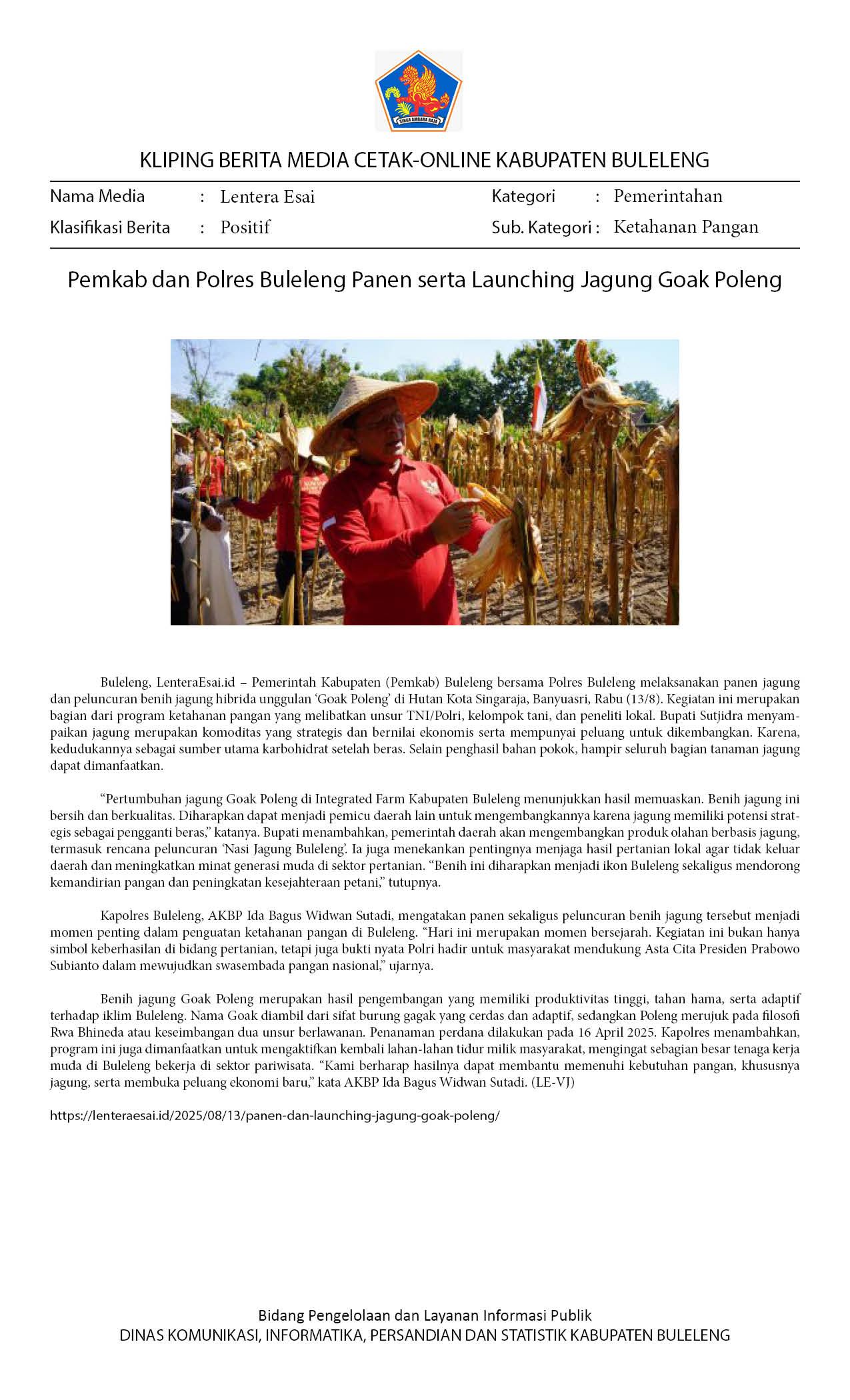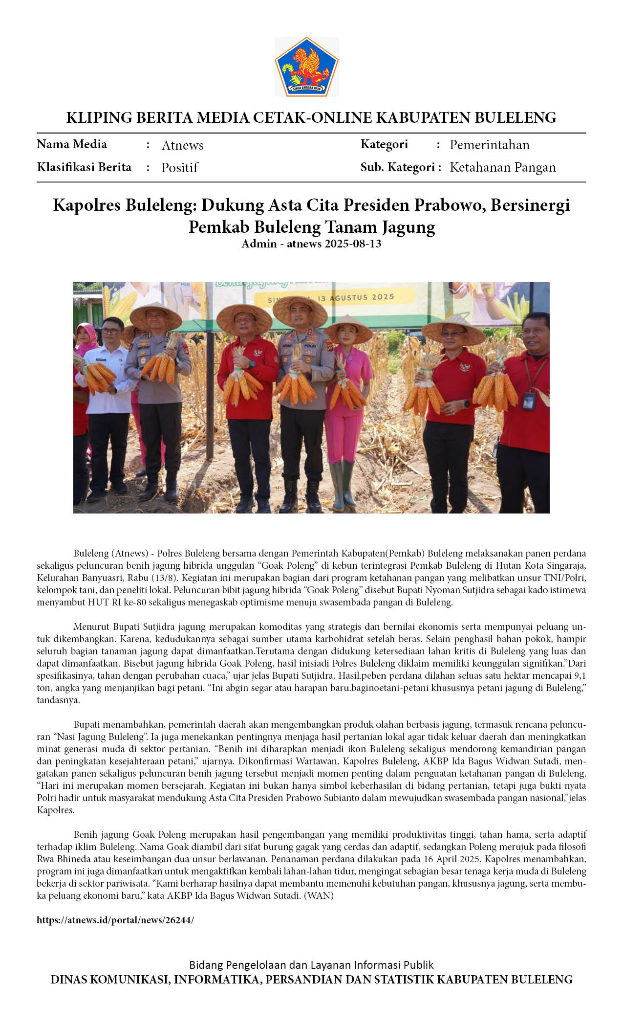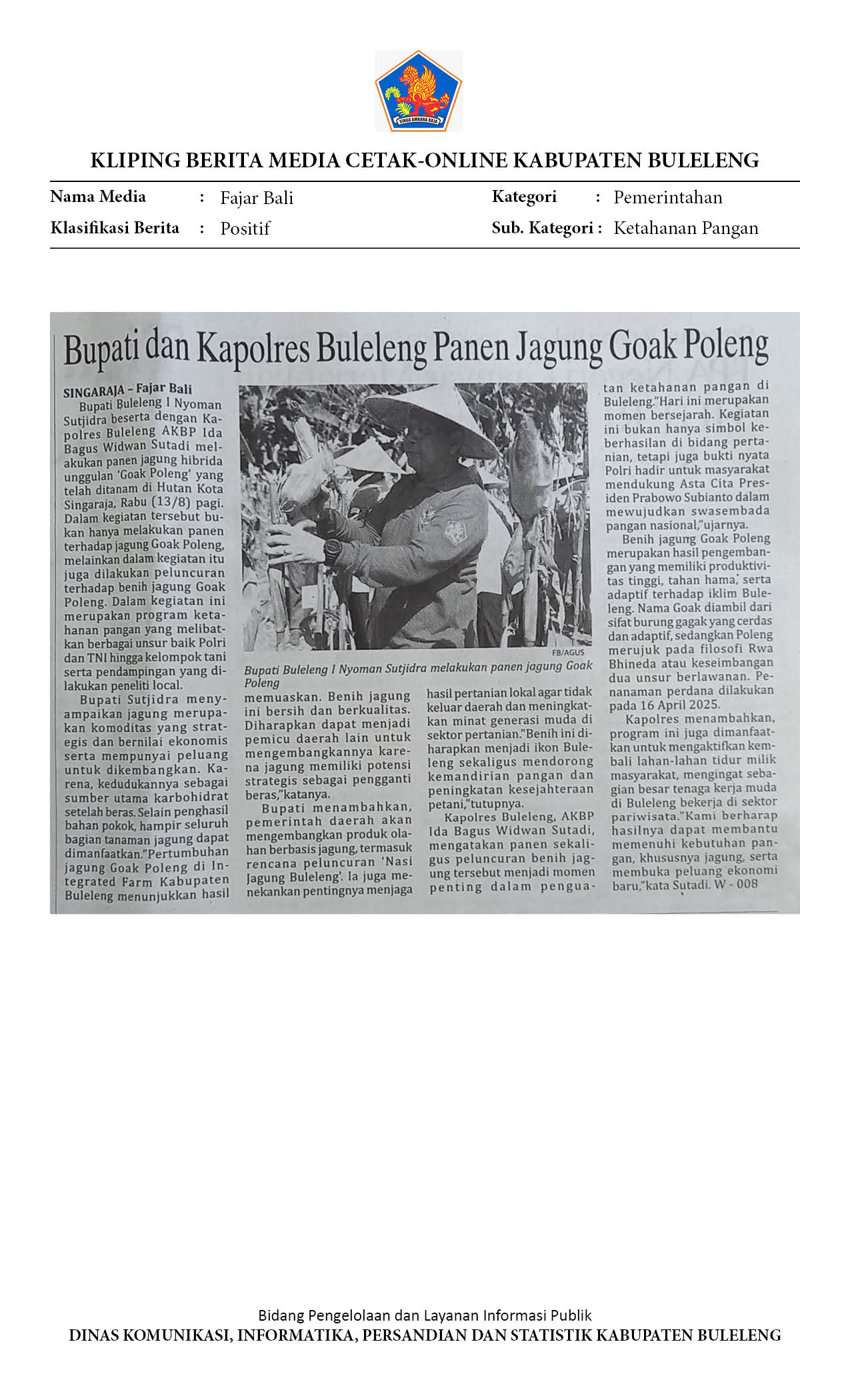 PEMKAB BULELENG DAN POLRES BULELENG PANEN SERTA LAUNCHING JAGUNG GOAK POLENG