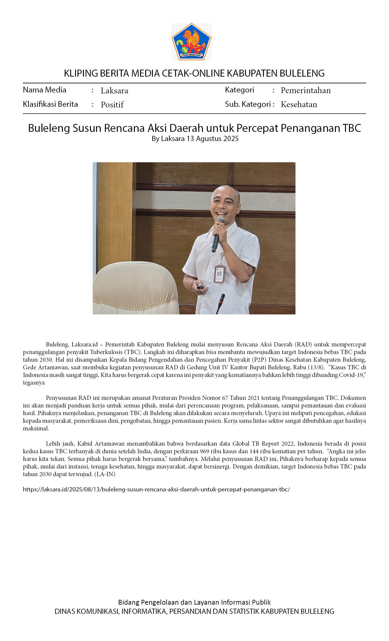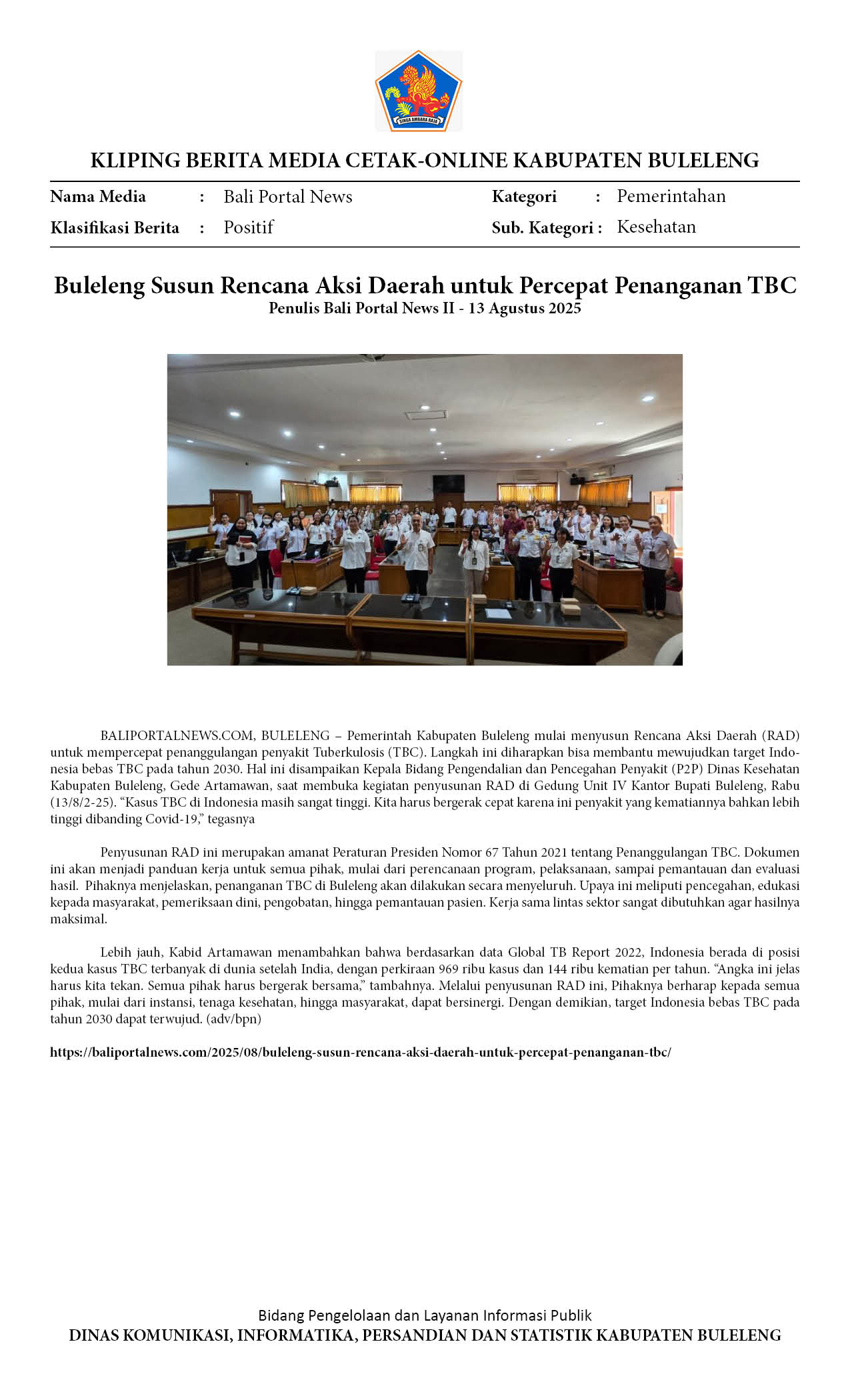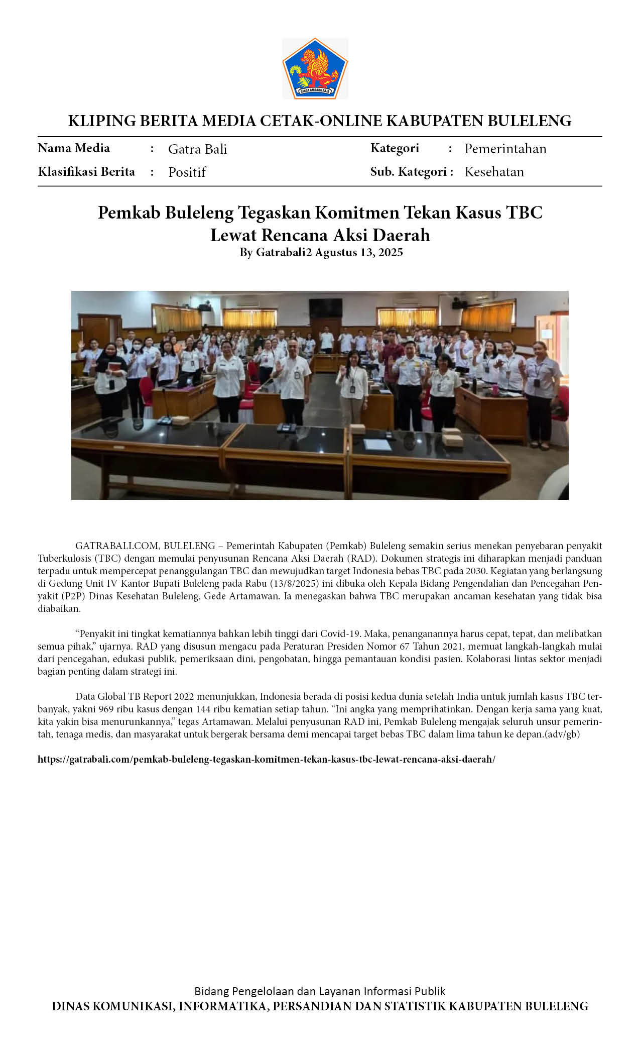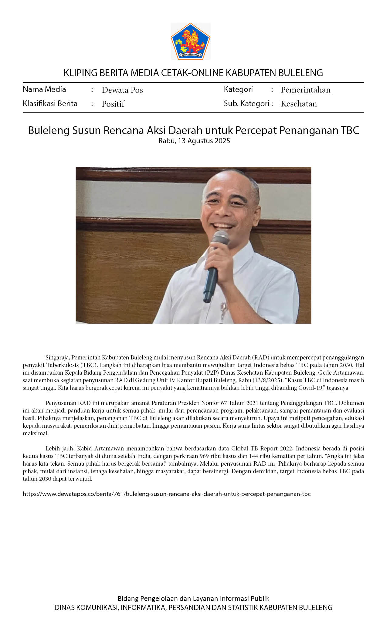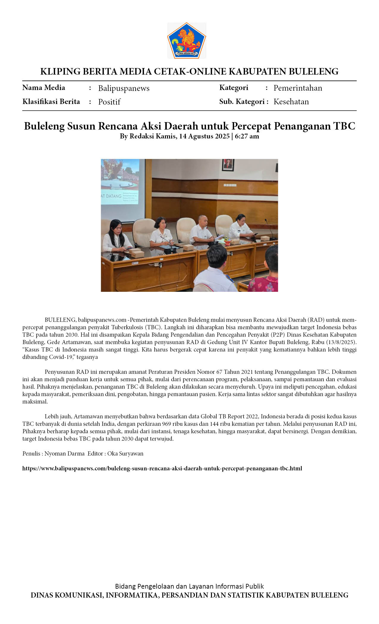 PEMKAB BULELENG TEGASKAN KOMITMEN TEKAN KASUS TBC LEWAT RENCANA AKSI DAERAH