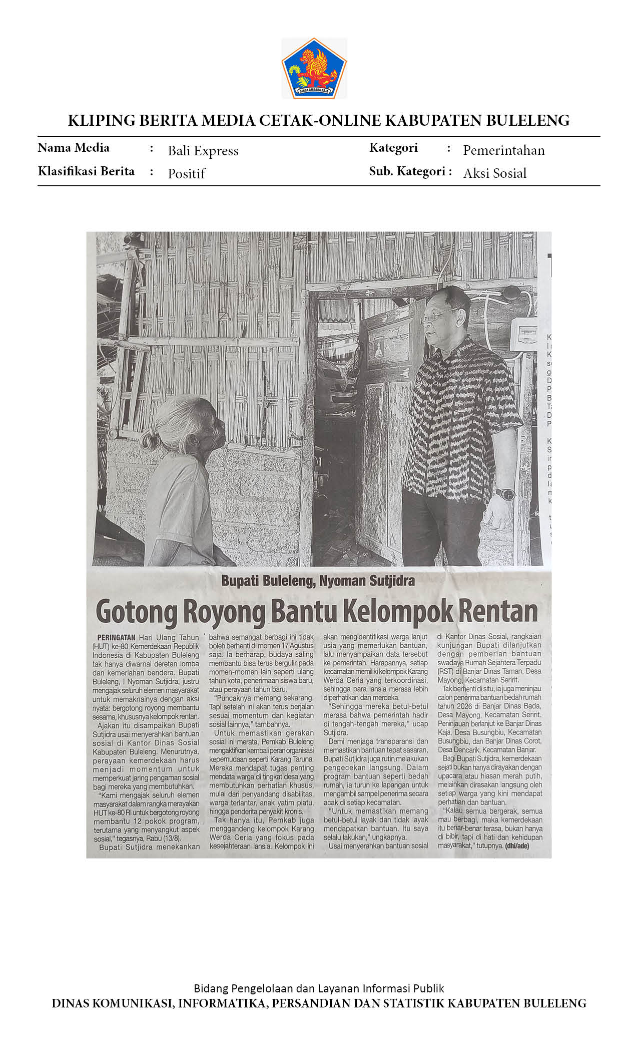 BUPATI BULELENG, NYOMAN SUTJIDRA GOTONG ROYONG BANTU KELOMPOK RENTAN