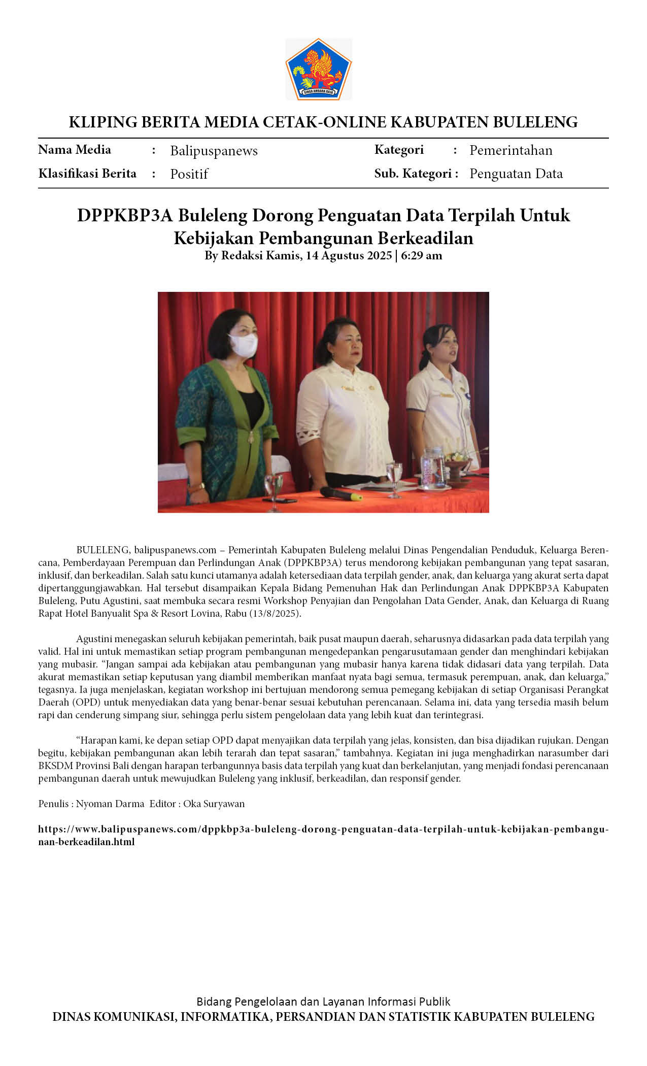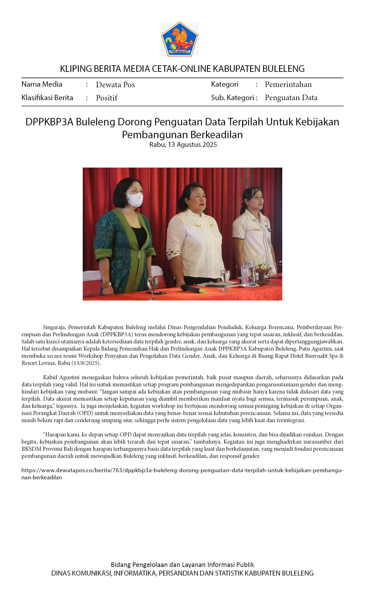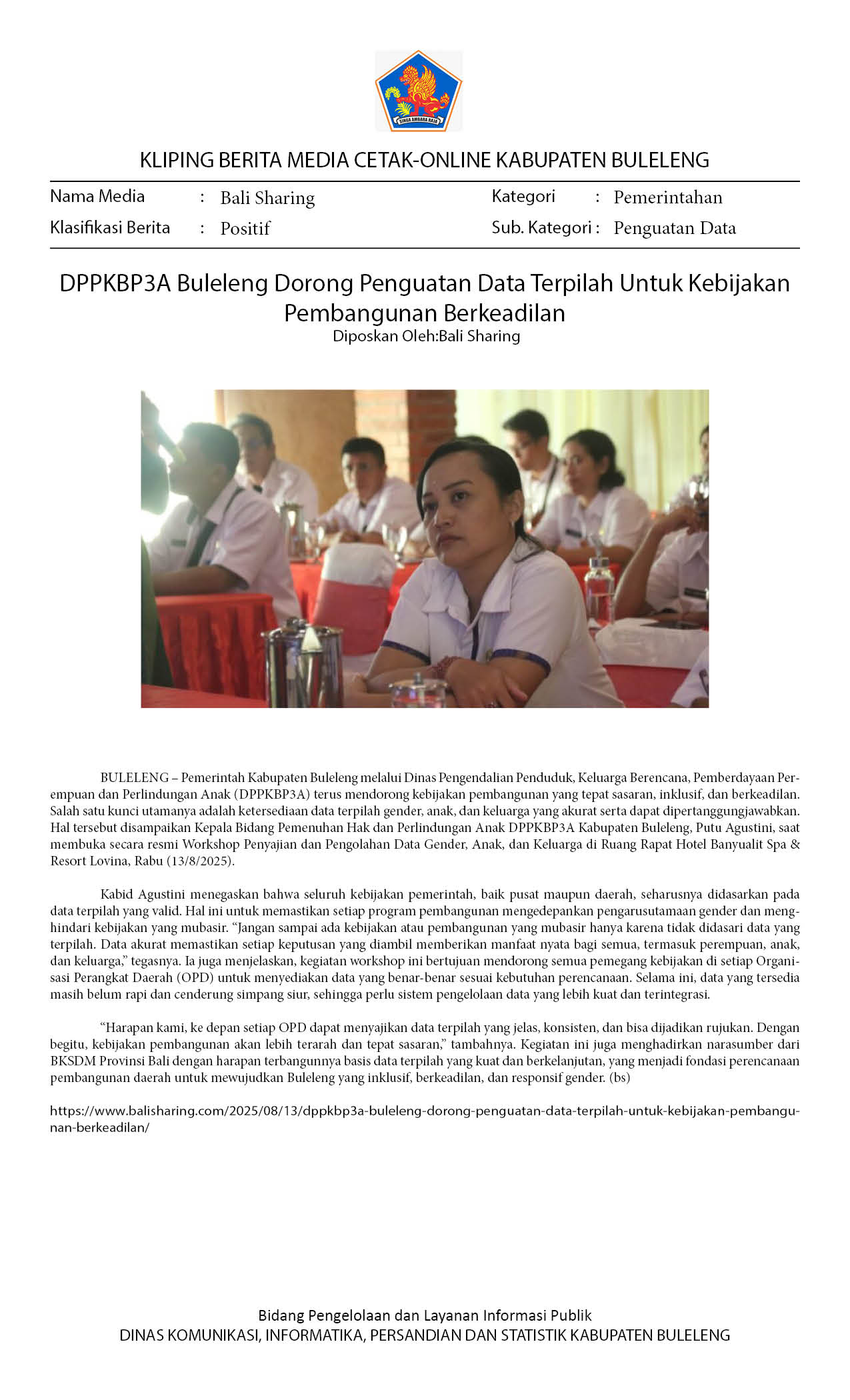 DPPKBP3A BULELENG DORONG PENGUATAN DATA TERPILAH UNTUK KEBIJAKAN PEMBANGUNAN BERKEADILAN