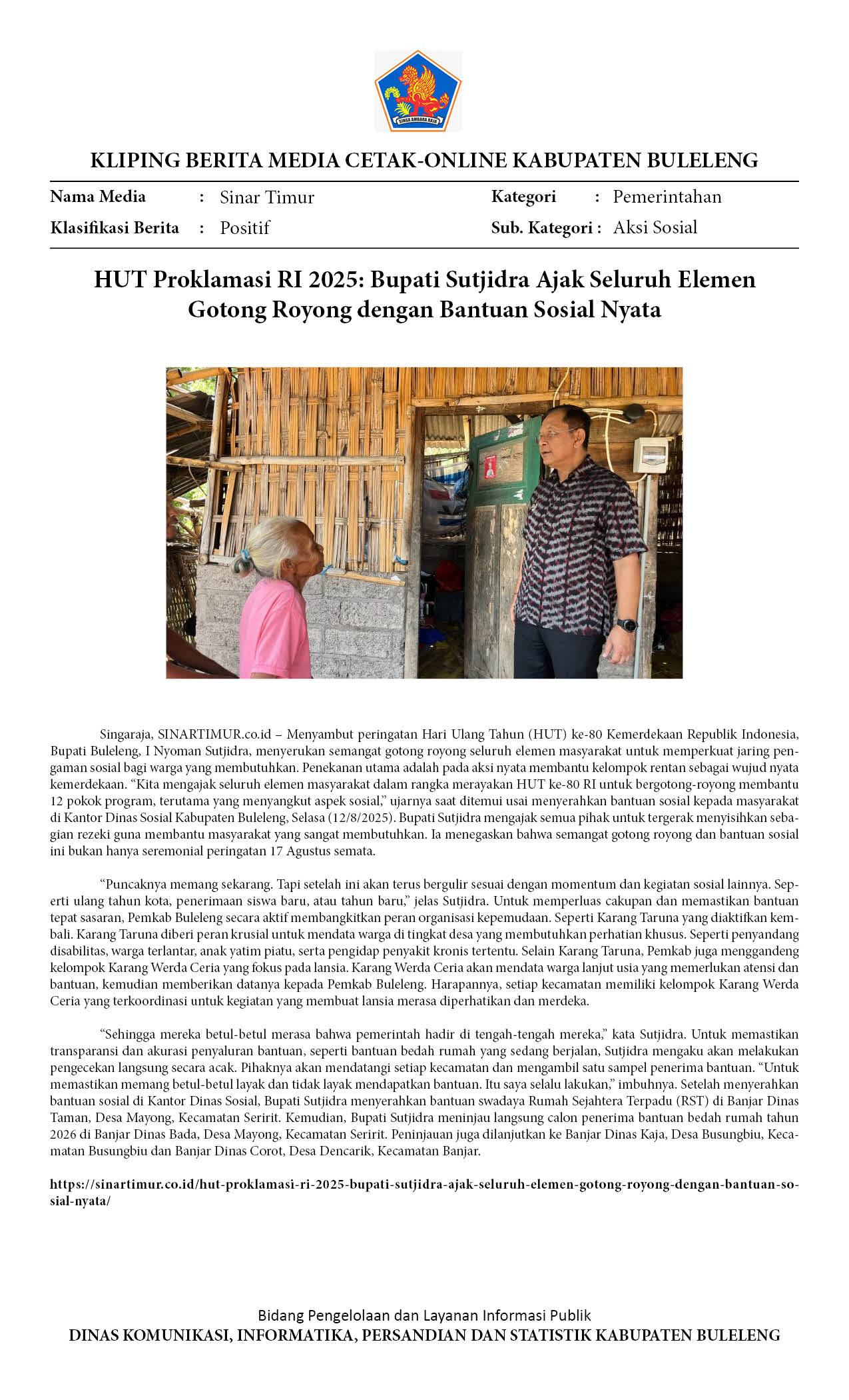 HUT PROKLAMASI RI 2025: BUPATI SUTJIDRA AJAK SELURUH ELEMEN GOTONG ROYONG DENGAN BANTUAN SOSIAL NYATA