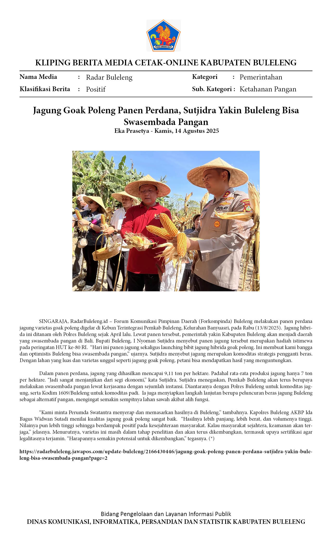 Kliping Kategori Pemerintahan Edisi 14 Agustus 2025