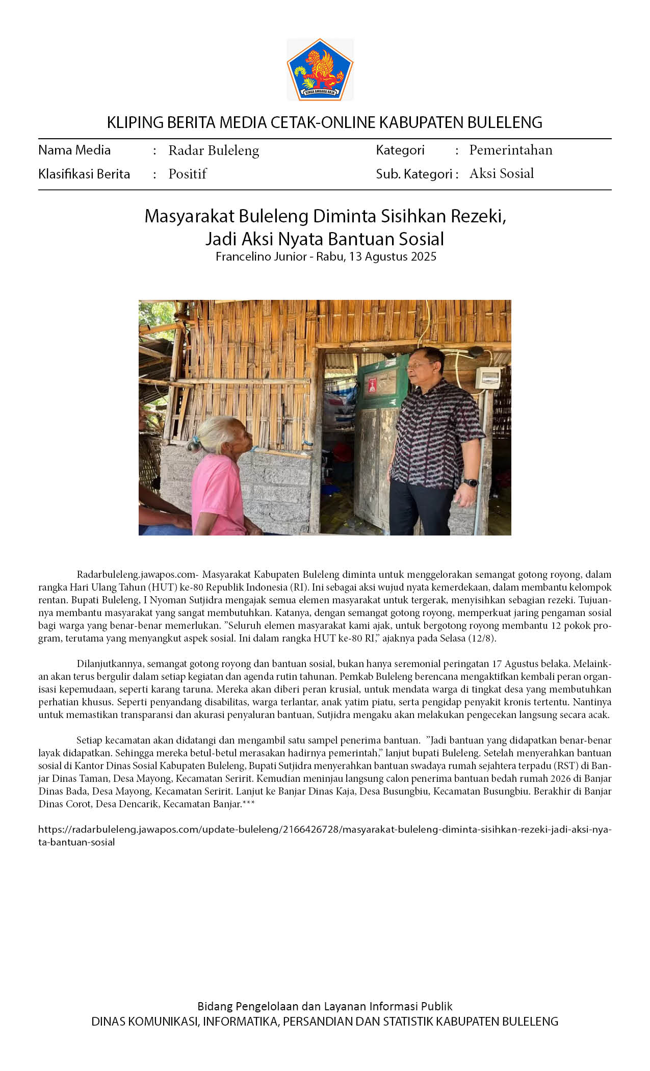 MASYARAKAT BULELENG DIMINTA SISIHKAN REZEKI, JADI AKSI NYATA BANTUAN SOSIAL