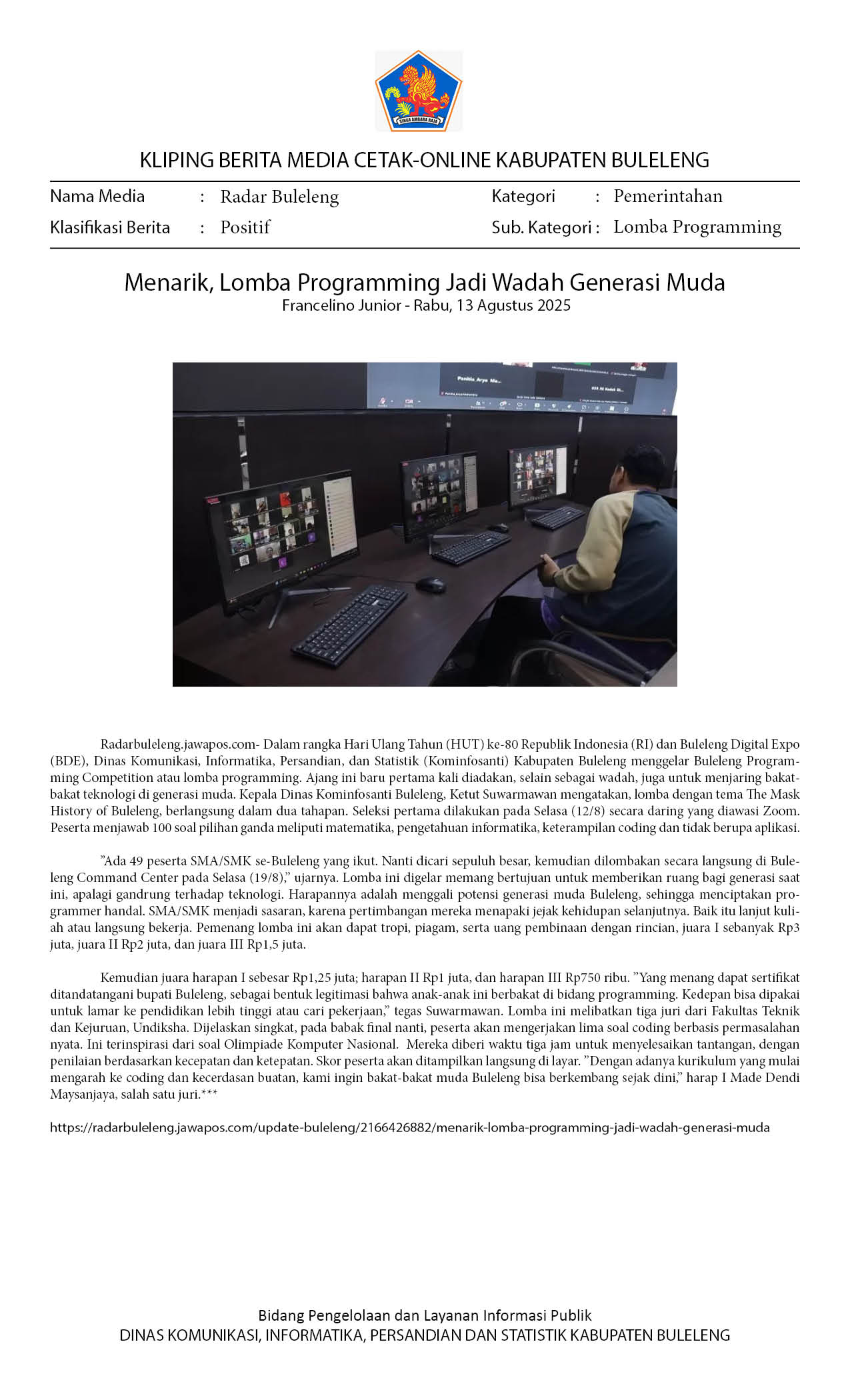 MENARIK, LOMBA PROGRAMMING JADI WADAH GENERASI MUDA