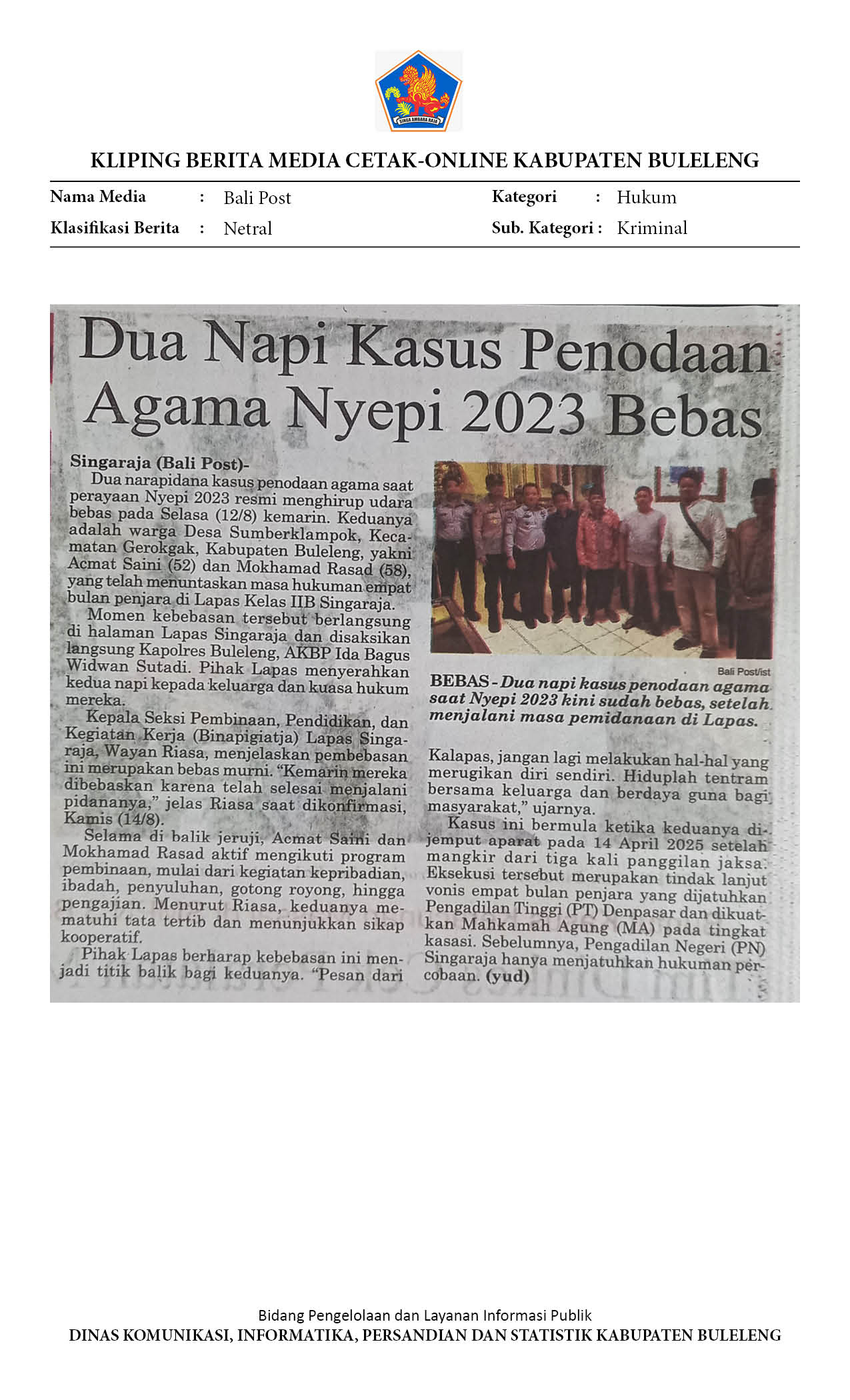 DUA NAPI KASUS PENODAAN AGAMA NYEPI 2023 BEBAS