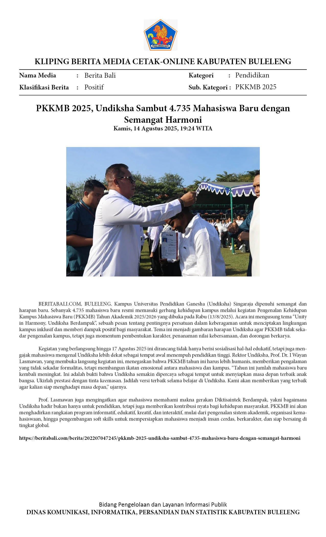 PKKMB 2025, UNDIKSHA SAMBUT 4.735 MAHASISWA BARU DENGAN SEMANGAT HARMONI