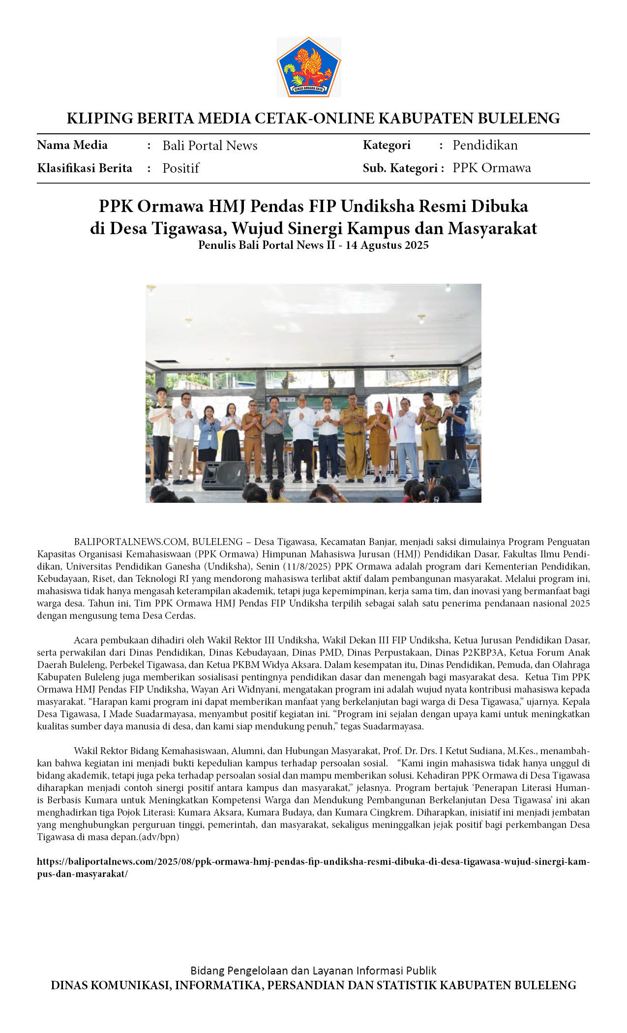 PPK ORMAWA HMJ PENDAS FIP UNDIKSHA RESMI DIBUKA DI DESA TIGAWASA, WUJUD SINERGI KAMPUS DAN MASYARAKAT