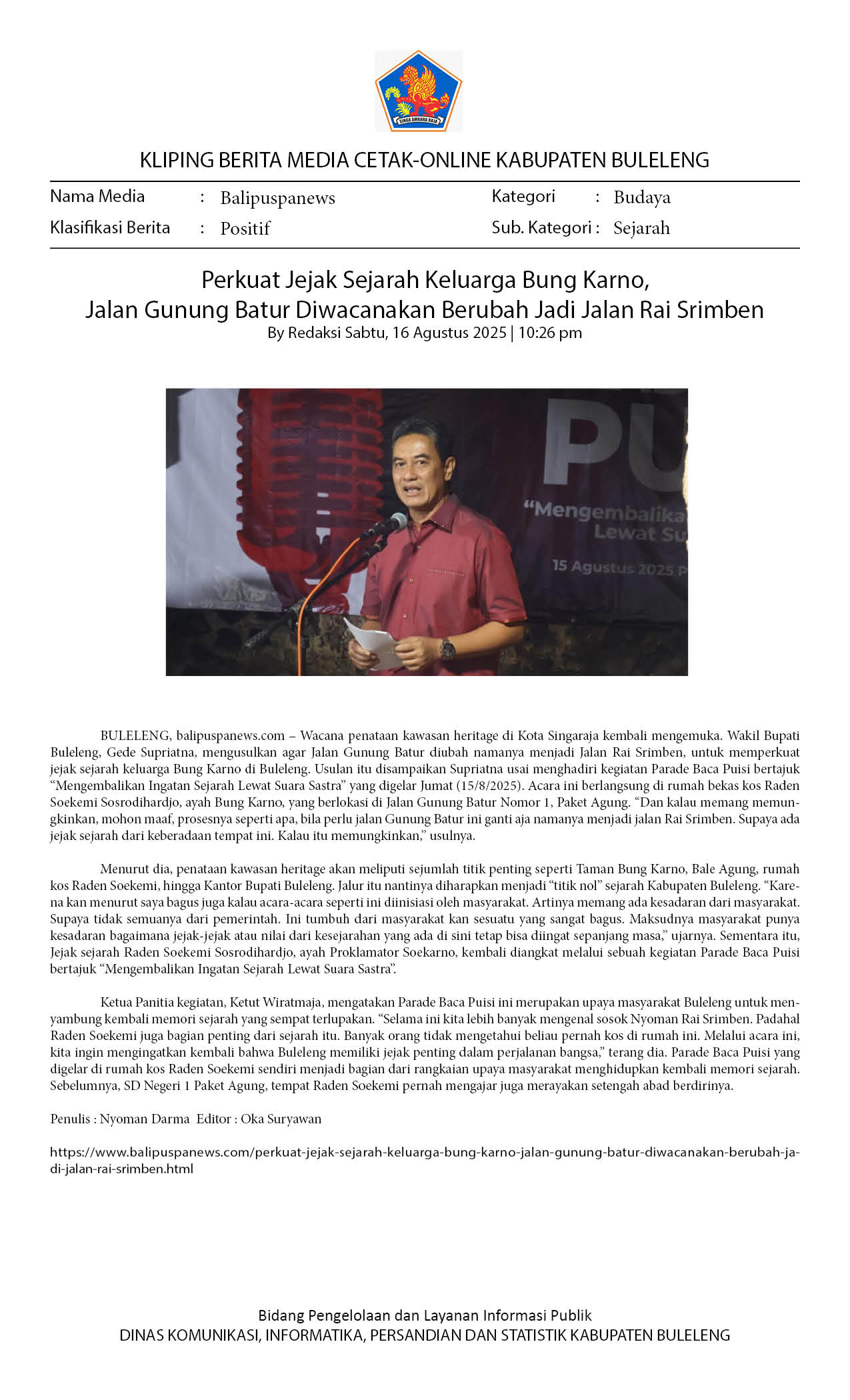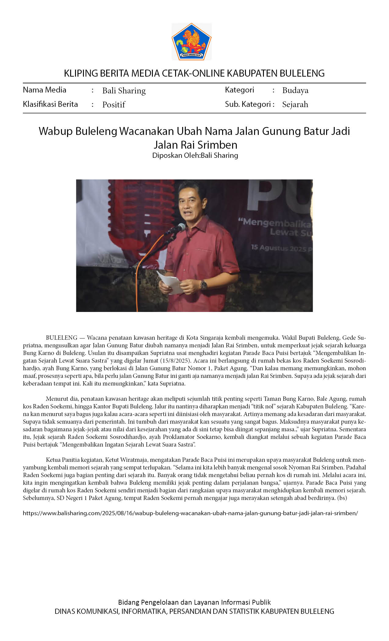 WABUP BULELENG WACANAKAN UBAH NAMA JALAN GUNUNG BATUR JADI JALAN RAI SRIMBEN