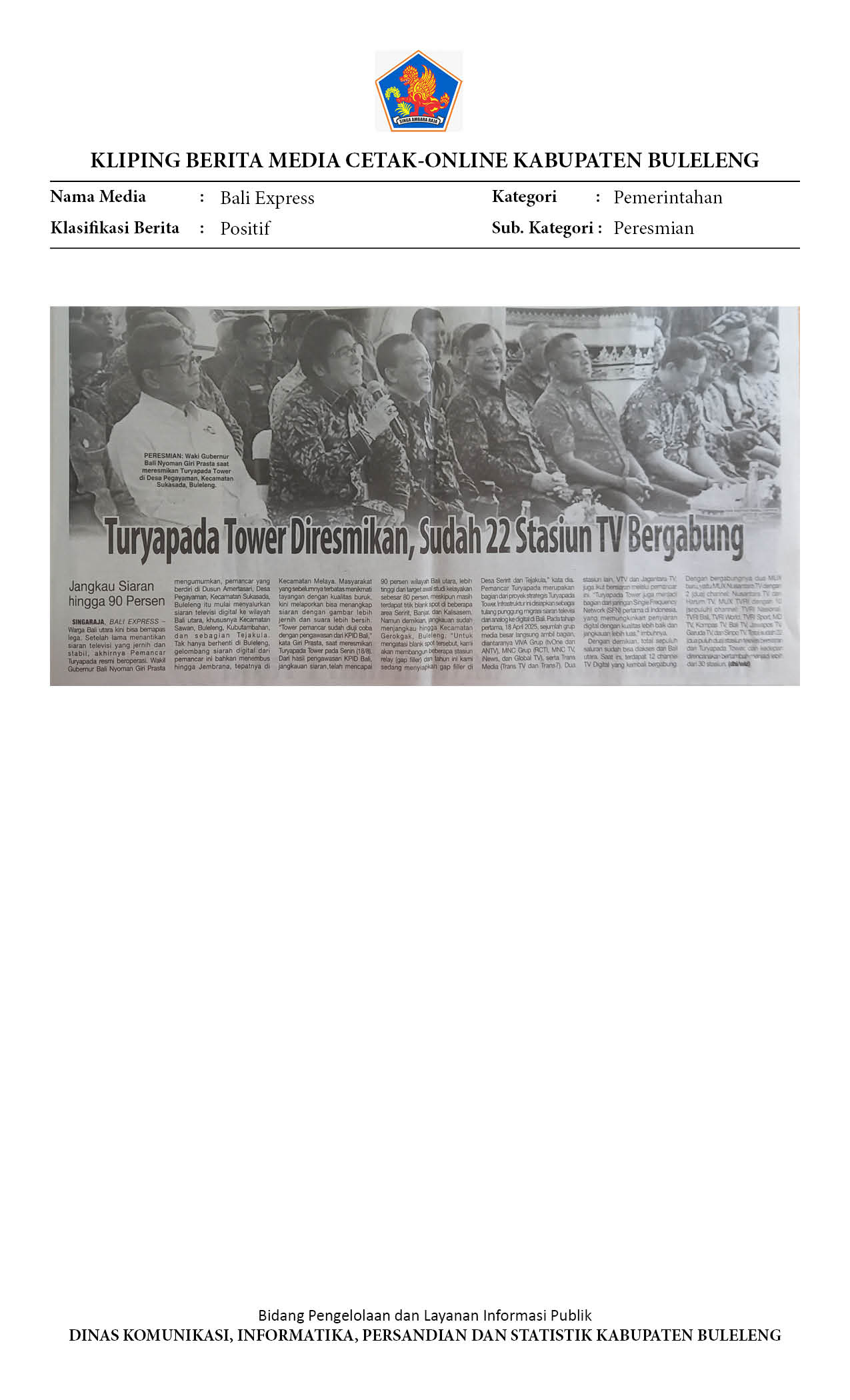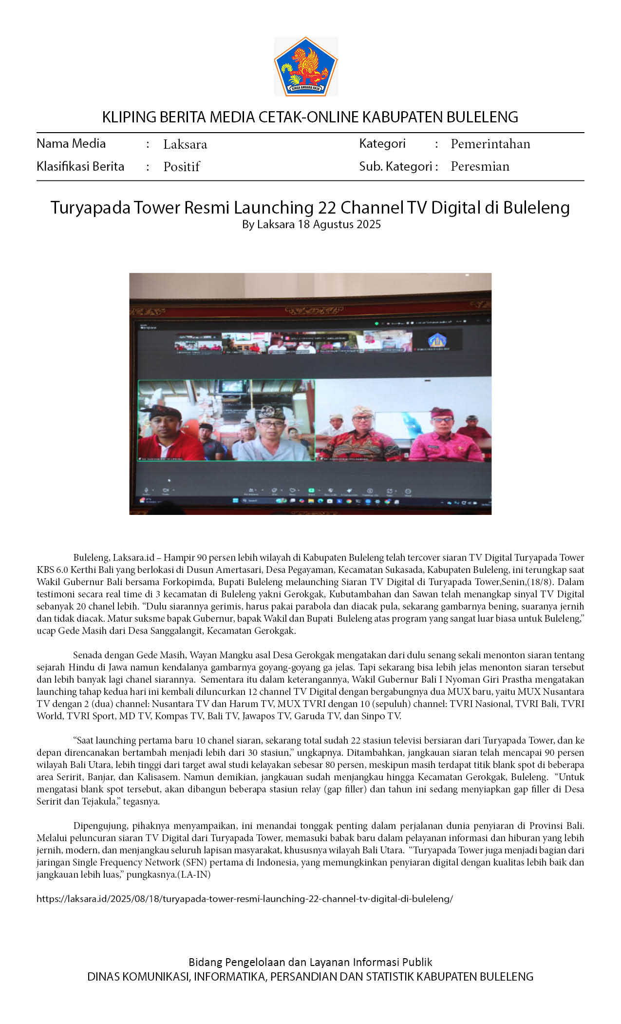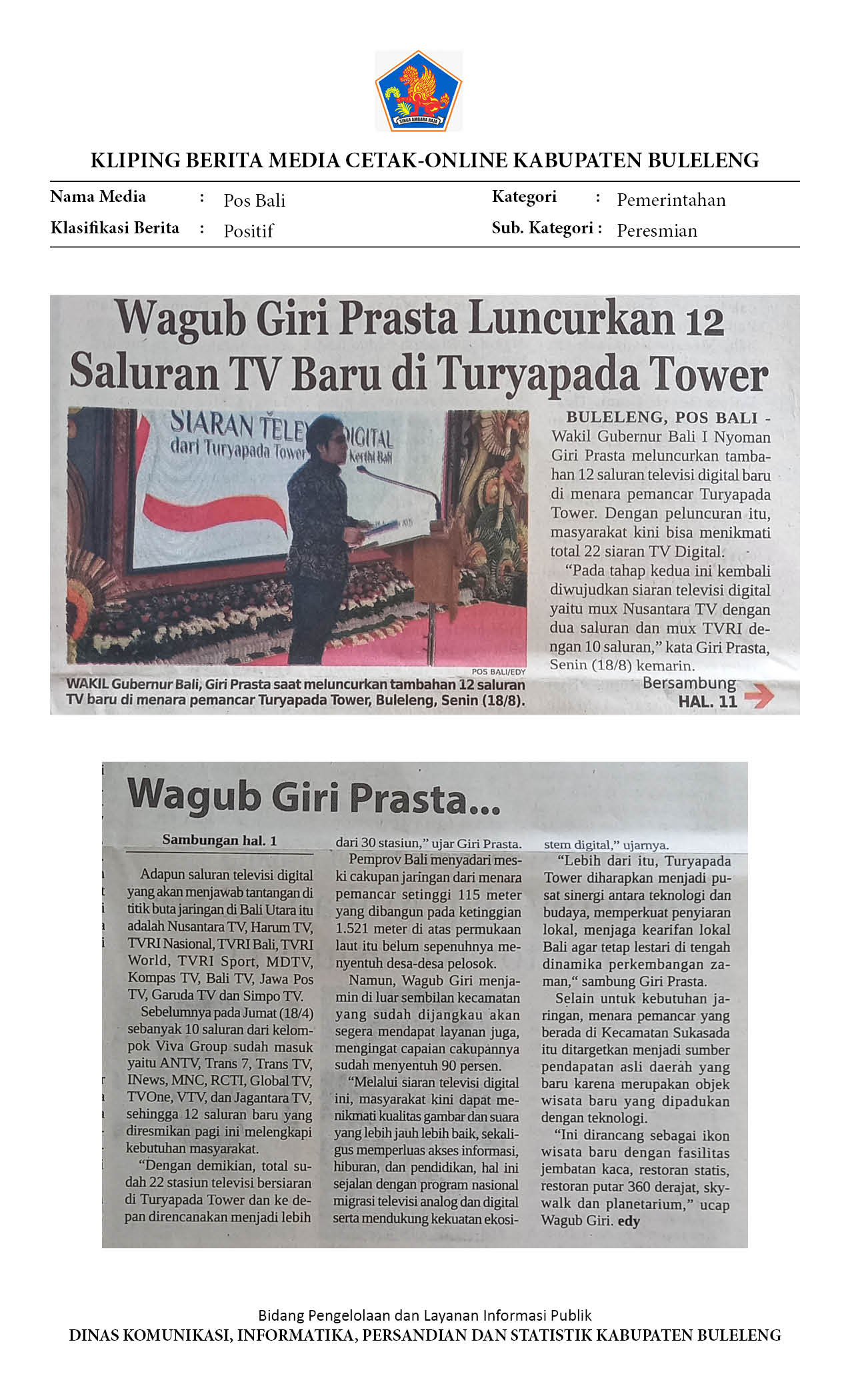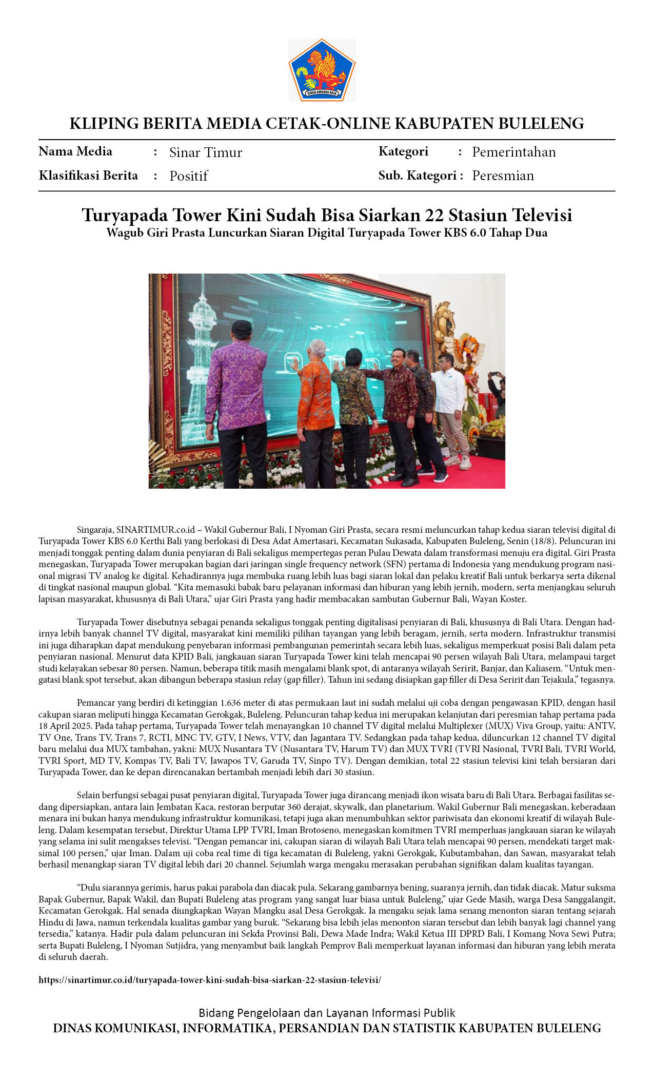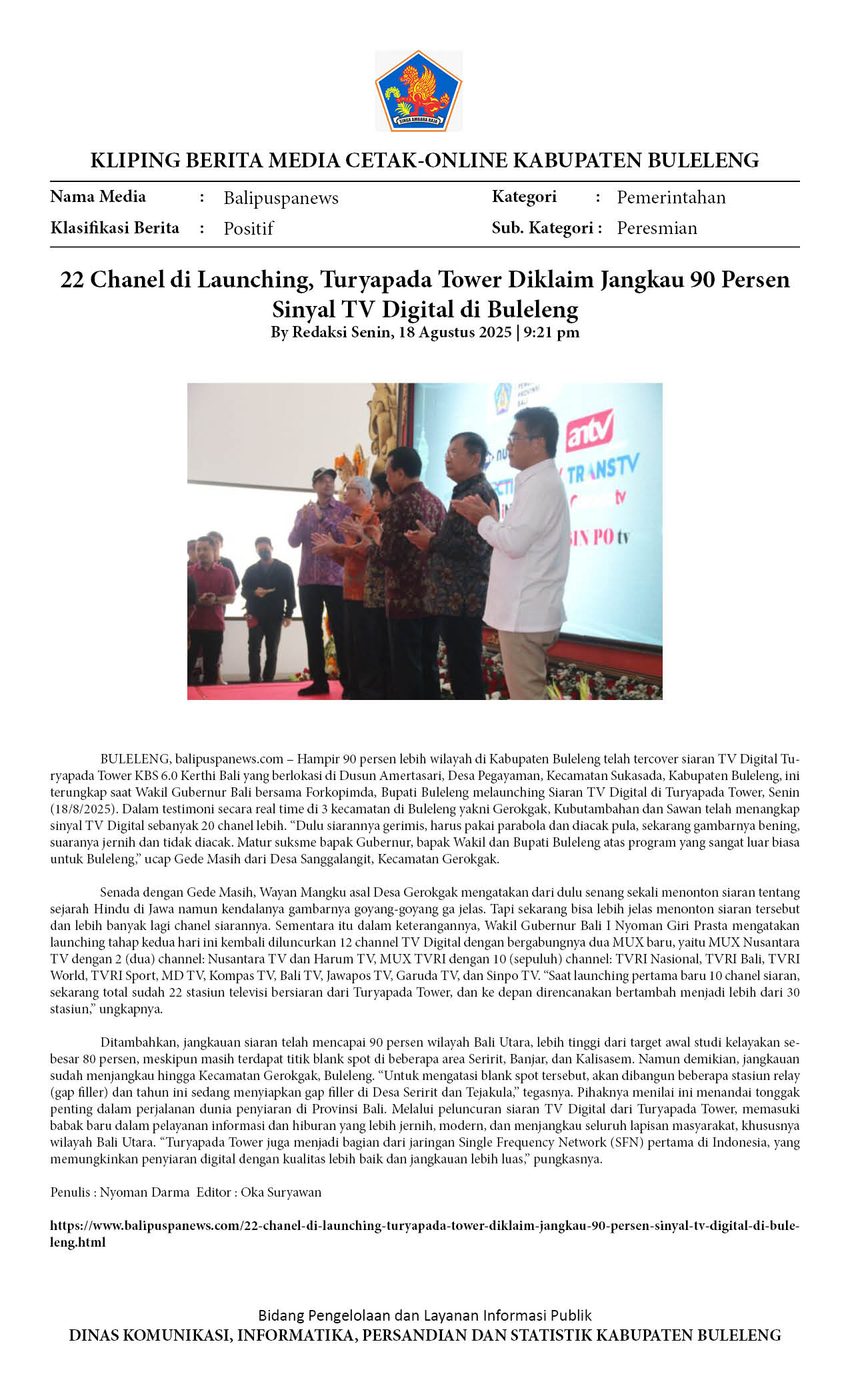 TURYAPADA TOWER RESMI LAUNCHING 22 CHANNEL TV DIGITAL DI BULELENG