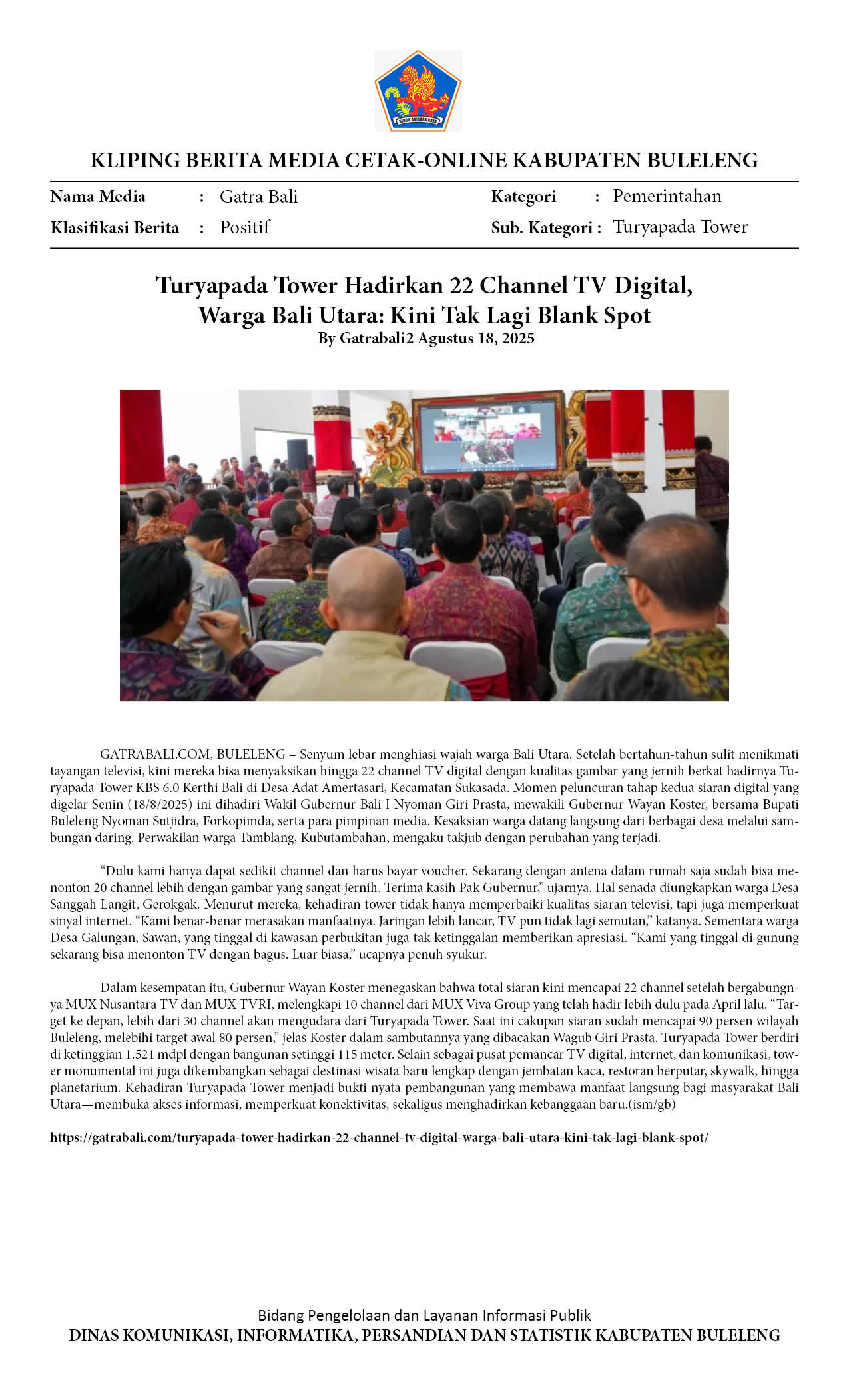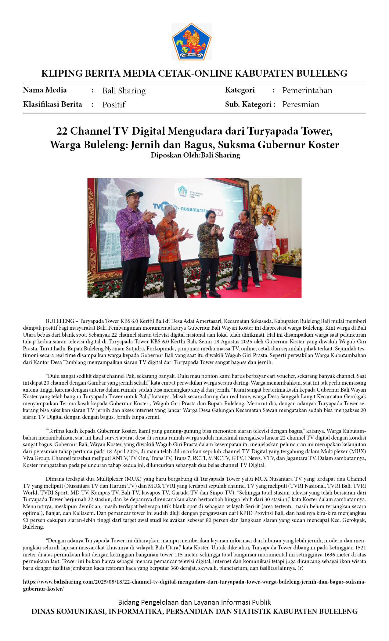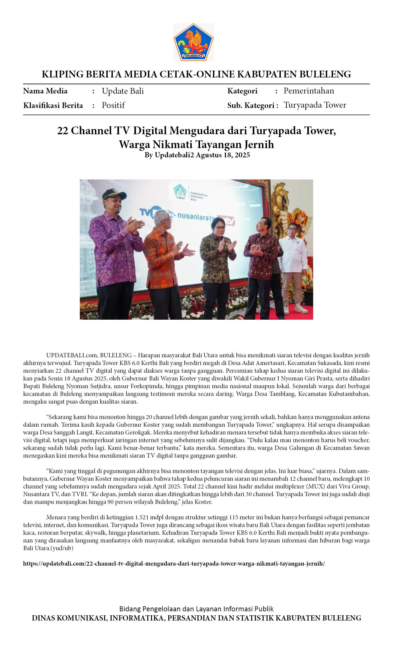 22 CHANNEL TV DIGITAL MENGUDARA DARI TURYAPADA TOWER, WARGA BULELENG: JERNIH DAN BAGUS, SUKSMA GUBERNUR KOSTER