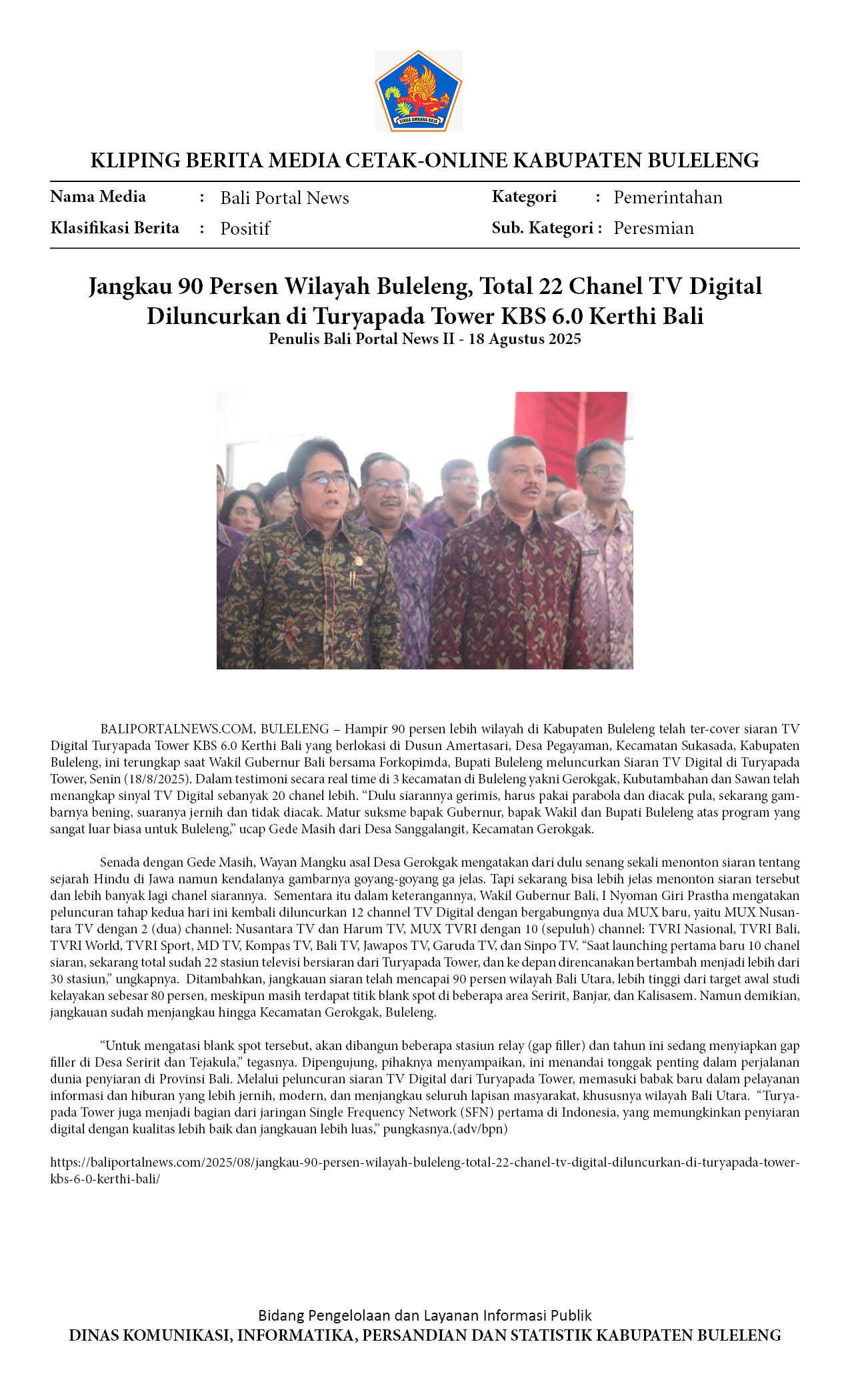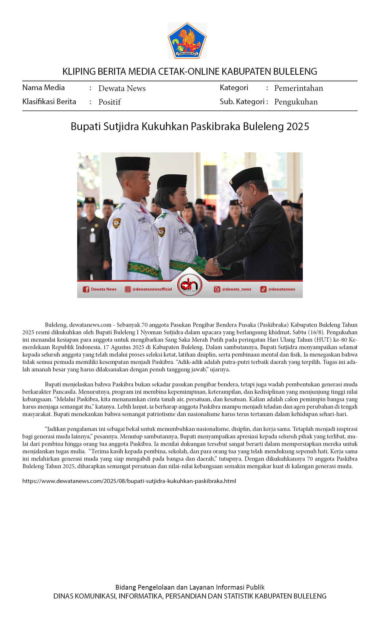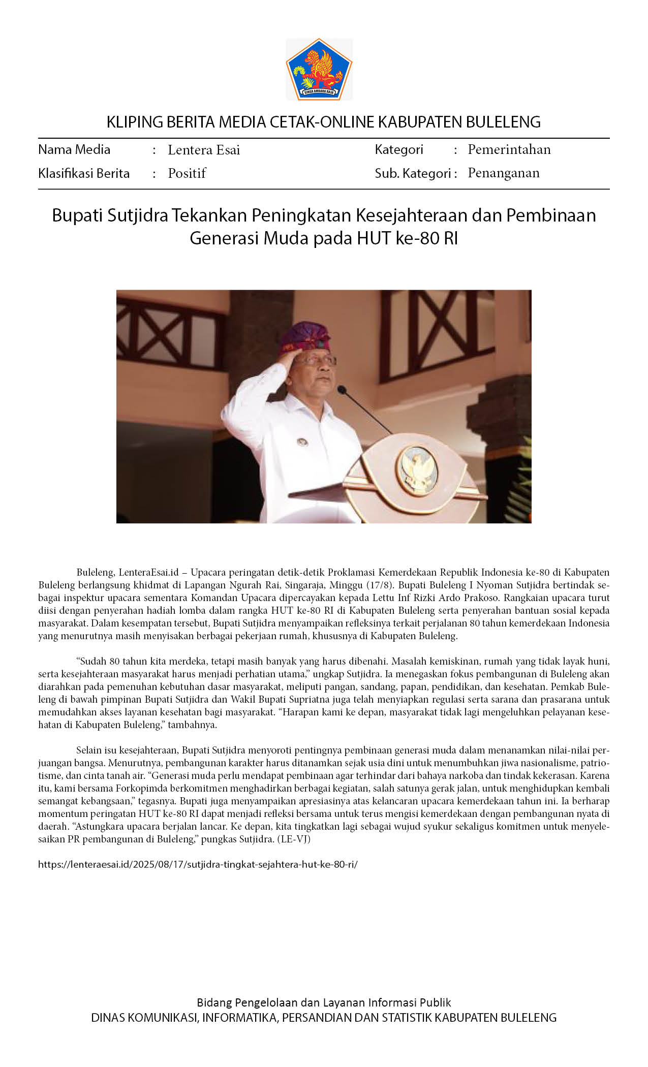Kliping Kategori Pemerintahan Edisi 19 Agustus 2025