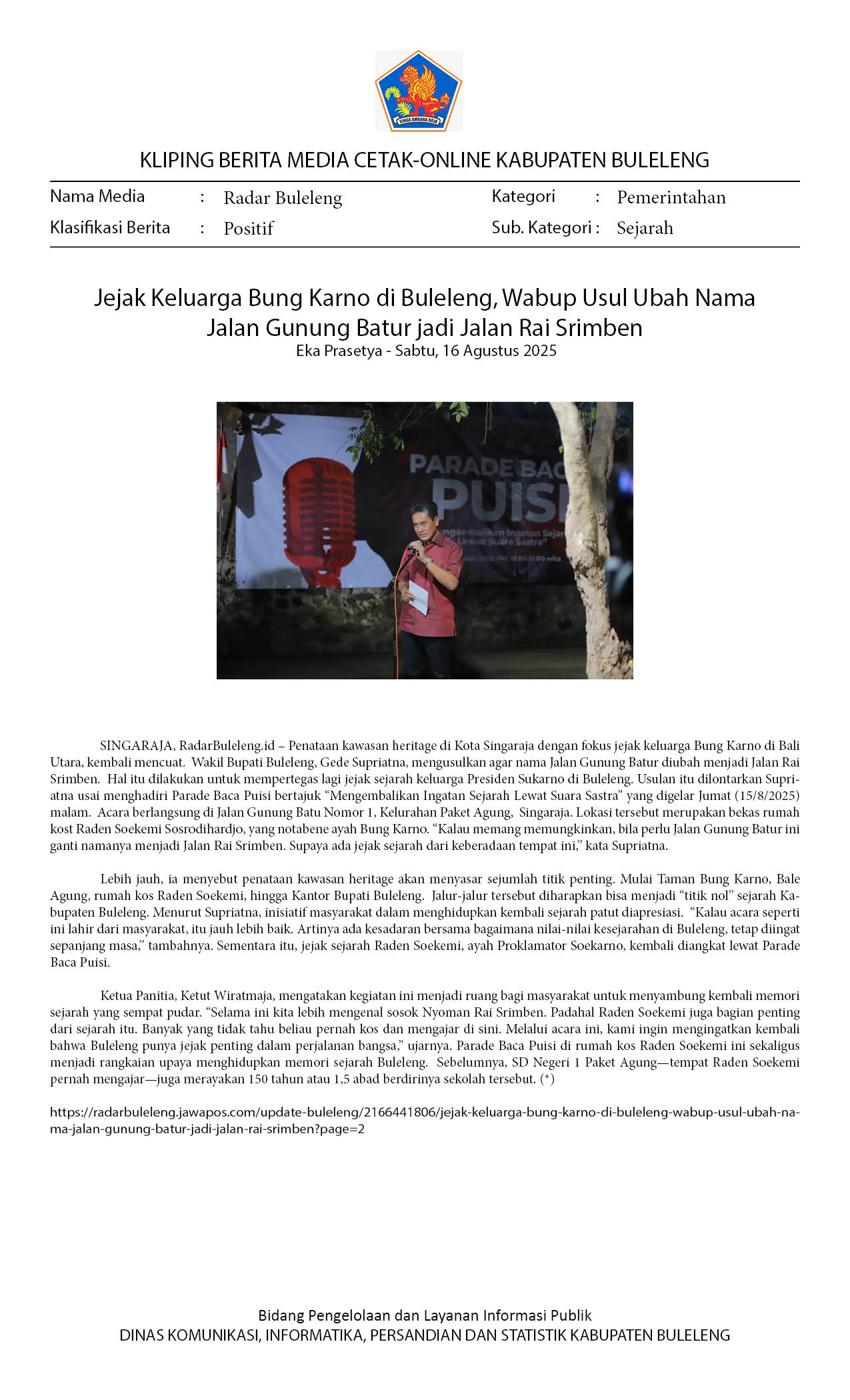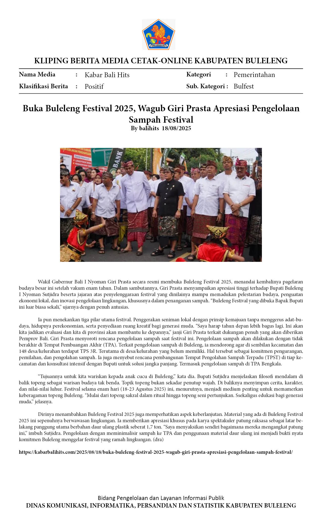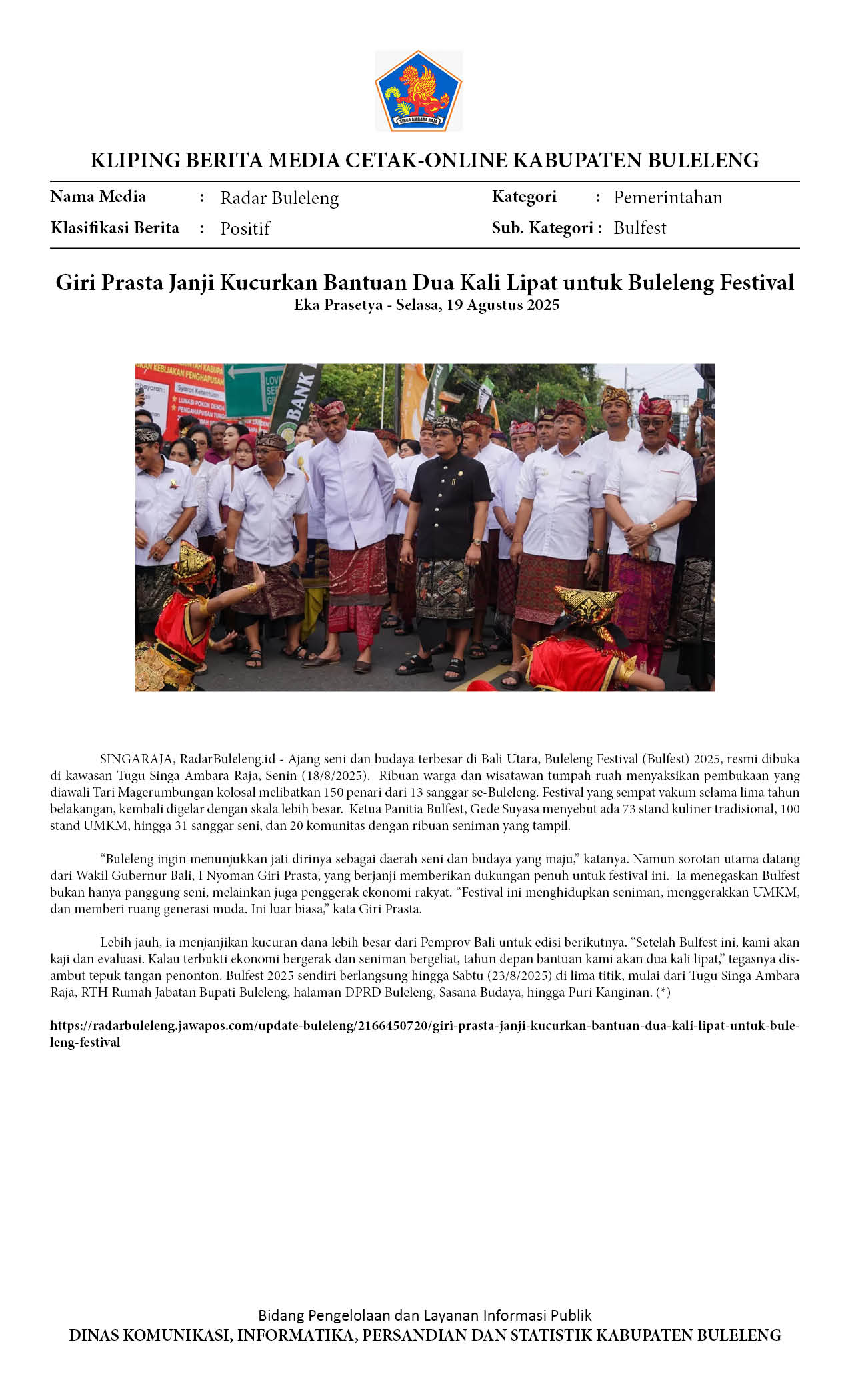 Kliping Kategori Pemerintahan Edisi 19 Agustus 2025