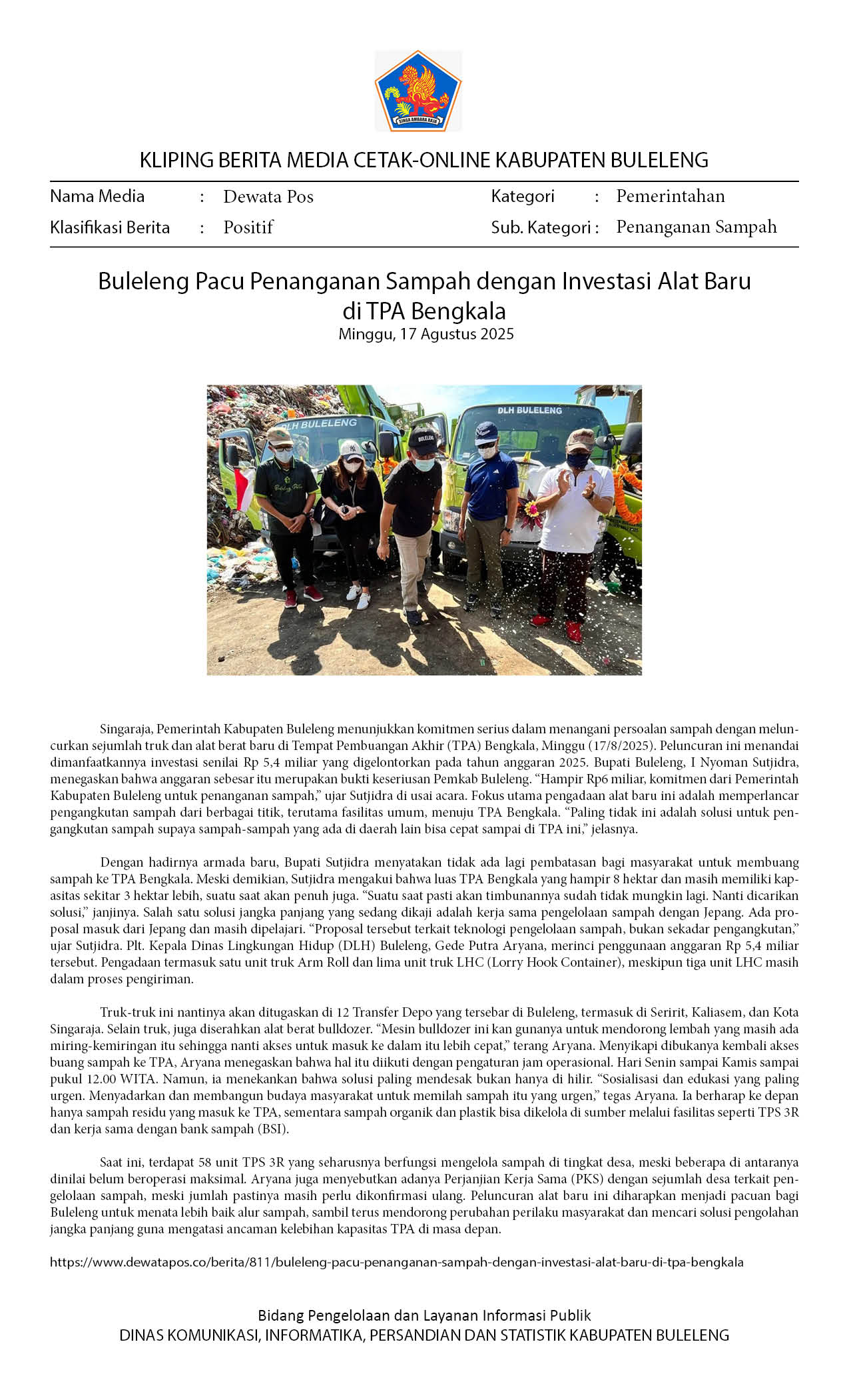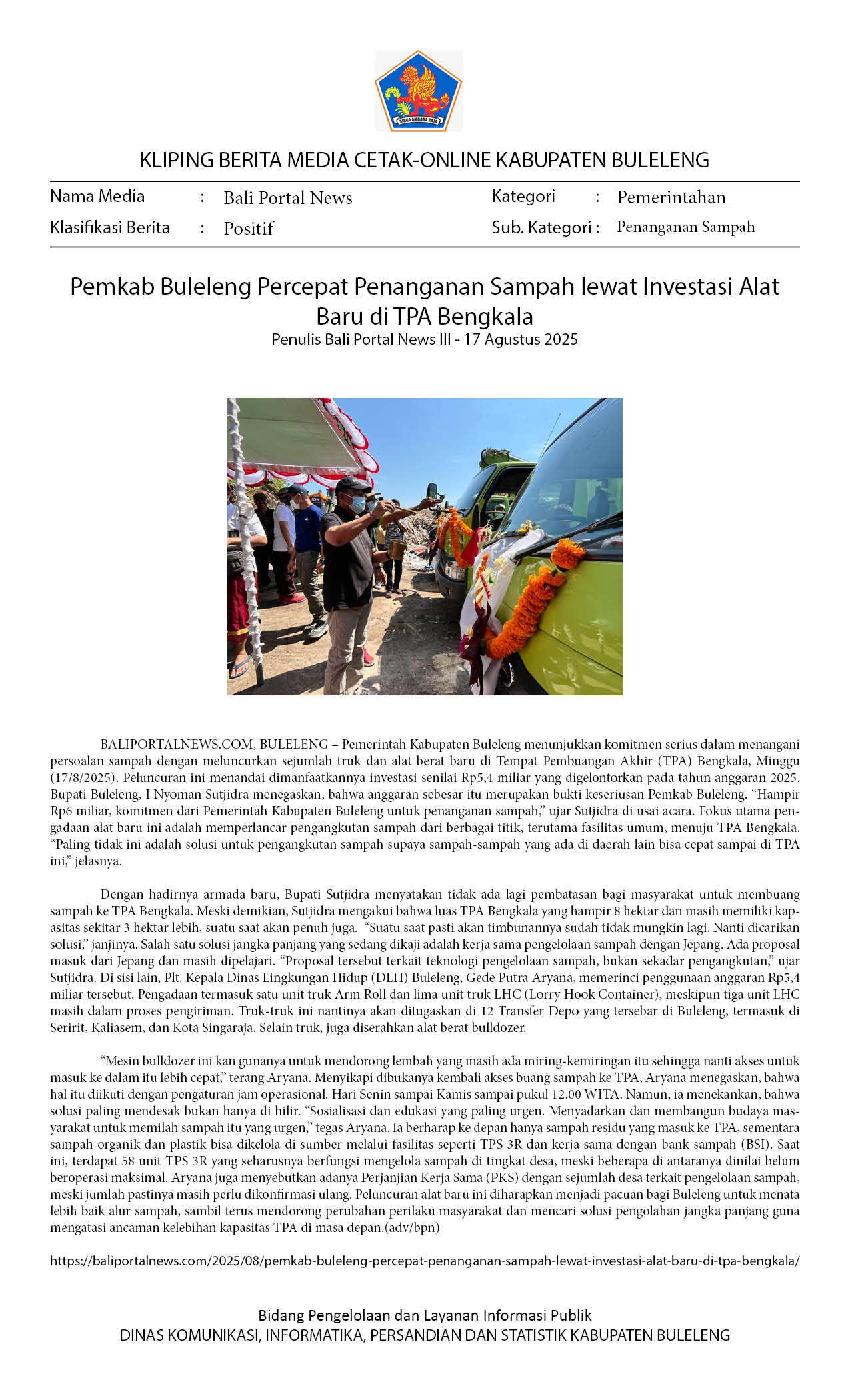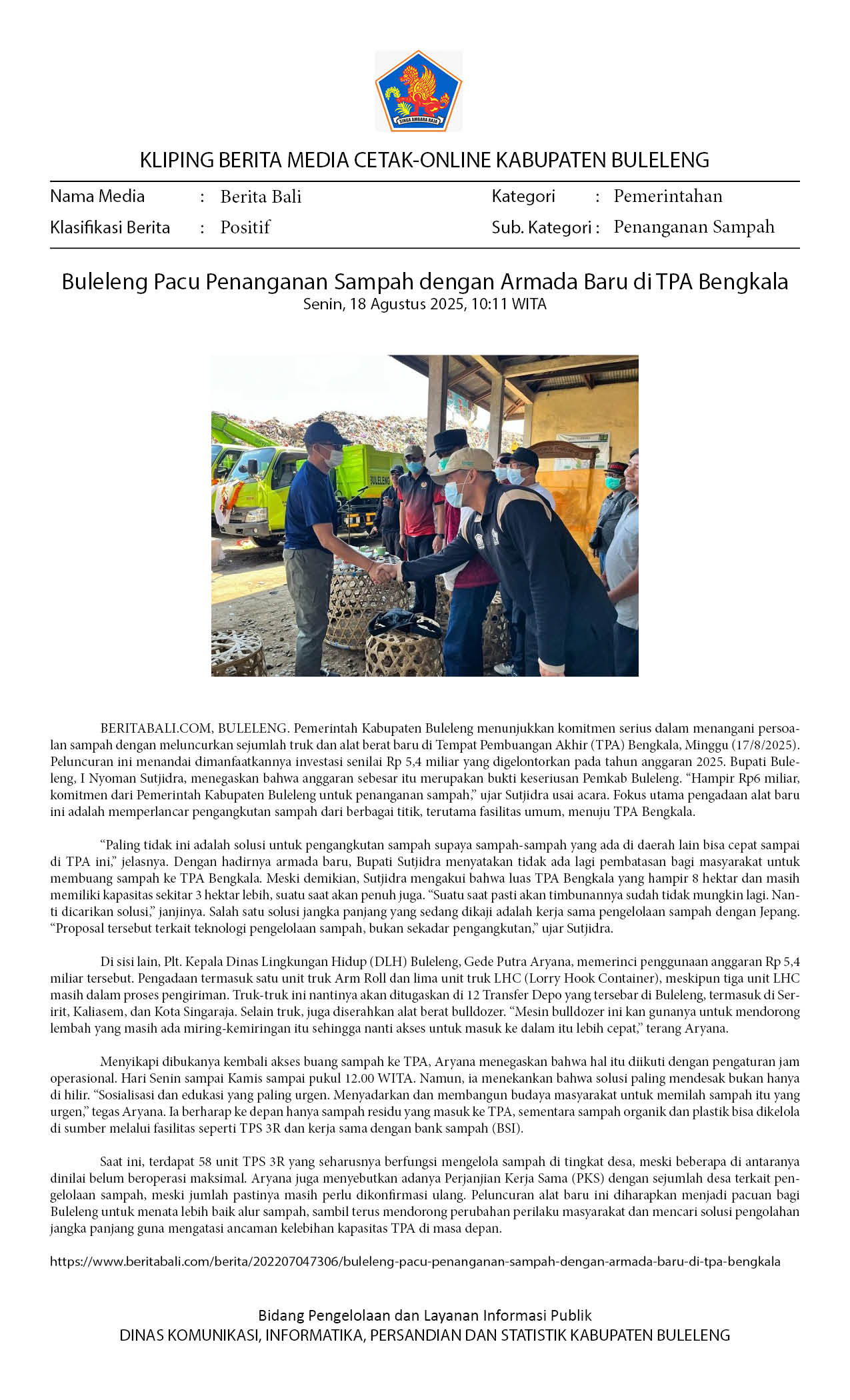 BULELENG PACU PENANGANAN SAMPAH DENGAN ARMADA BARU DI TPA BENGKALA