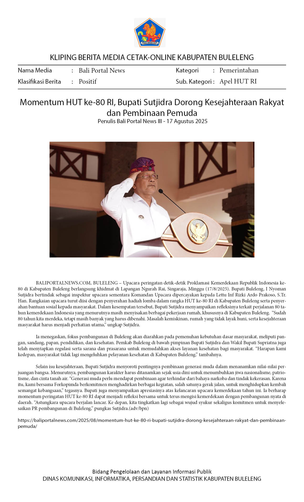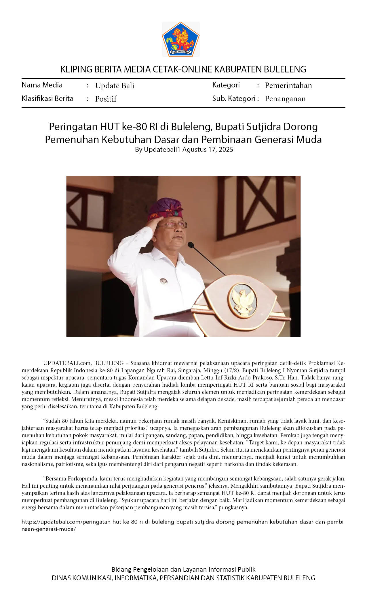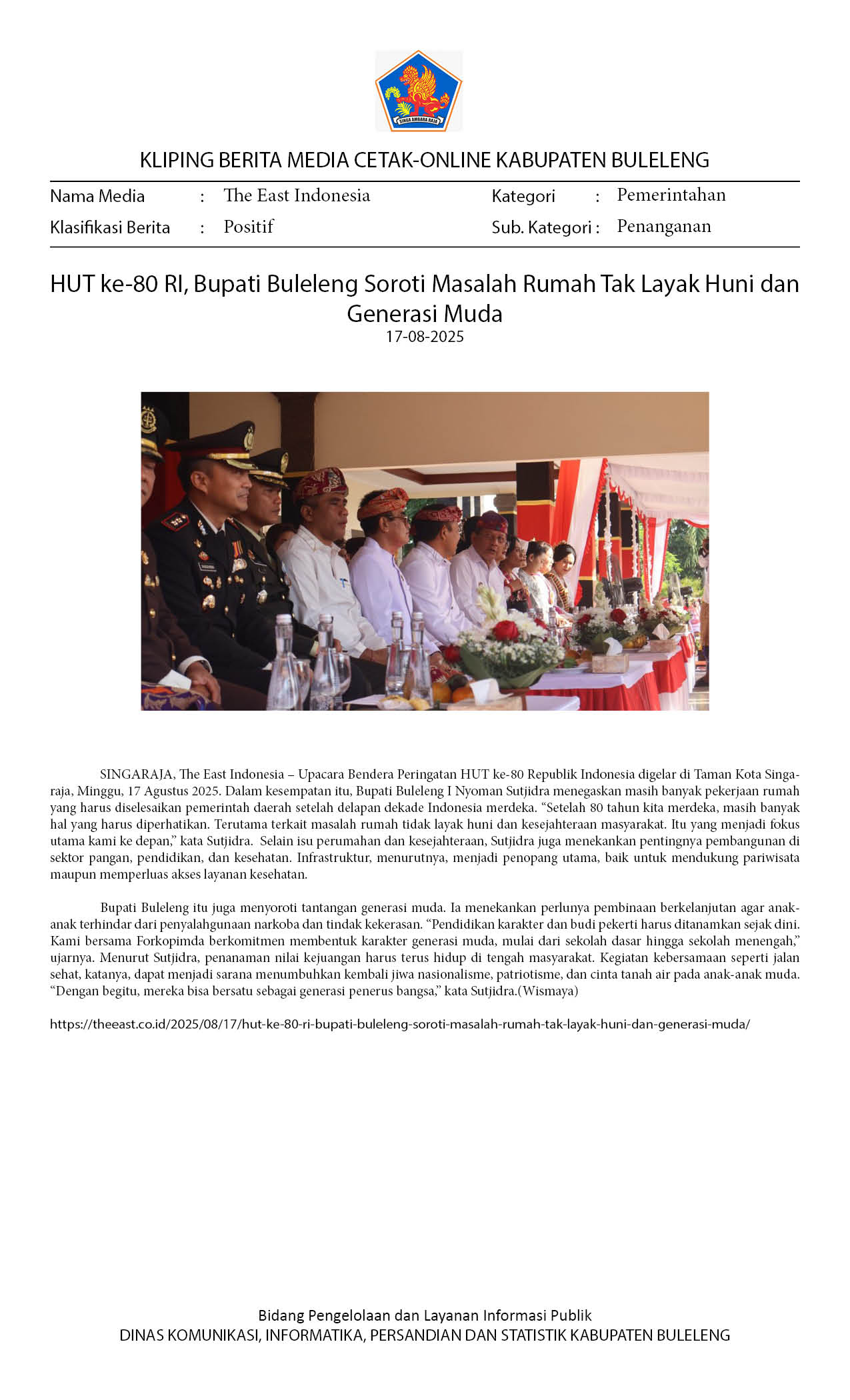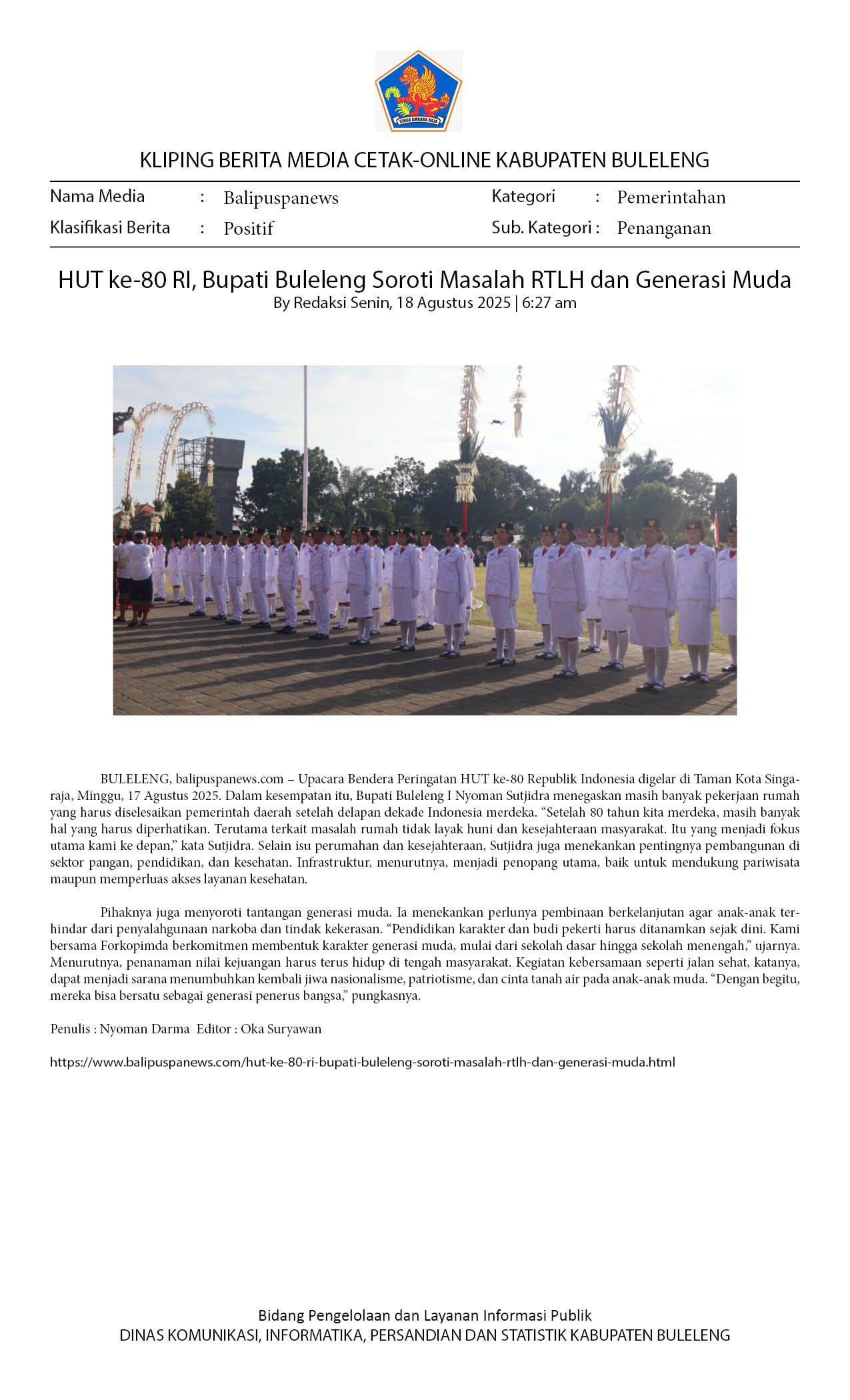HUT KE-80 RI, BUPATI BULELENG SOROTI MASALAH RTLH DAN GENERASI MUDA