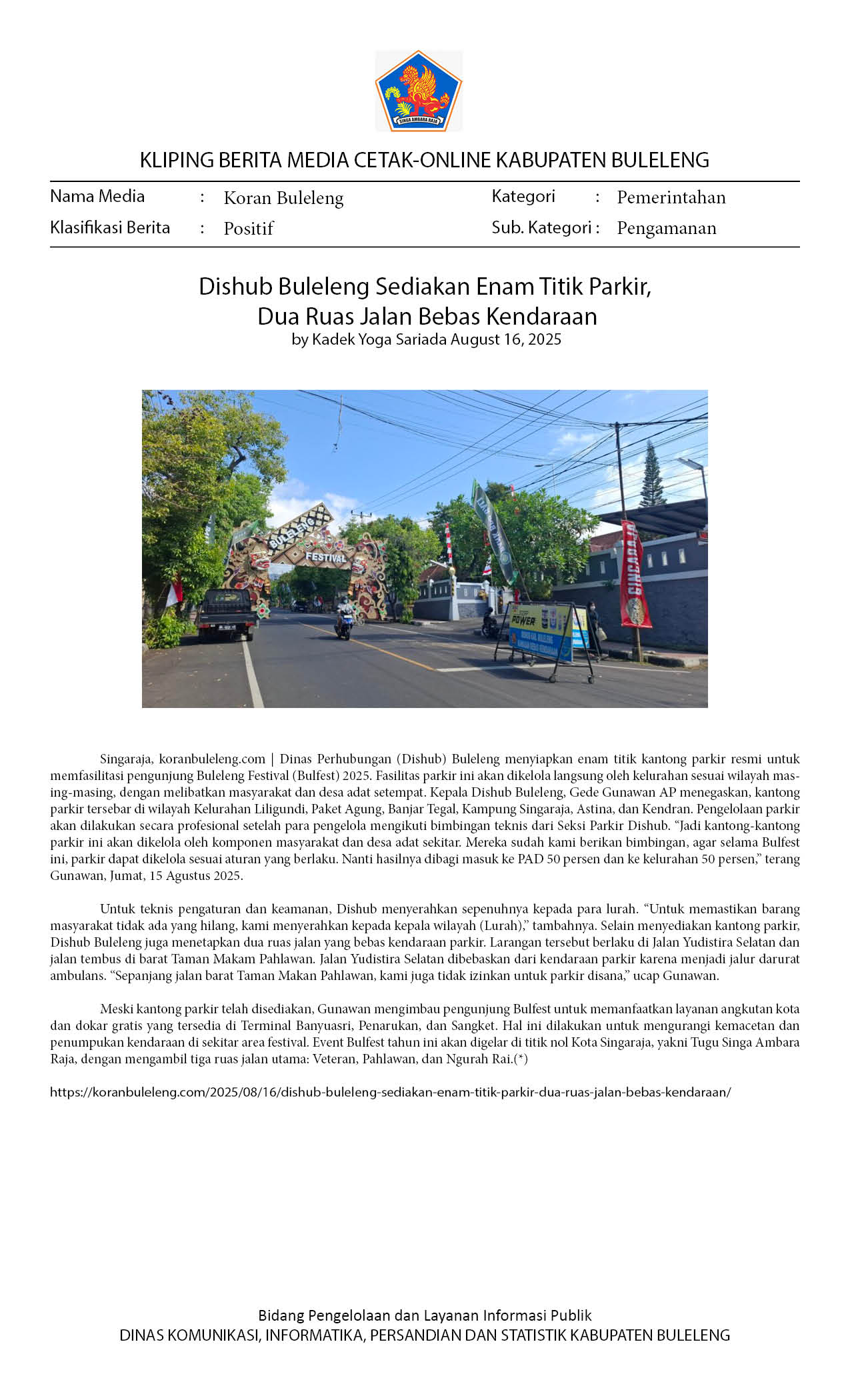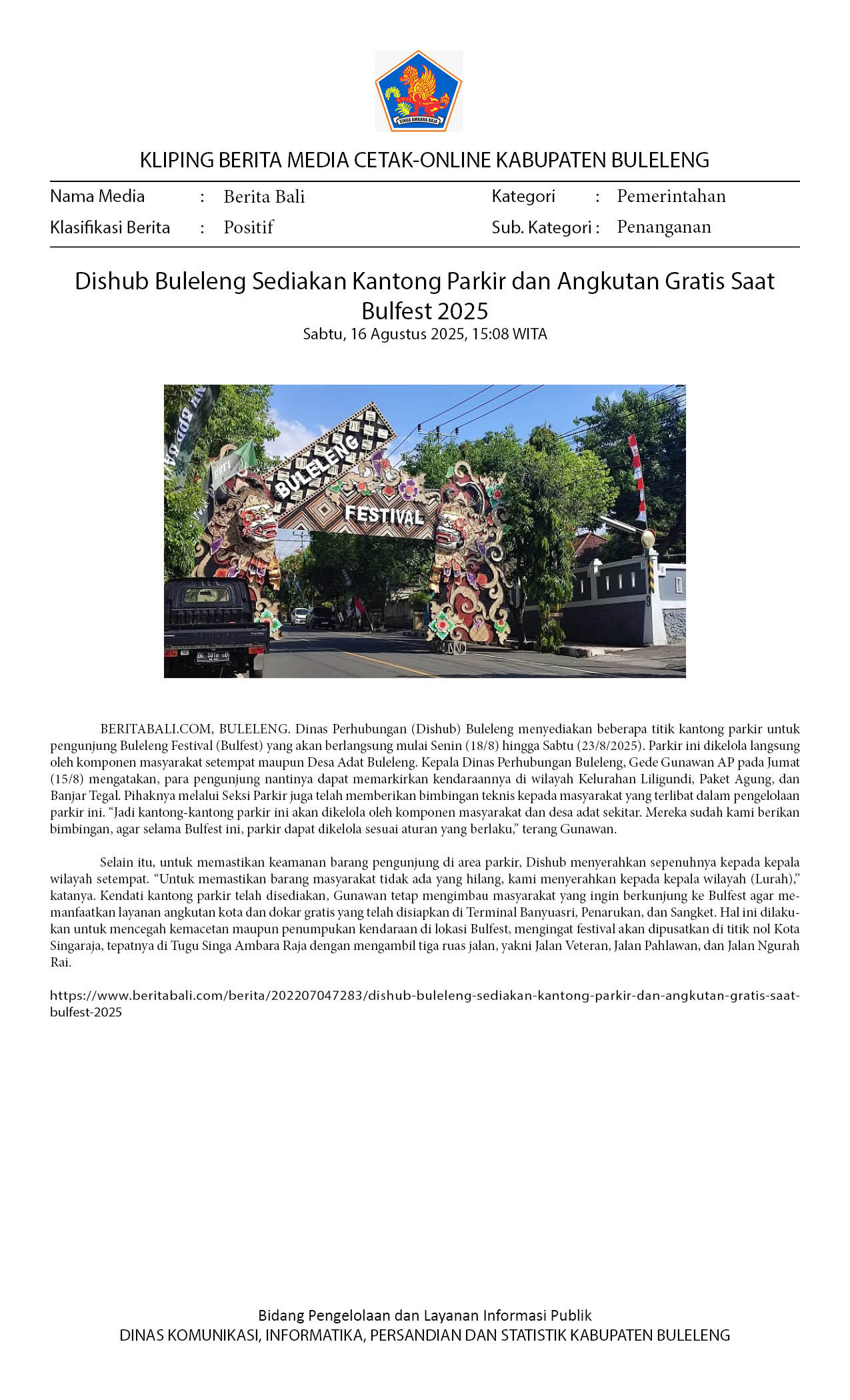 DISHUB BULELENG SEDIAKAN KANTONG PARKIR DAN ANGKUTAN GRATIS SAAT BULFEST 2025