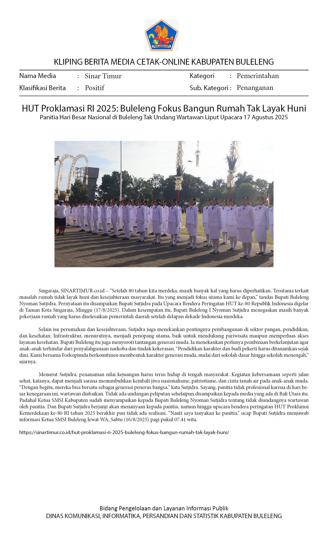 HUT PROKLAMASI RI 2025: BULELENG FOKUS BANGUN RUMAH TAK LAYAK HUNI