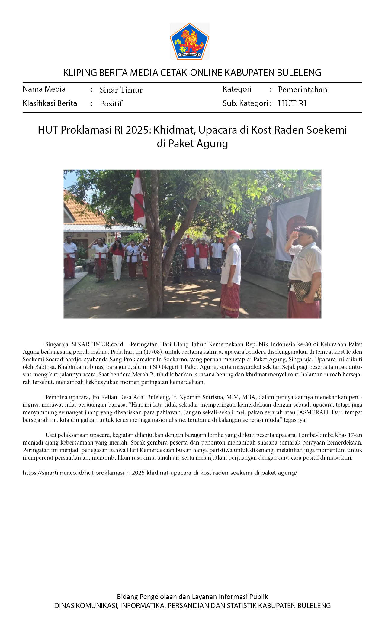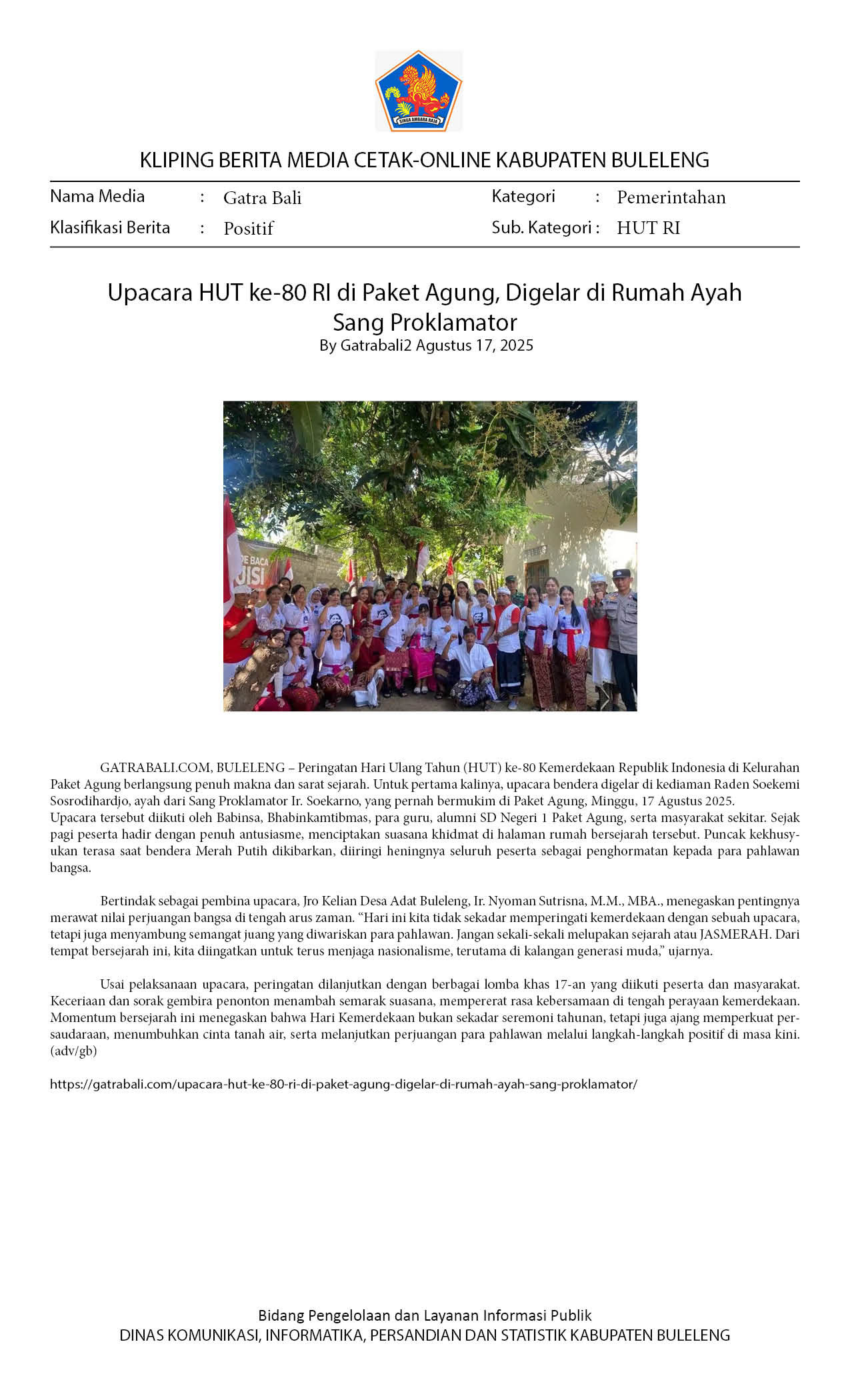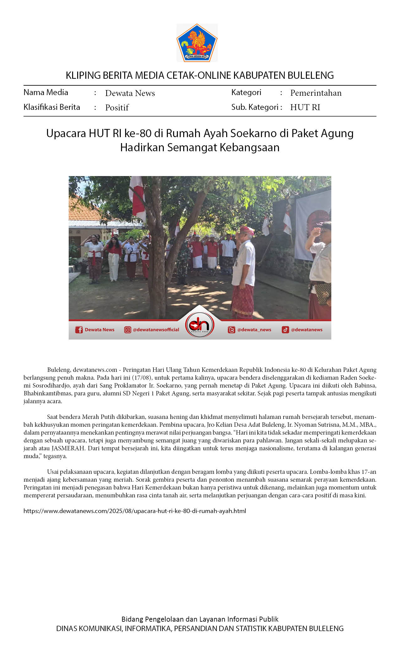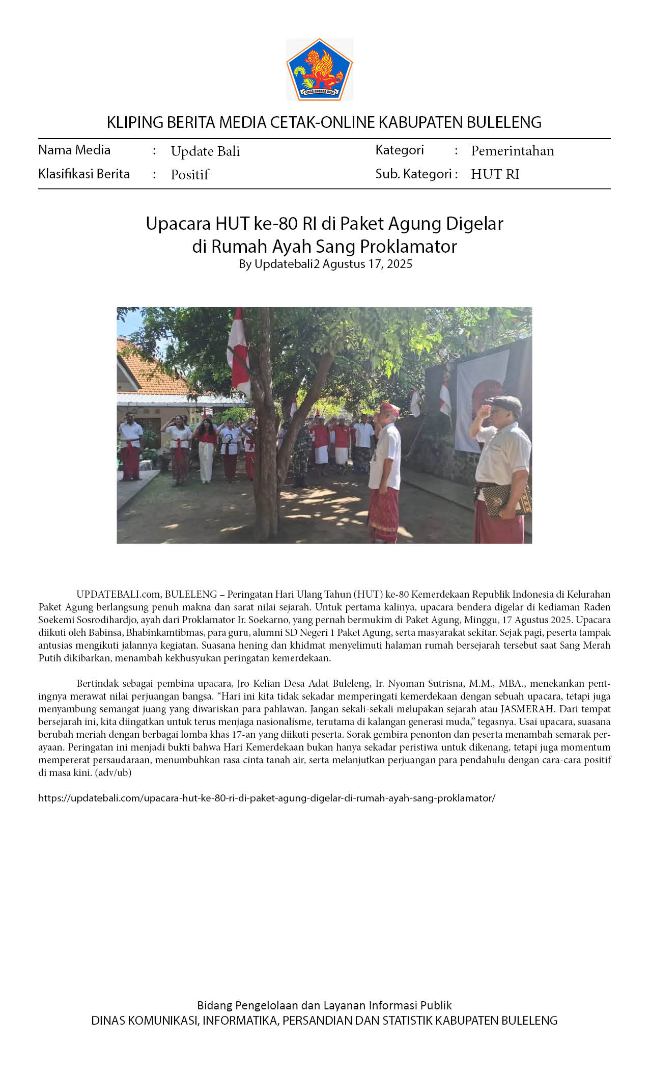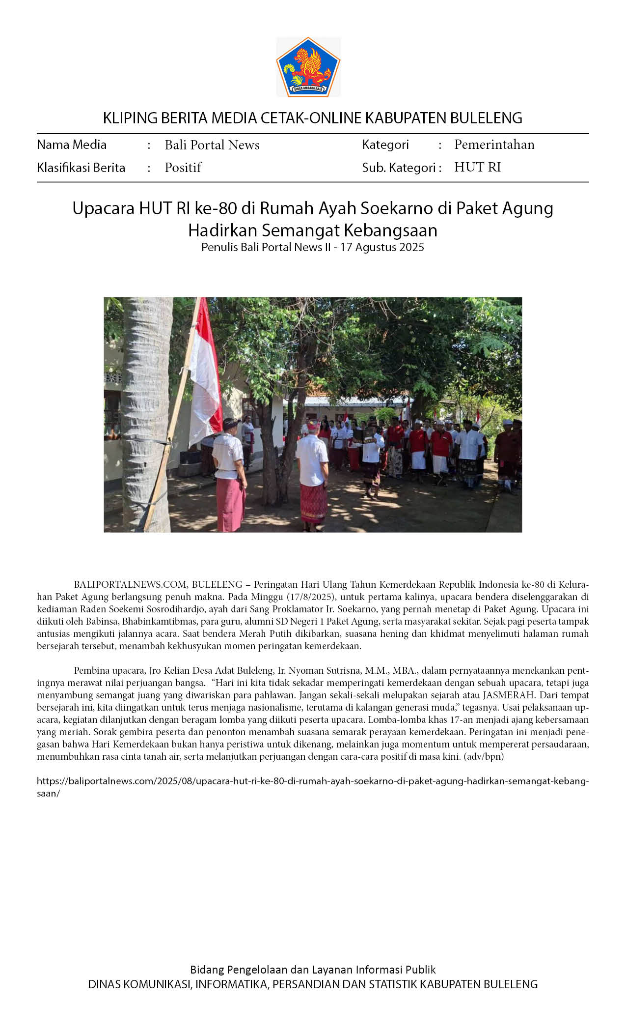 UPACARA HUT KE-80 RI DI PAKET AGUNG, DIGELAR DI RUMAH AYAH SANG PROKLAMATOR