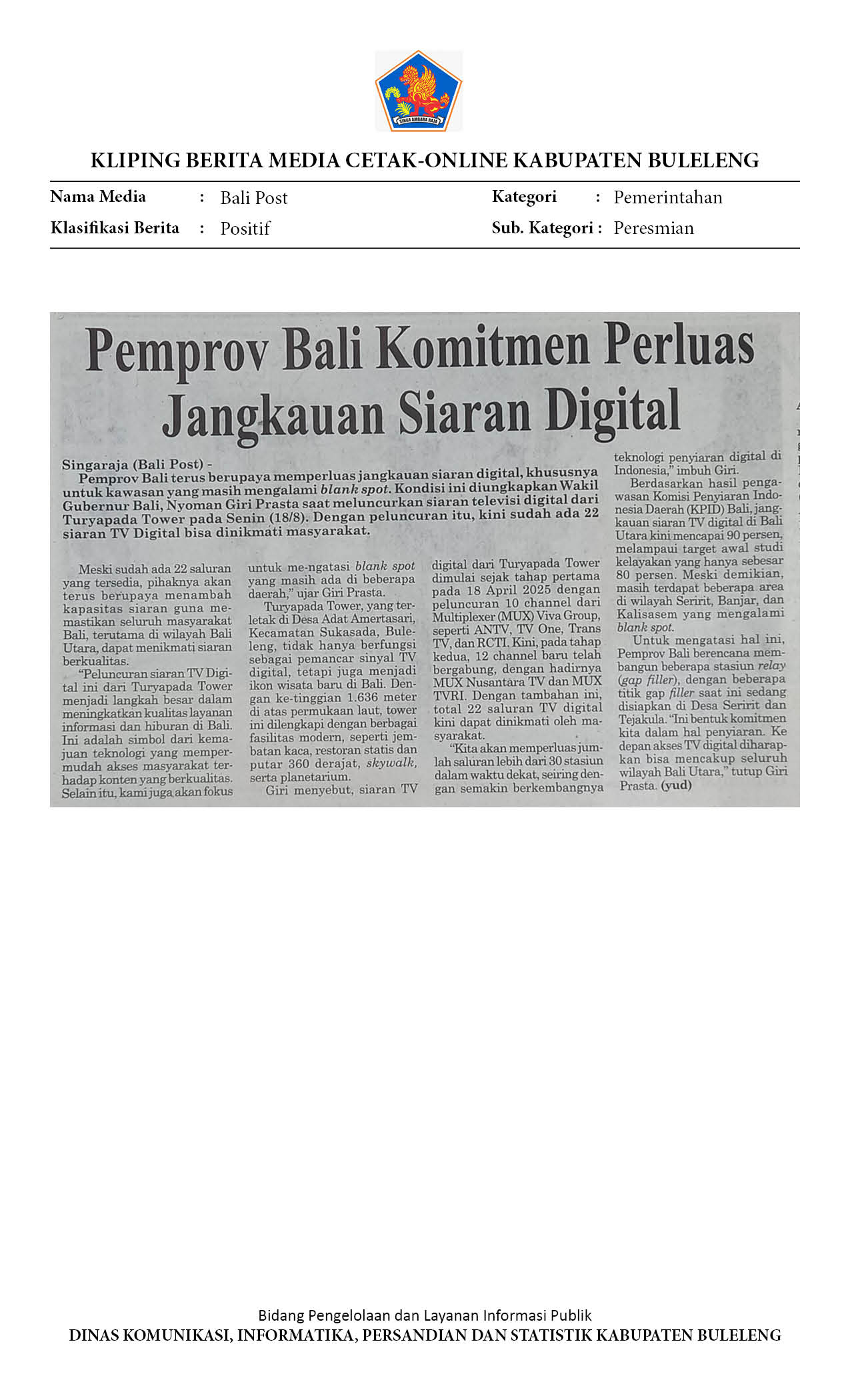 PEMPROV BALI KOMITMEN PERLUAS JANGKAUAN SIARAN DIGITAL